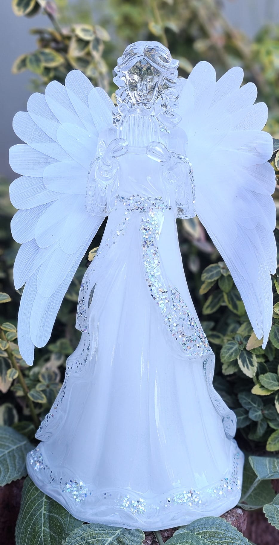 ✨ Efekt świetlny LED – anioł świeci w różnych barwach, tworząc nastrojową aurę