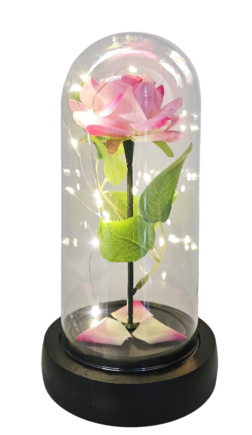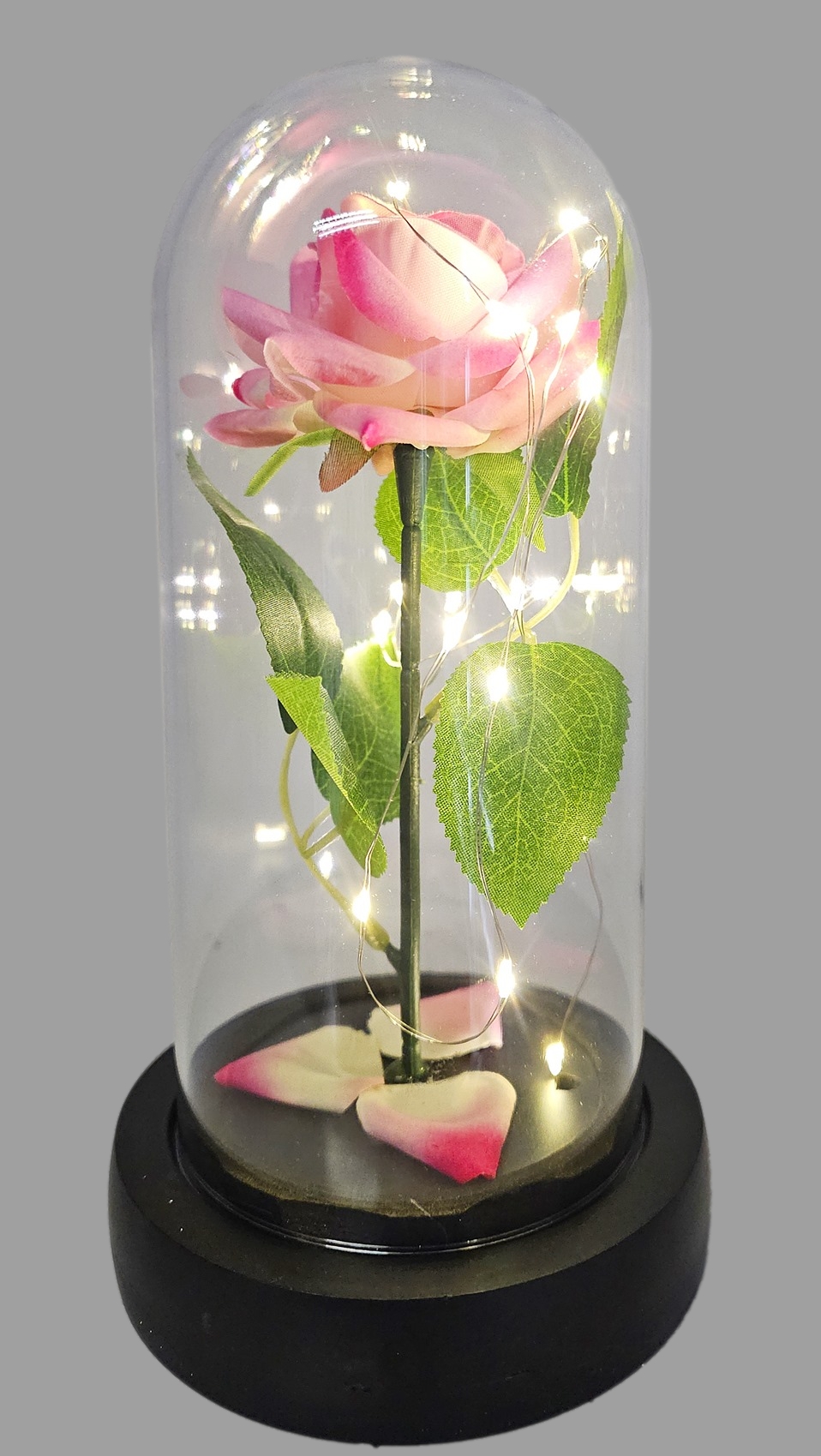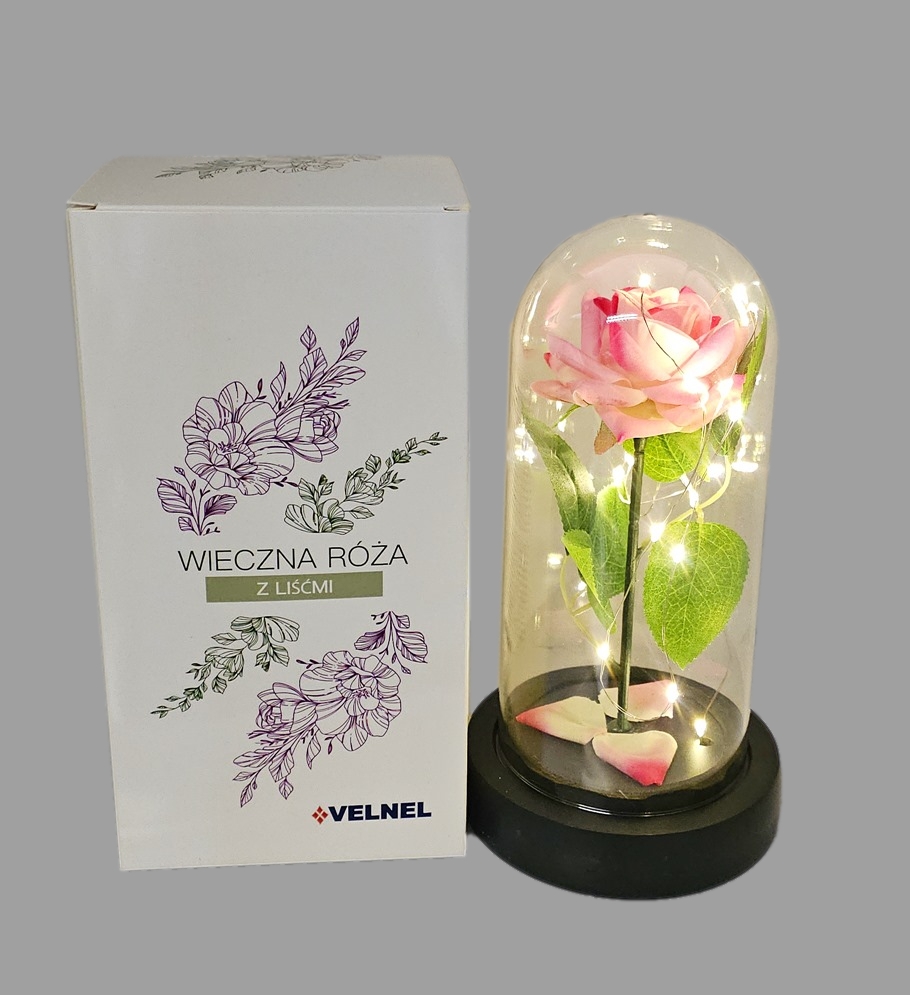 WIECZNA RÓŻA W SZKLE LED - różowa