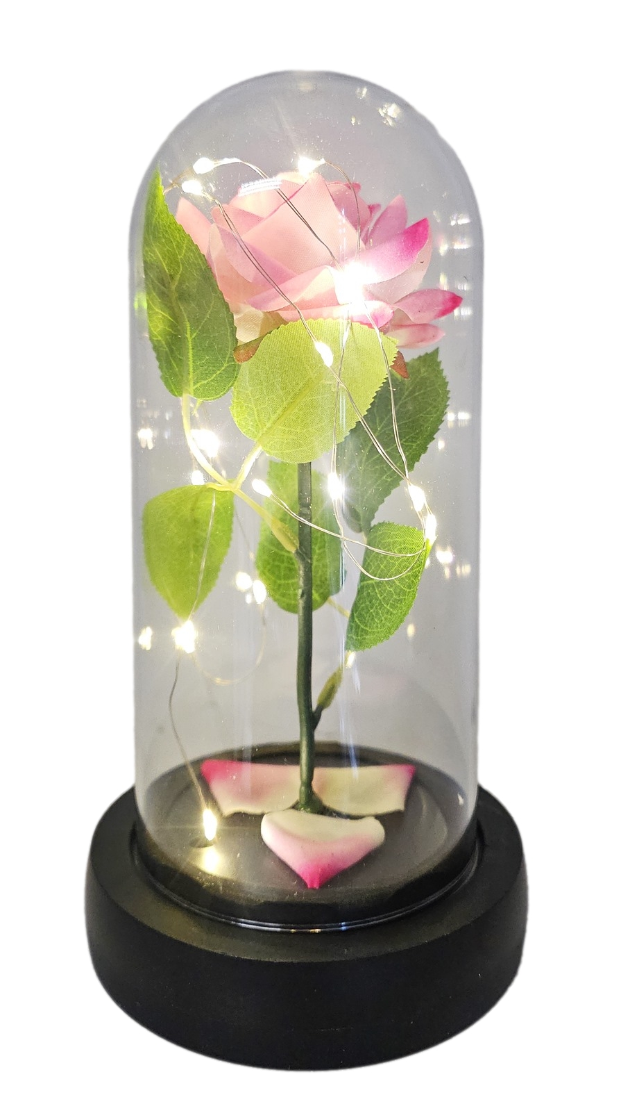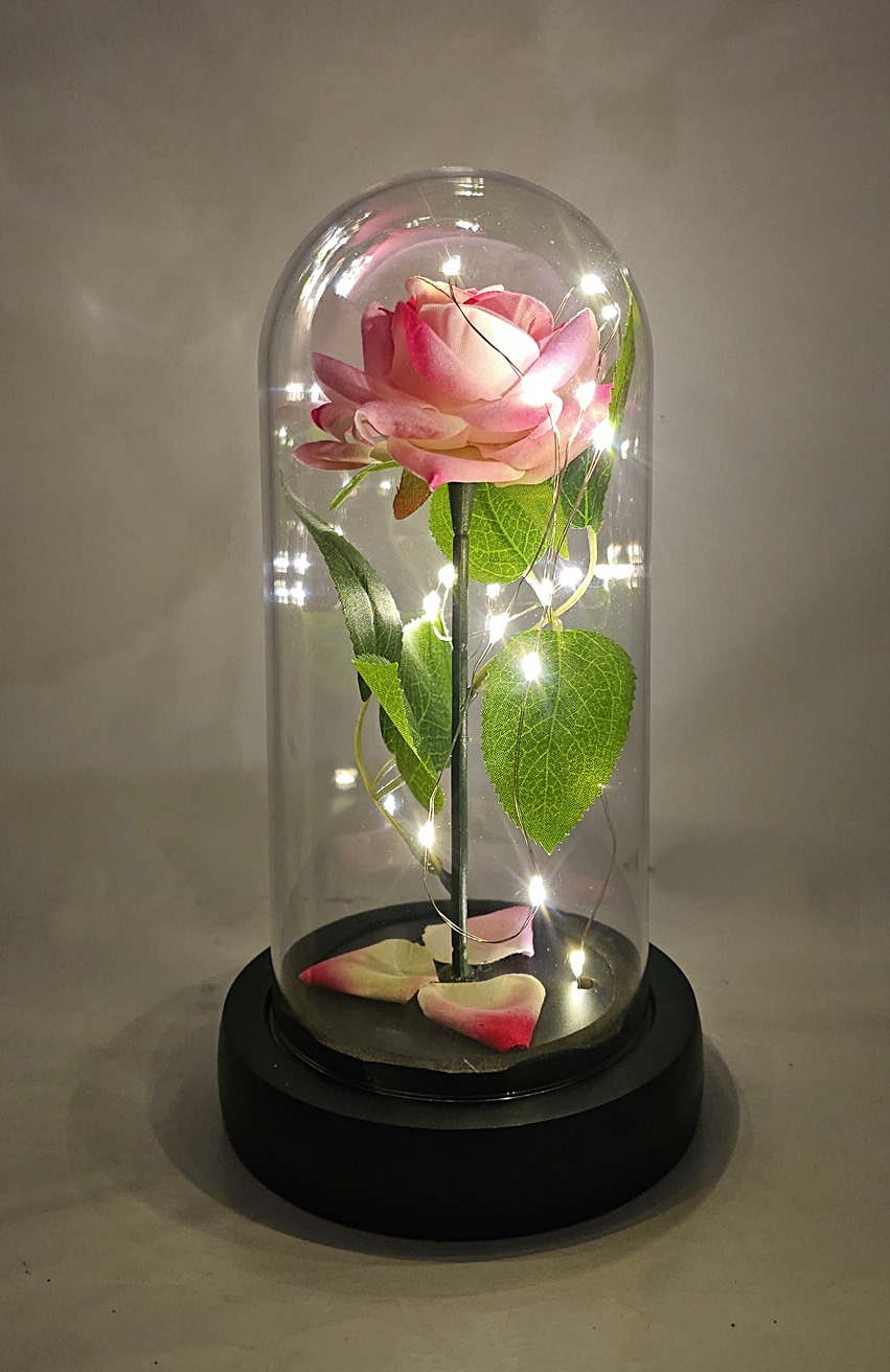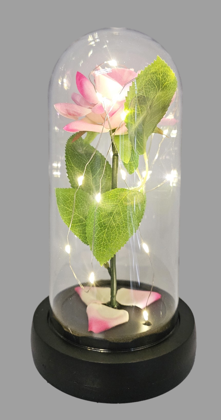WIECZNA RÓŻA W SZKLE LED - różowa