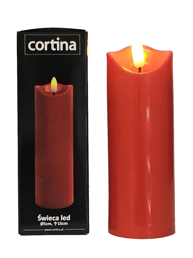 Dekoracyjna świeczka z migającym stałym knotem imitującym prawdziwy płomień za pomocą diody LED.