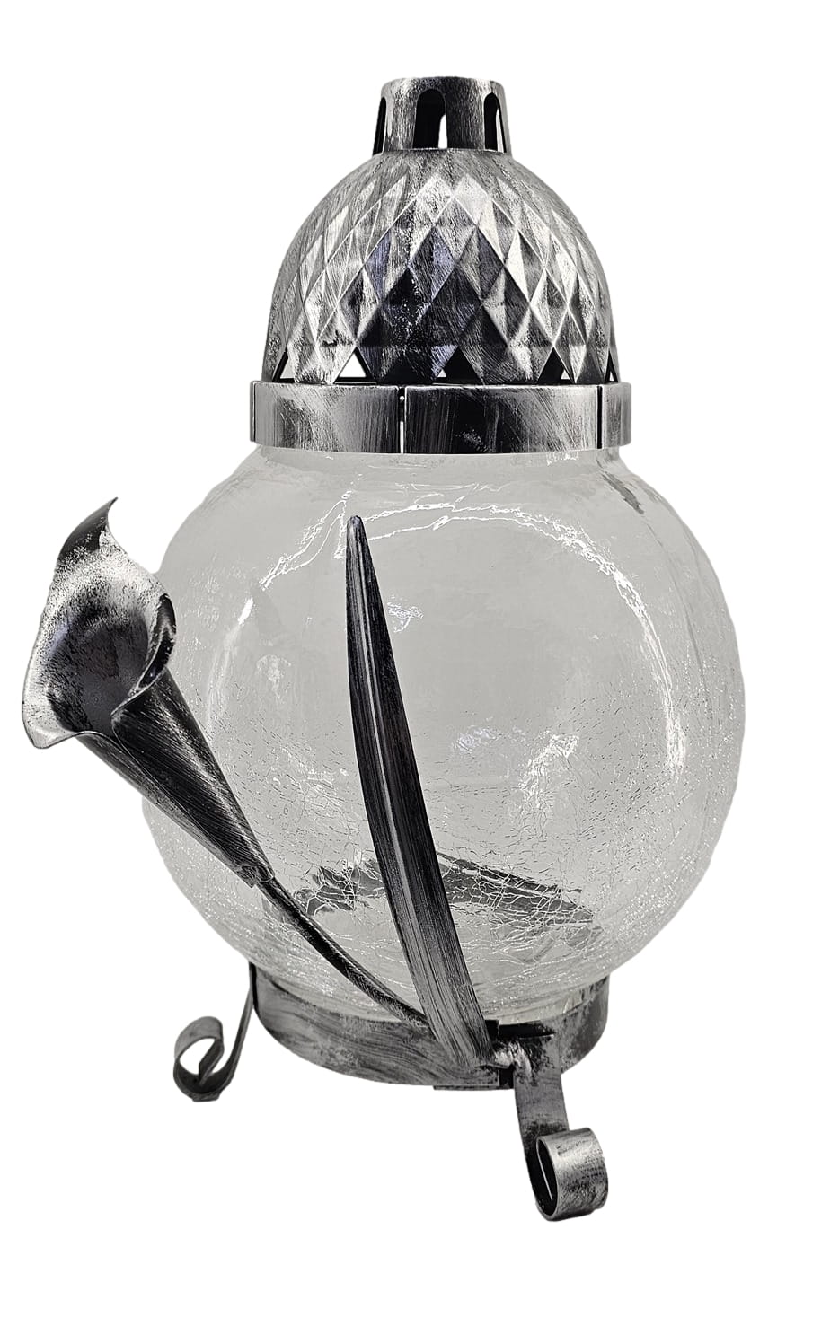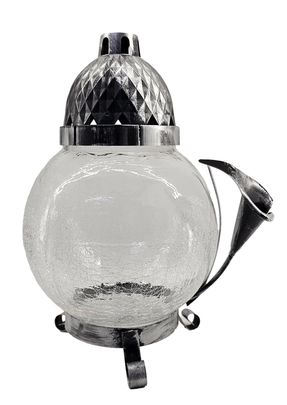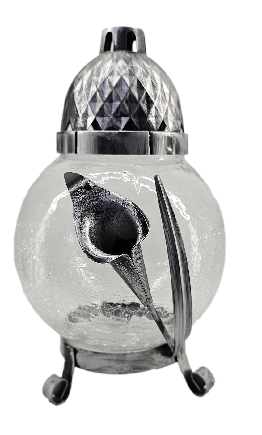 - kolor znicza: srebrny, szkło mrożone bezbarwne. Pokrywa z lakierowanego tworzywa