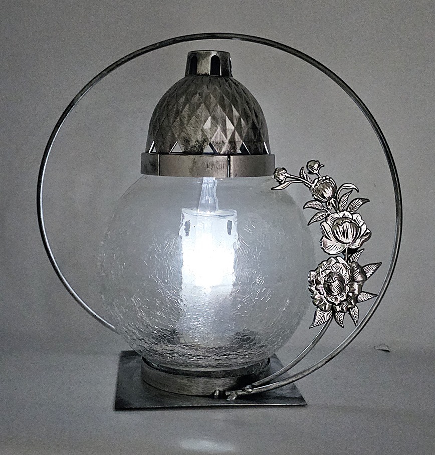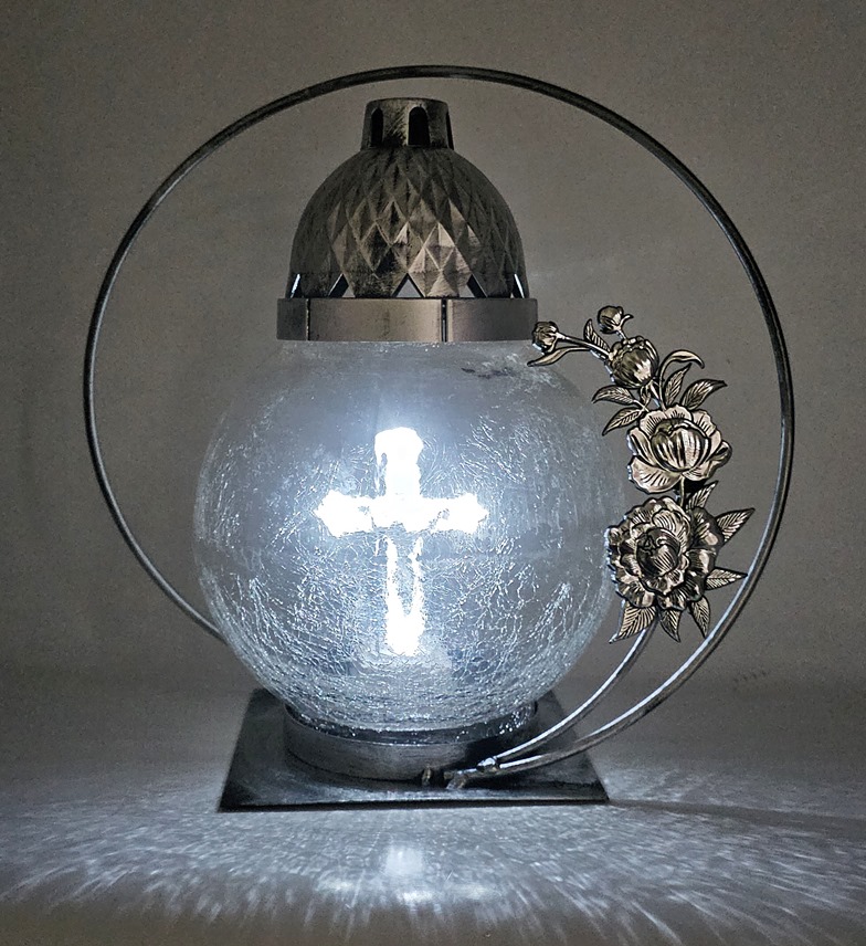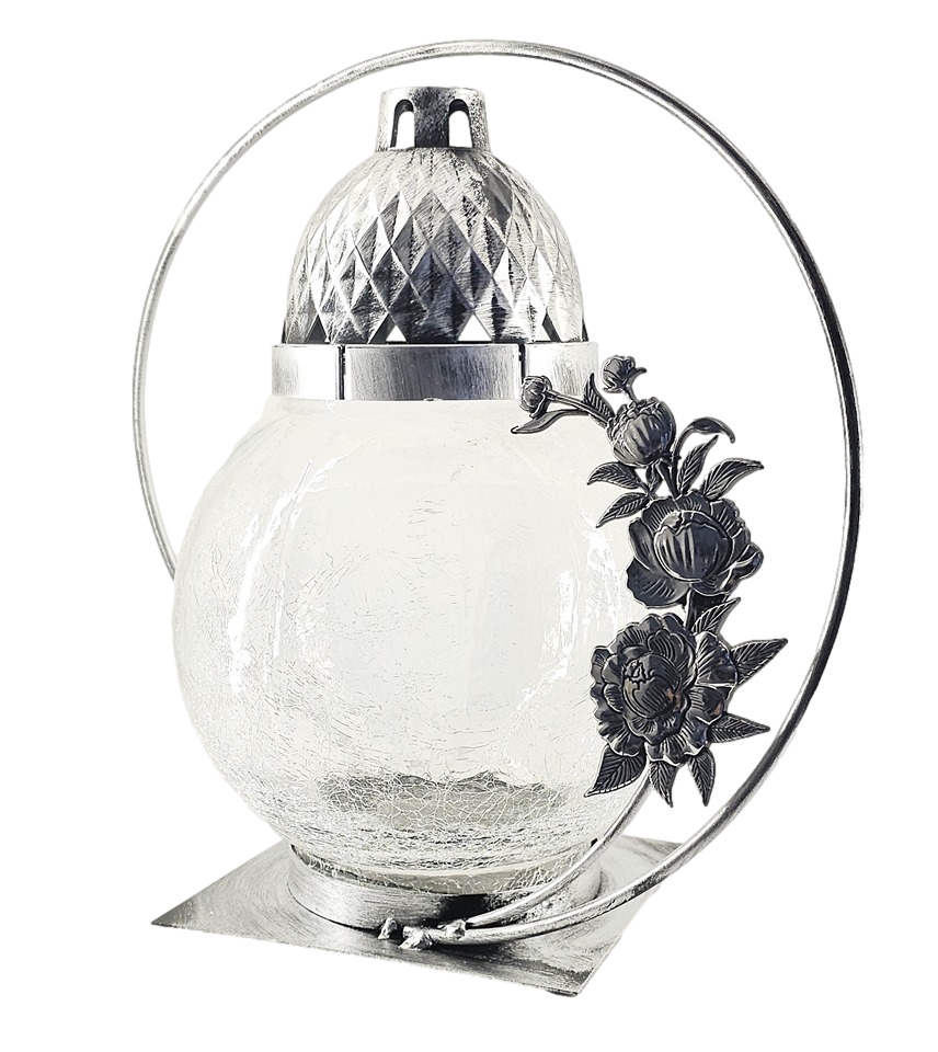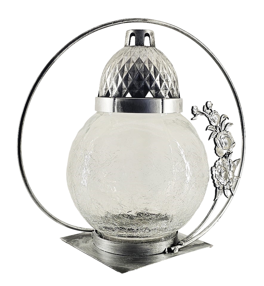 - kolor znicza:Srebrny, szkło mrożone bezbarwne. Pokrywa z lakierowanego tworzywa