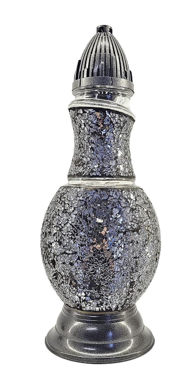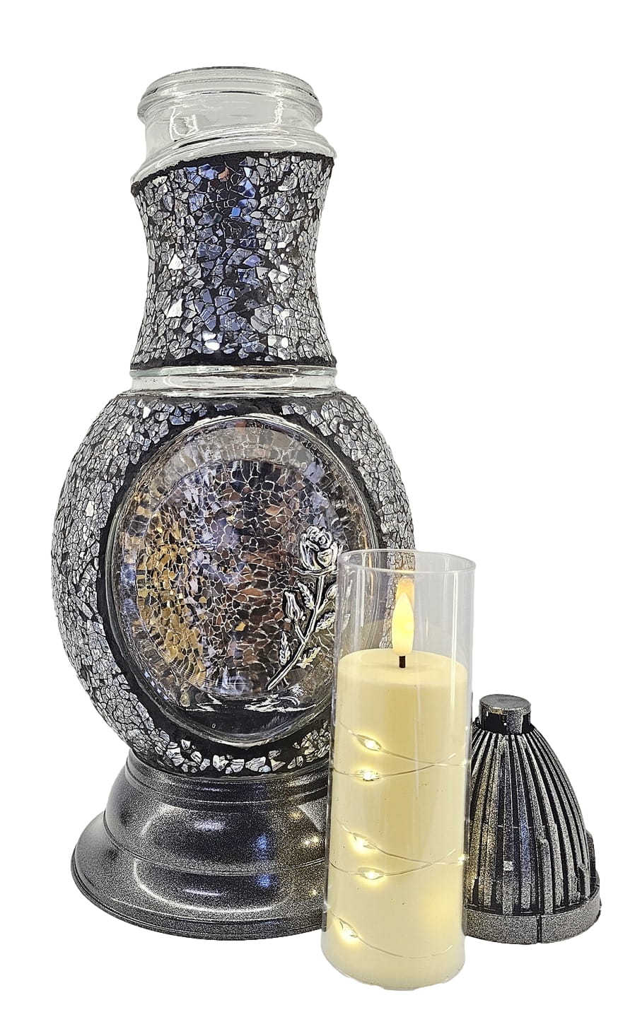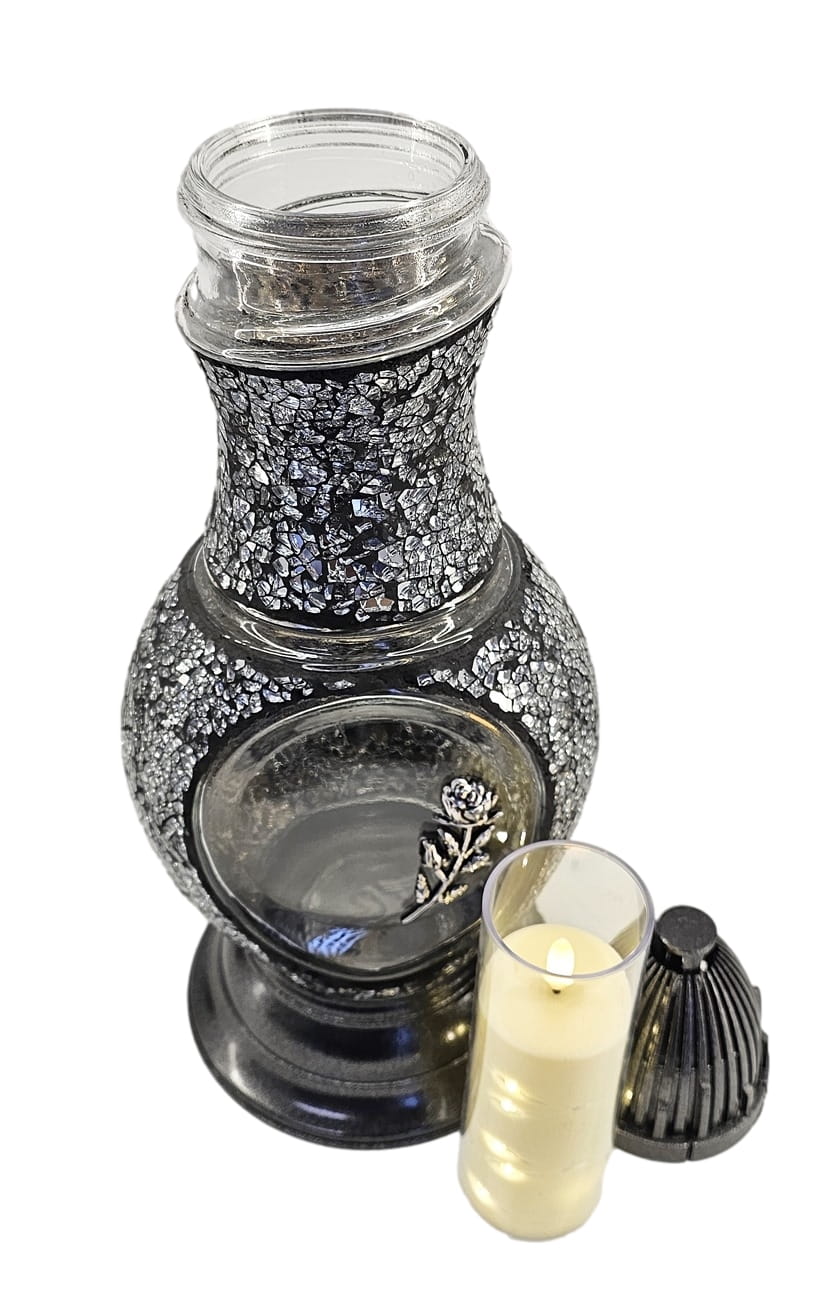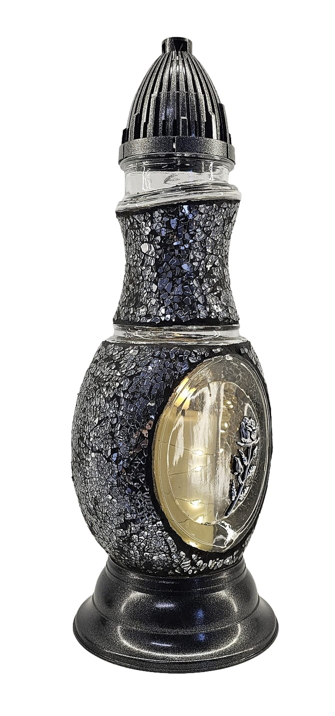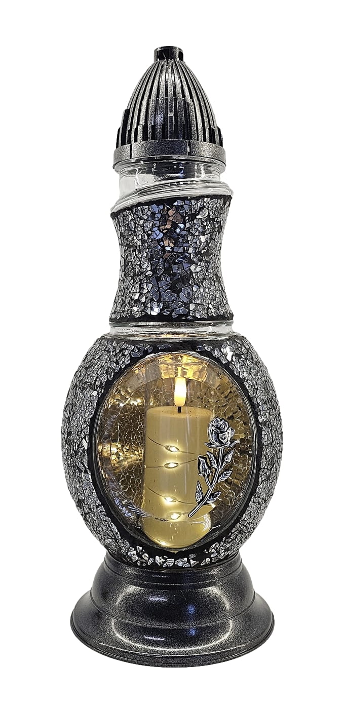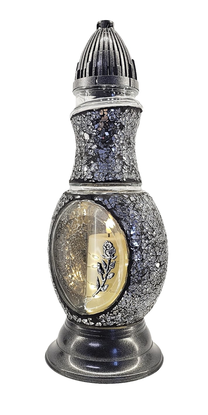 Znicz Flakon Witraż 2 GĘŚ srebrno - czarny + LED