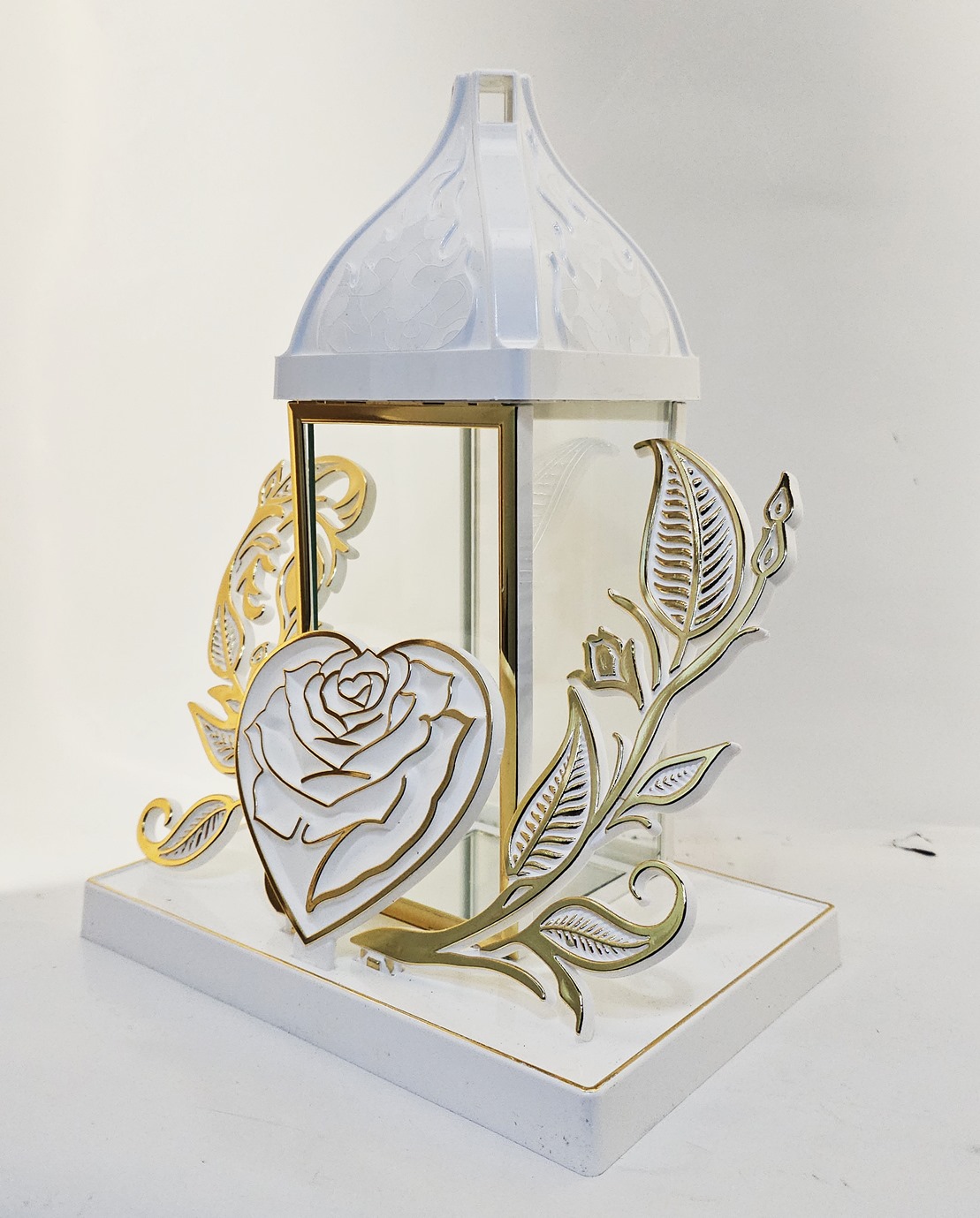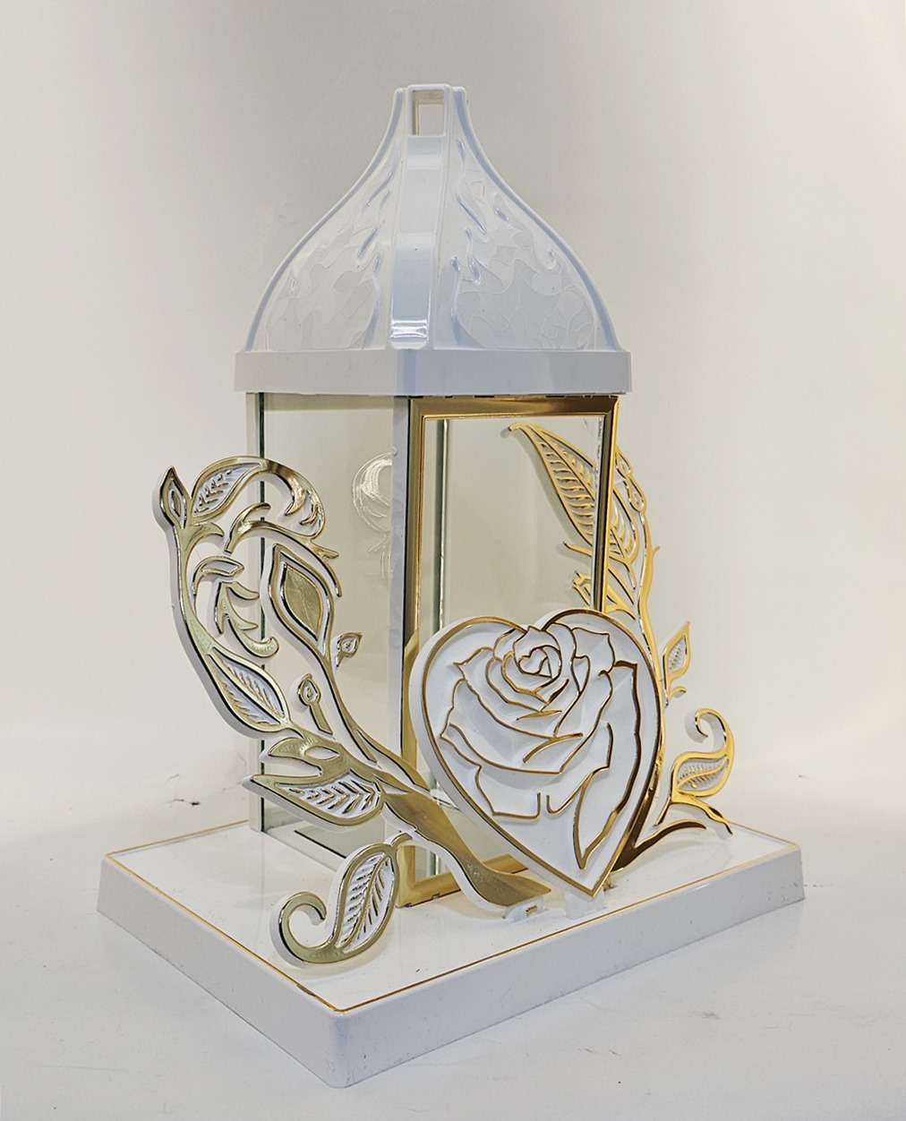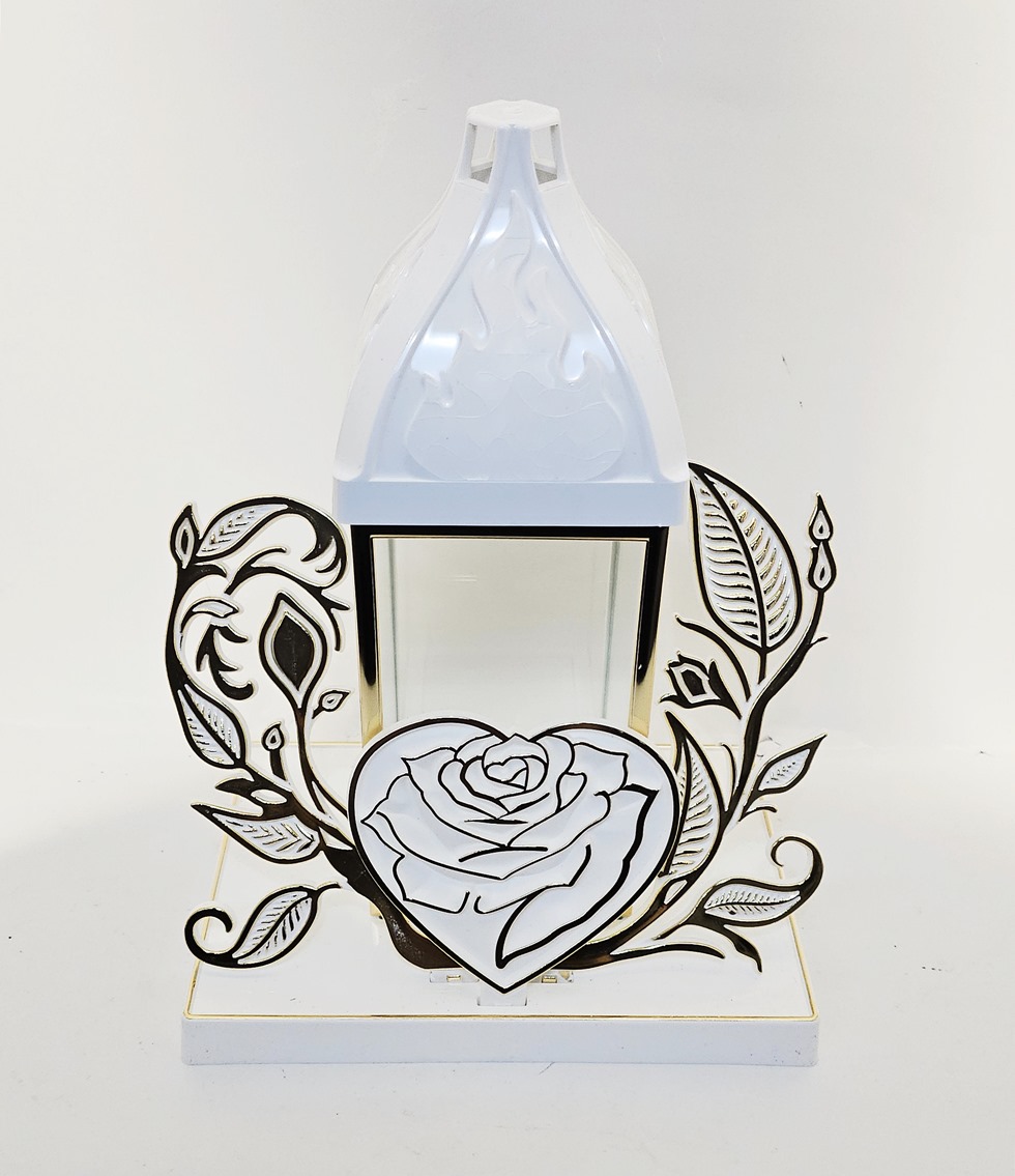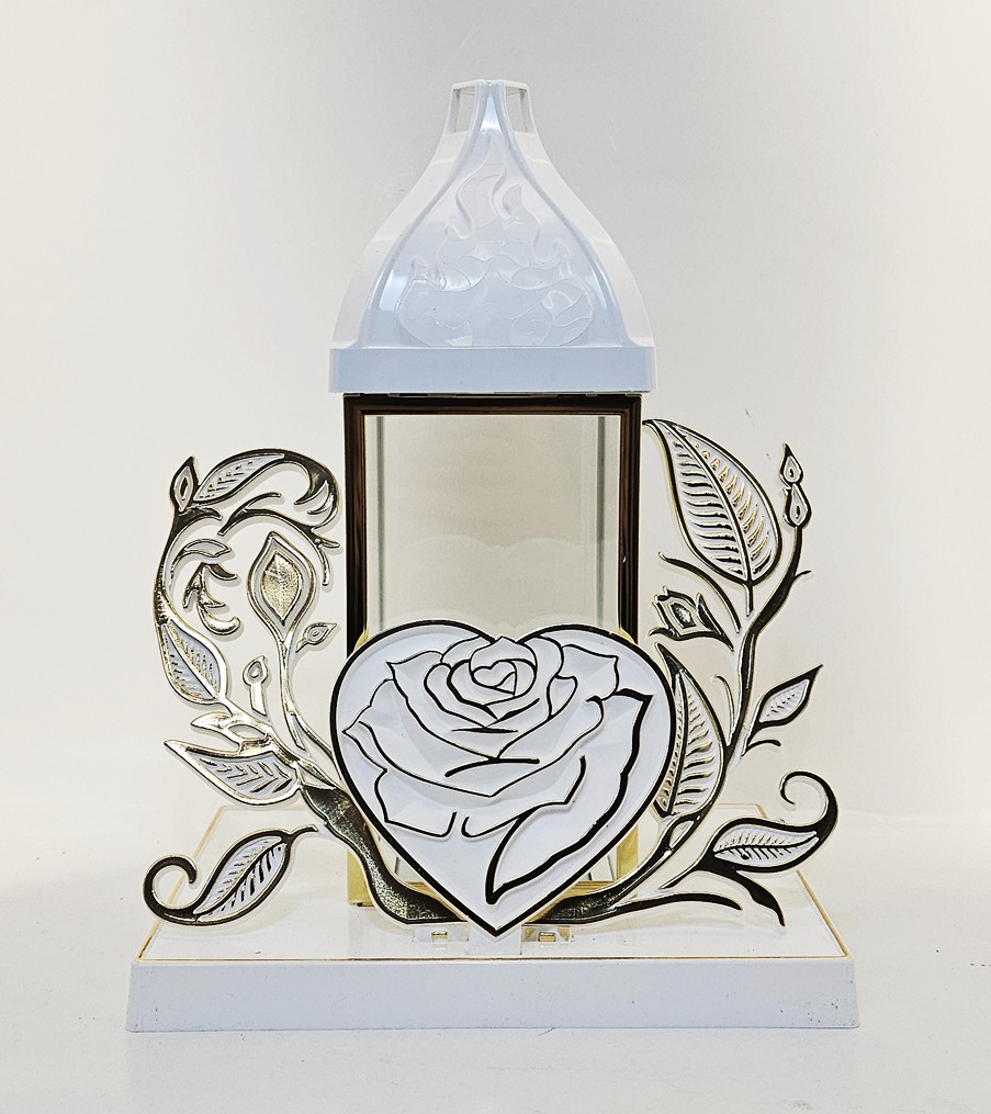 - kolor znicza: Biały, szkło przezroczyste + tworzywobiałe. Pokrywa i podstawa z białego tworzywa