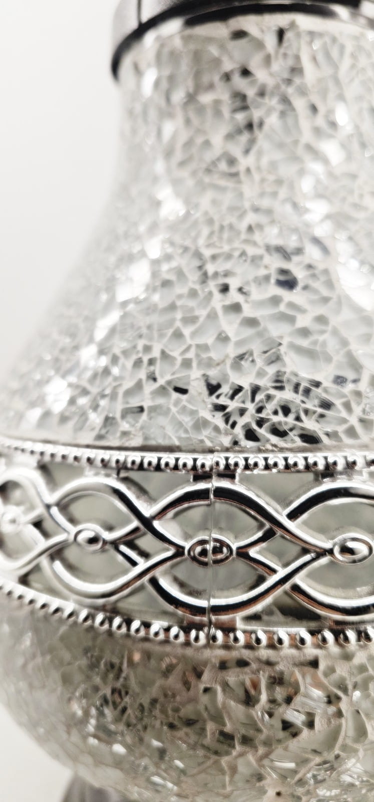 - Ręcznie wykonana struktura witraża, z małych kawałeczków lustra i kolorowego szkła. Piękny efekt odbicia światła