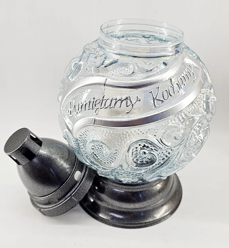 - kolor znicza: Biały tęczowy. Pokrywa i podstawa z lakierowanego tworzywa