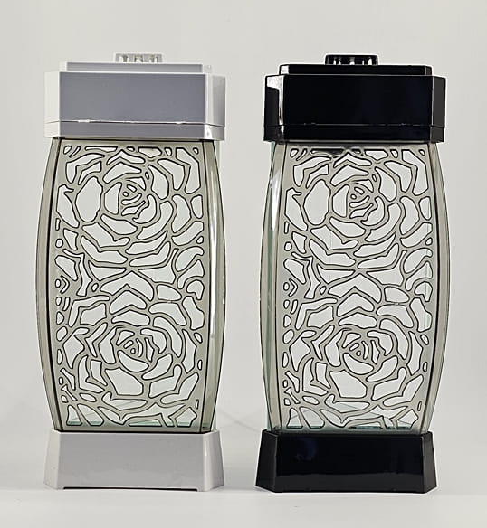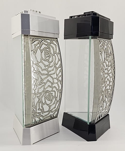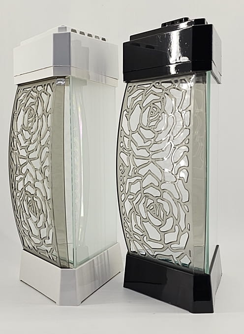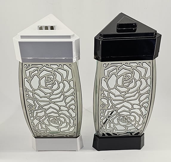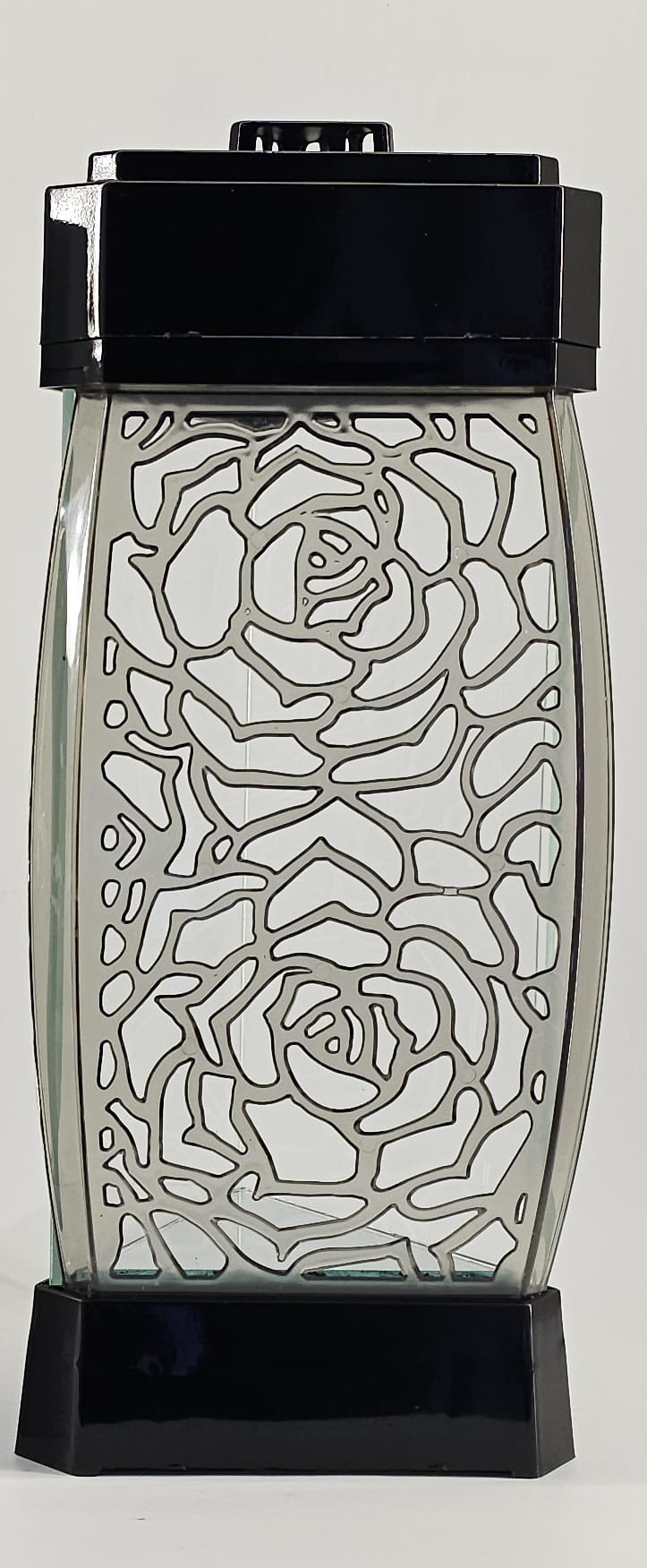 - Przód z ażurowego tworzywa i szkła. Spód znicza to lustro. Pokrywa i podstawa z czarnego/białego lakierowanego tworzywa