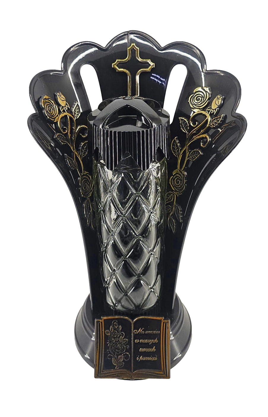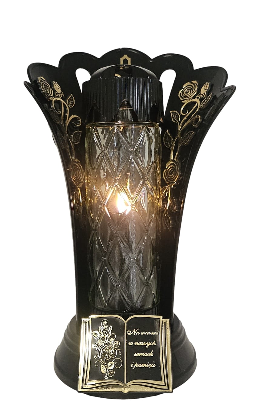 - kolor znicza: Czarno złoty. Pokrywa i podstawa z czarnego lakierowanego tworzywa