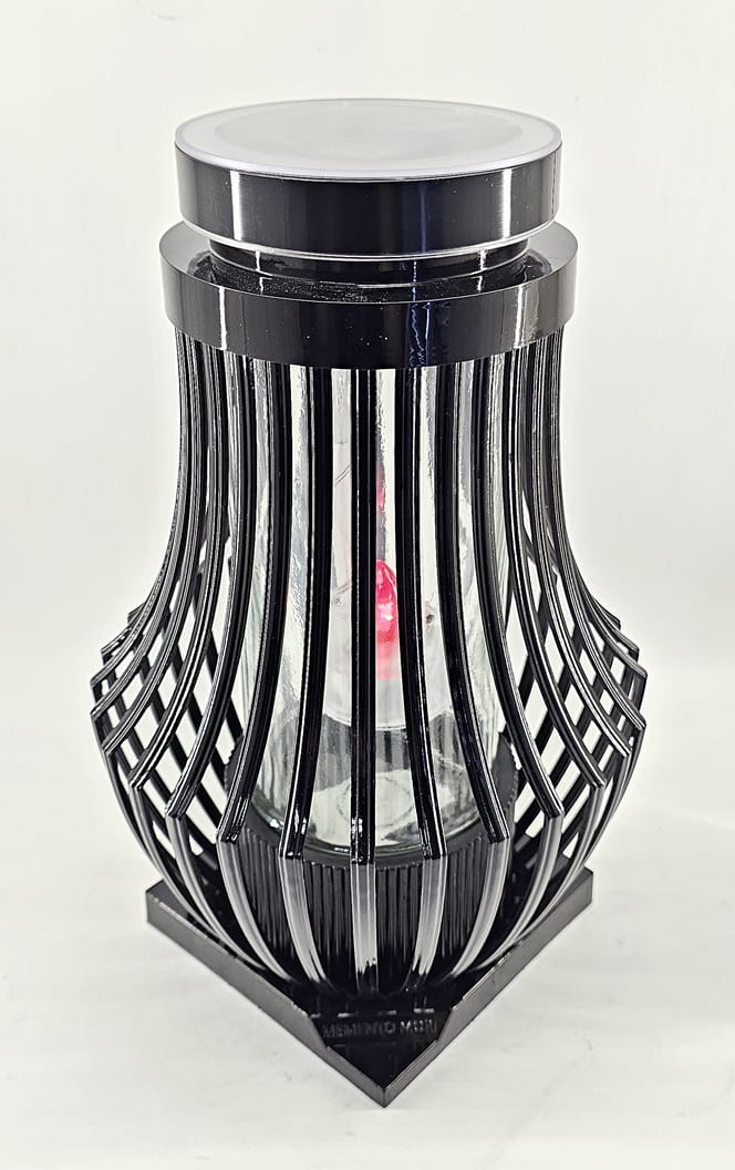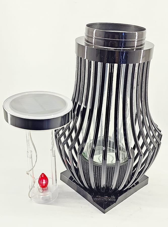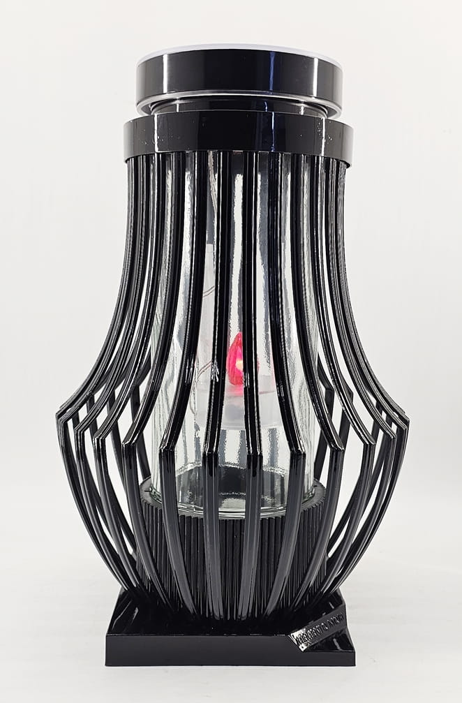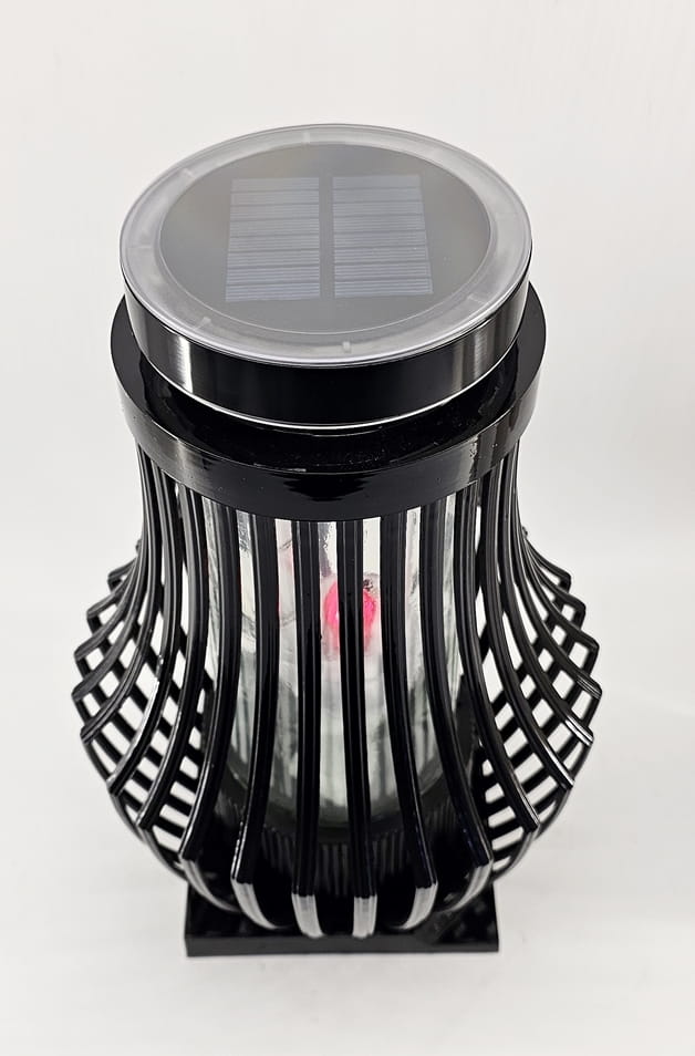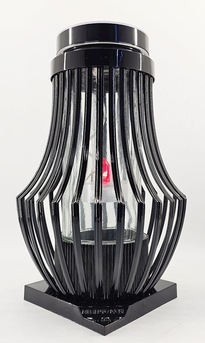 Znicz Lampion ATENA Fotowoltaiczna czarna Czerwony płomień