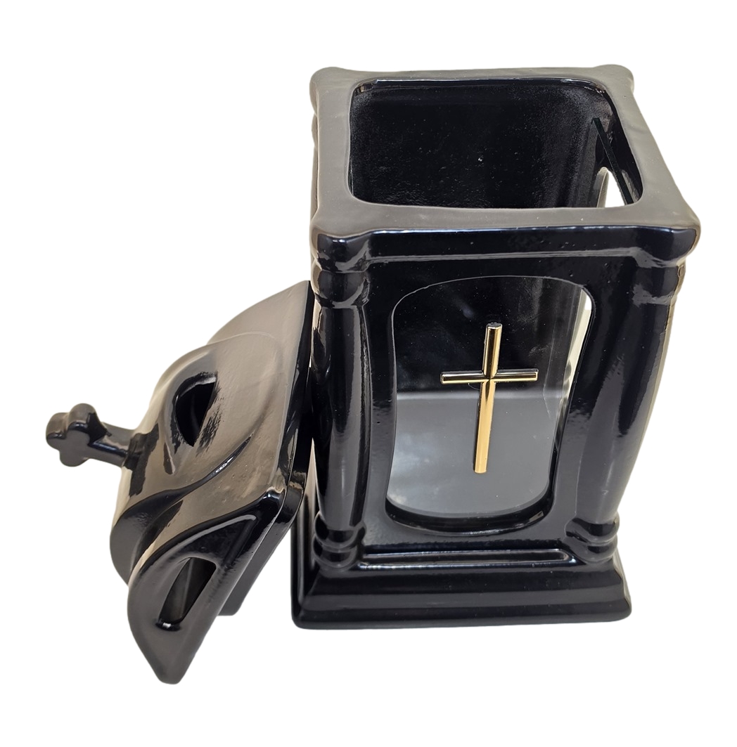 - kolor znicza: Czarny. Pokrywa, podstawa i boki z lakierowanej ceramiki .