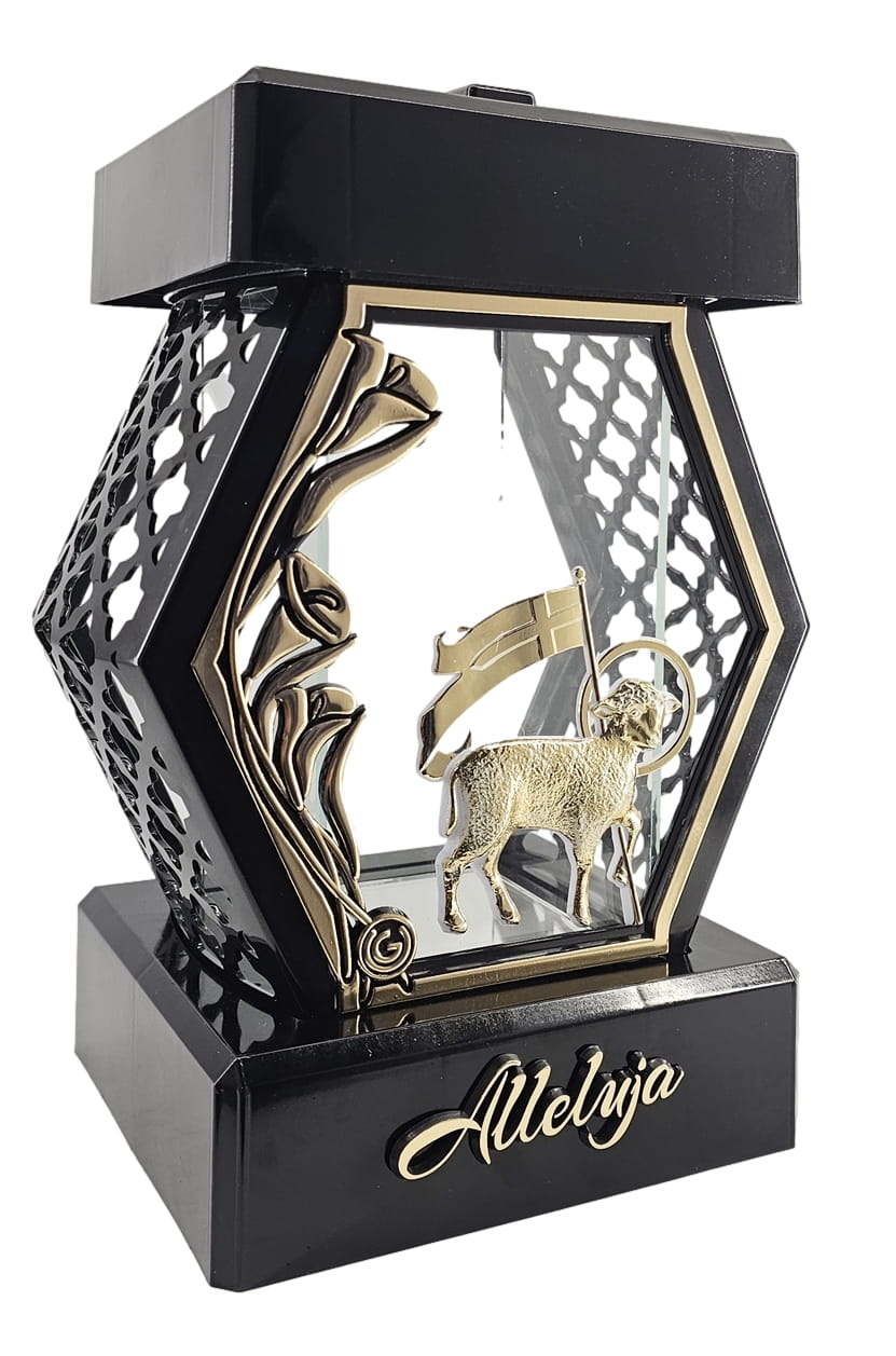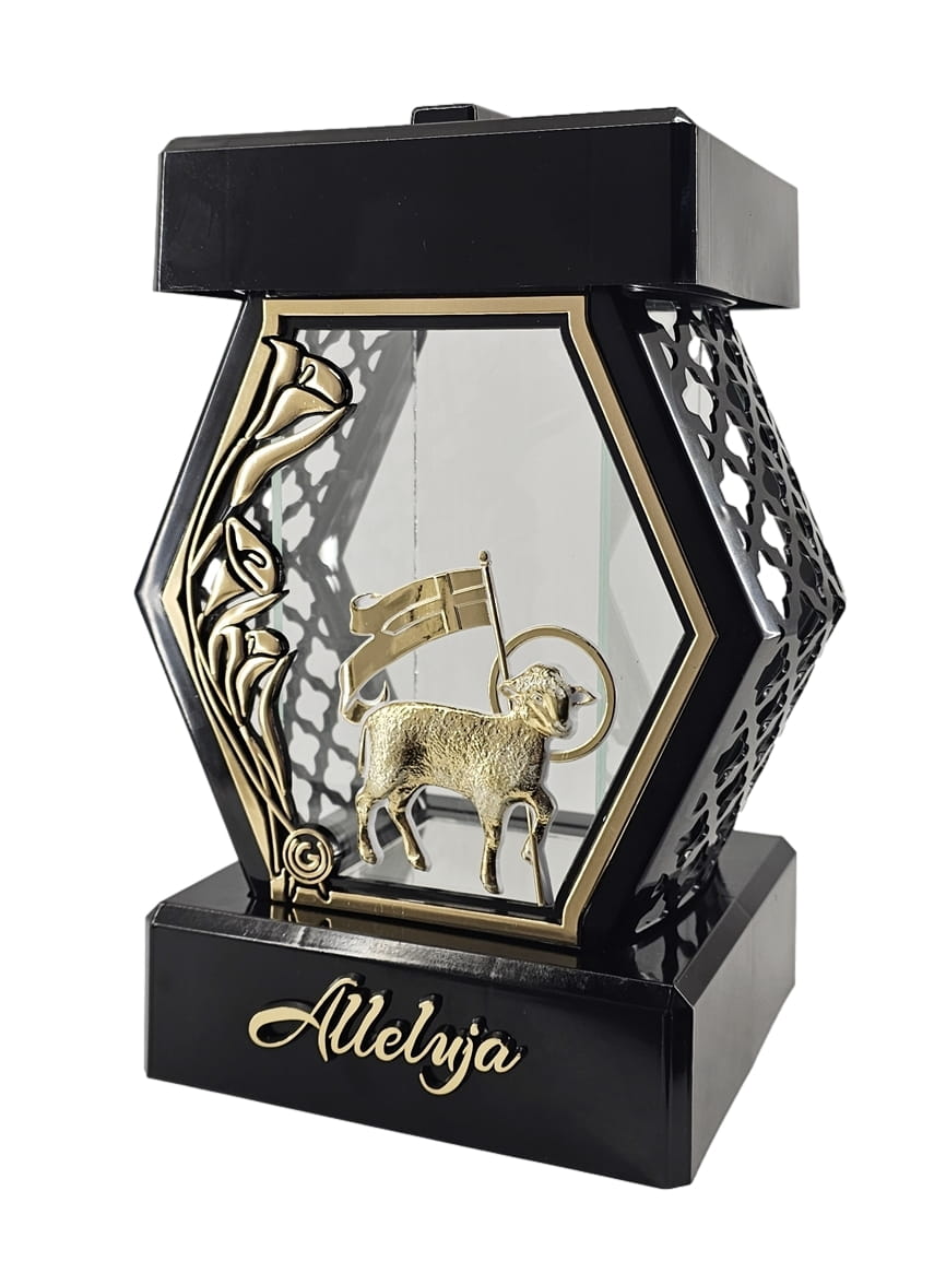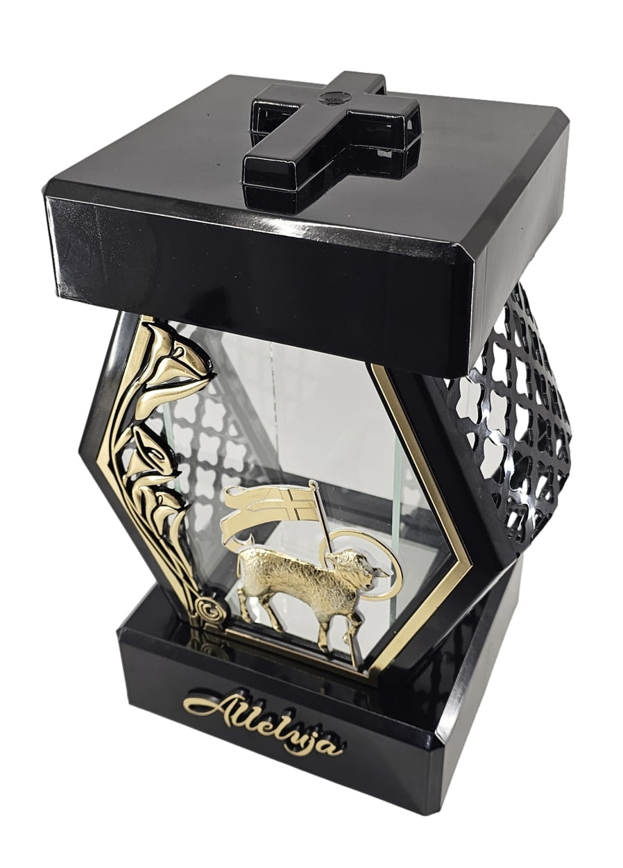 - kolor znicza: Czarny, szyba przezroczysta + tworzywo czarne lakierowane. Boki z tworzywa i szkła. Tył znicza to szyba. Pokrywa i podstawa z czarnego lakierowanego tworzywa