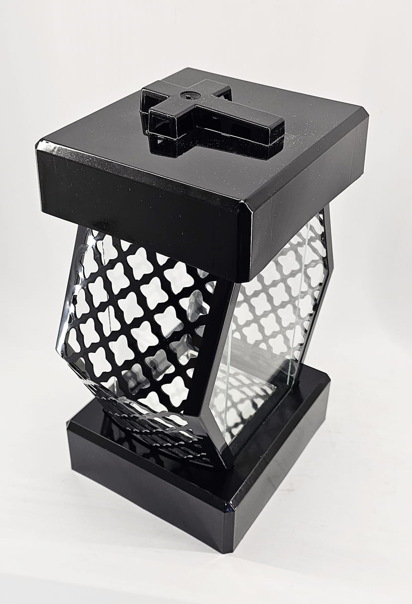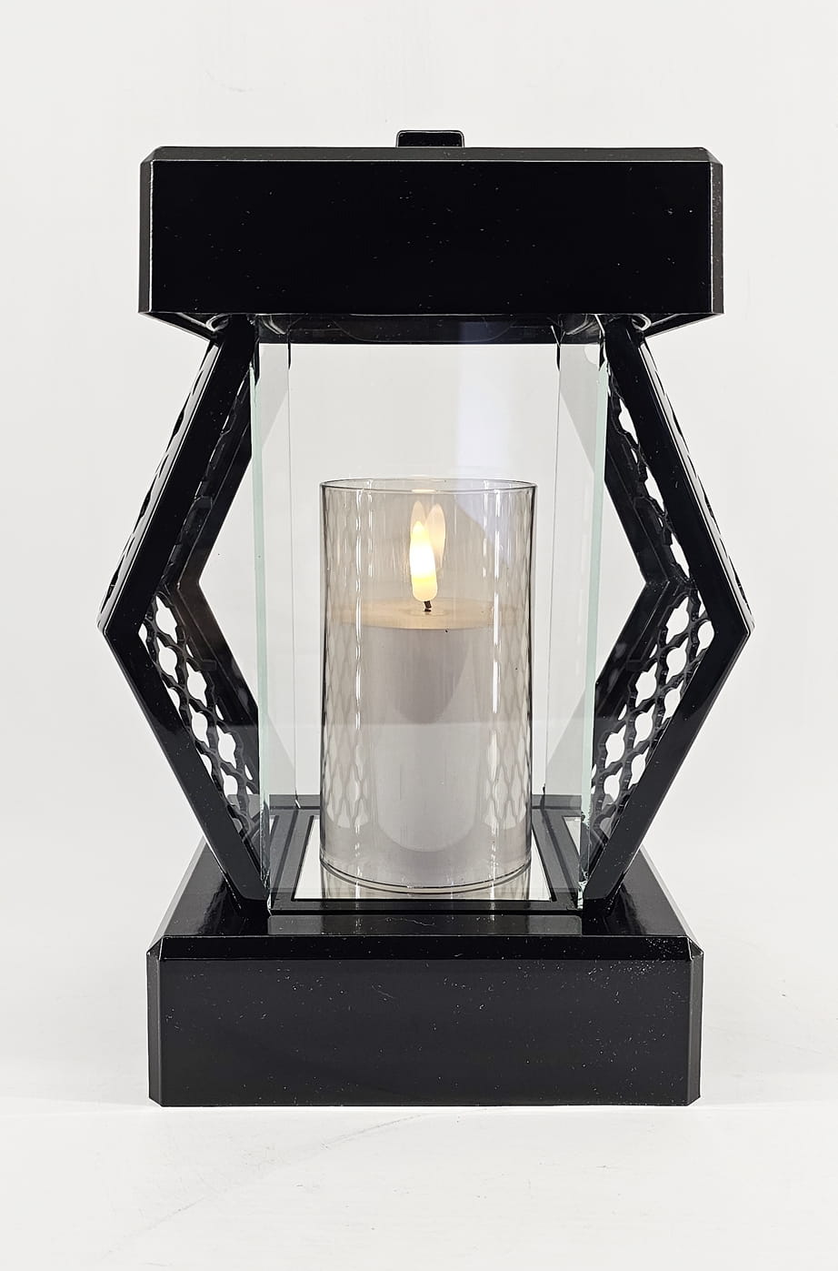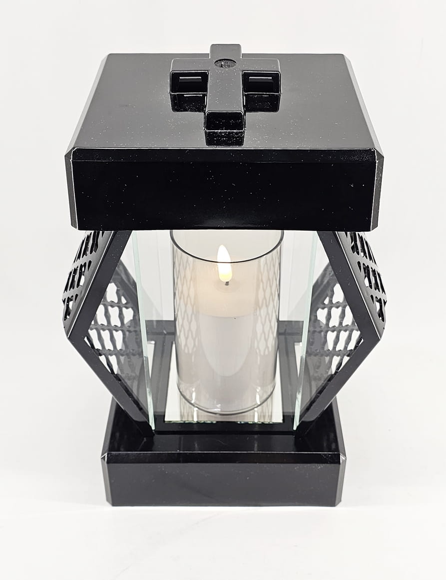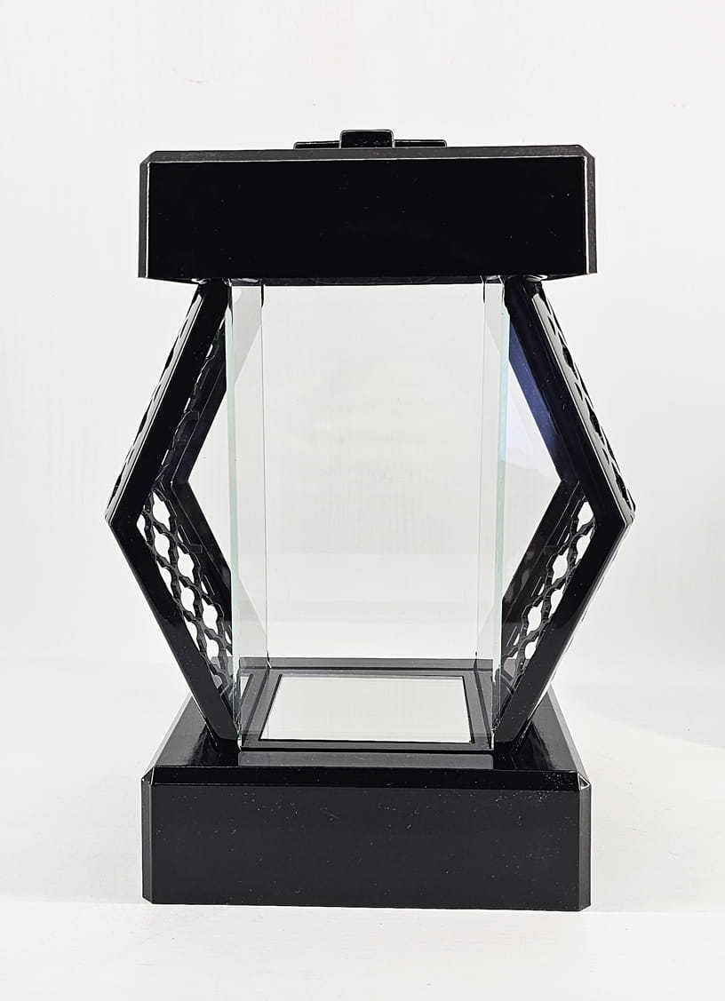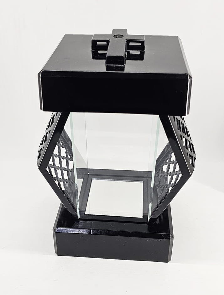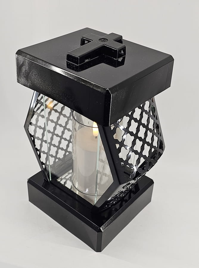 - kolor znicza: Czarny, szyba przezroczysta + tworzywo czarne lakierowane. Boki z tworzywa i szkła. Tył znicza to szyba. Pokrywa i podstawa z czarnego lakierowanego tworzywa