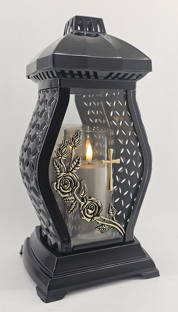 Znicz Lampion Glamur Waza Rattan mała- Róża z krzyżykiem złota