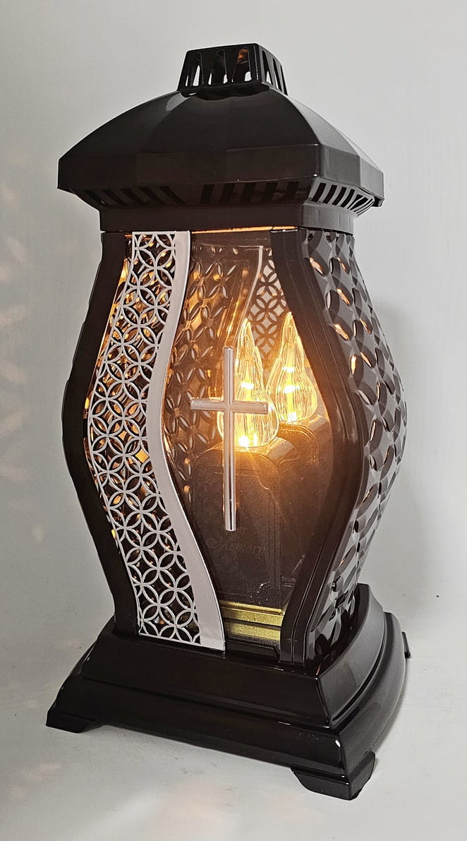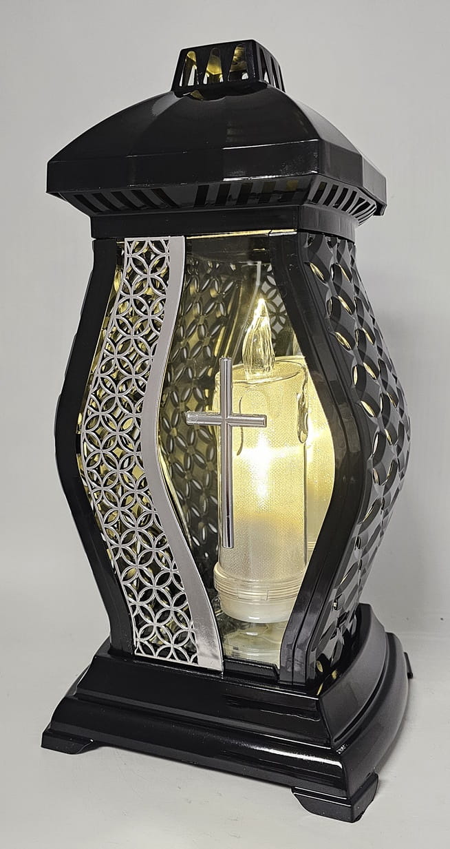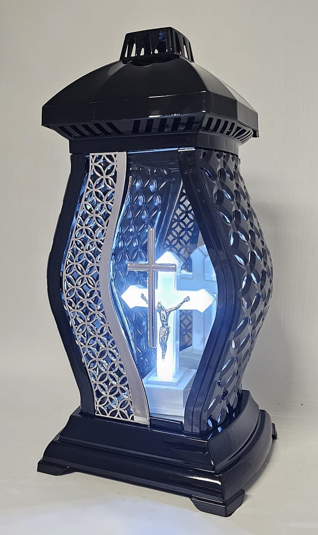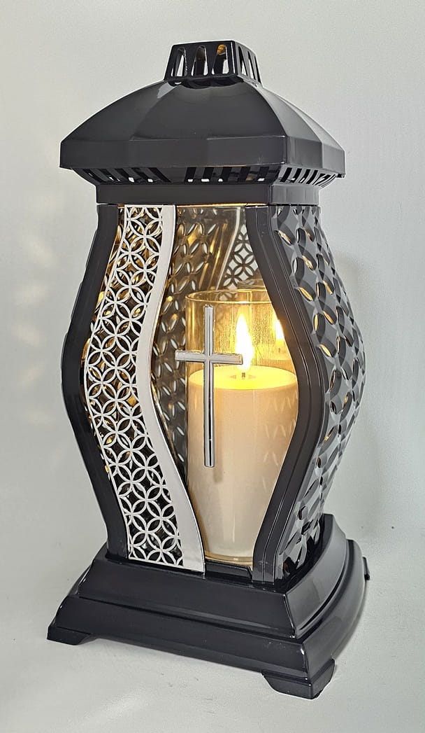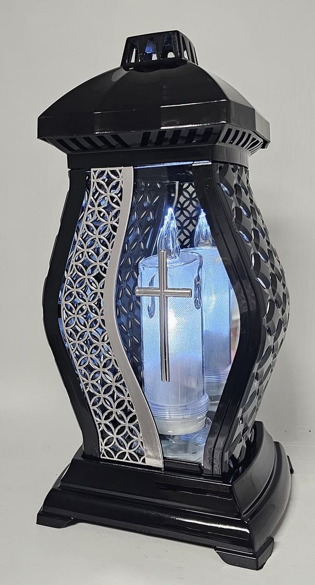 - kolor znicza: Czarny, szyba przezroczysta + tworzywo czarne lakierowane. Boki z tworzywa i szkła. Tył znicza to lustro. Pokrywa i podstawa z czarnego lakierowanego tworzywa
