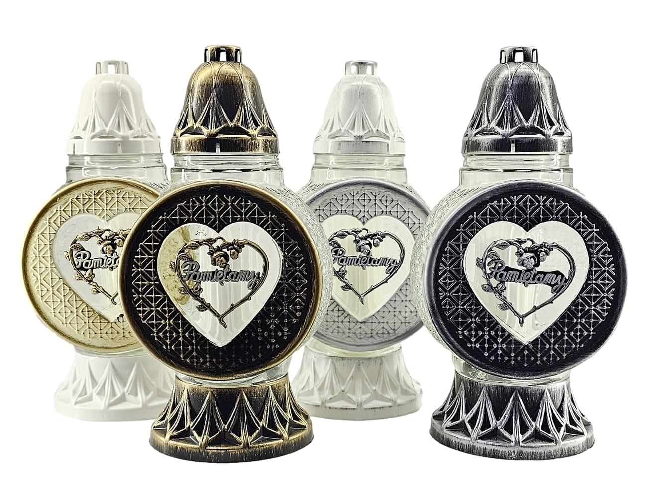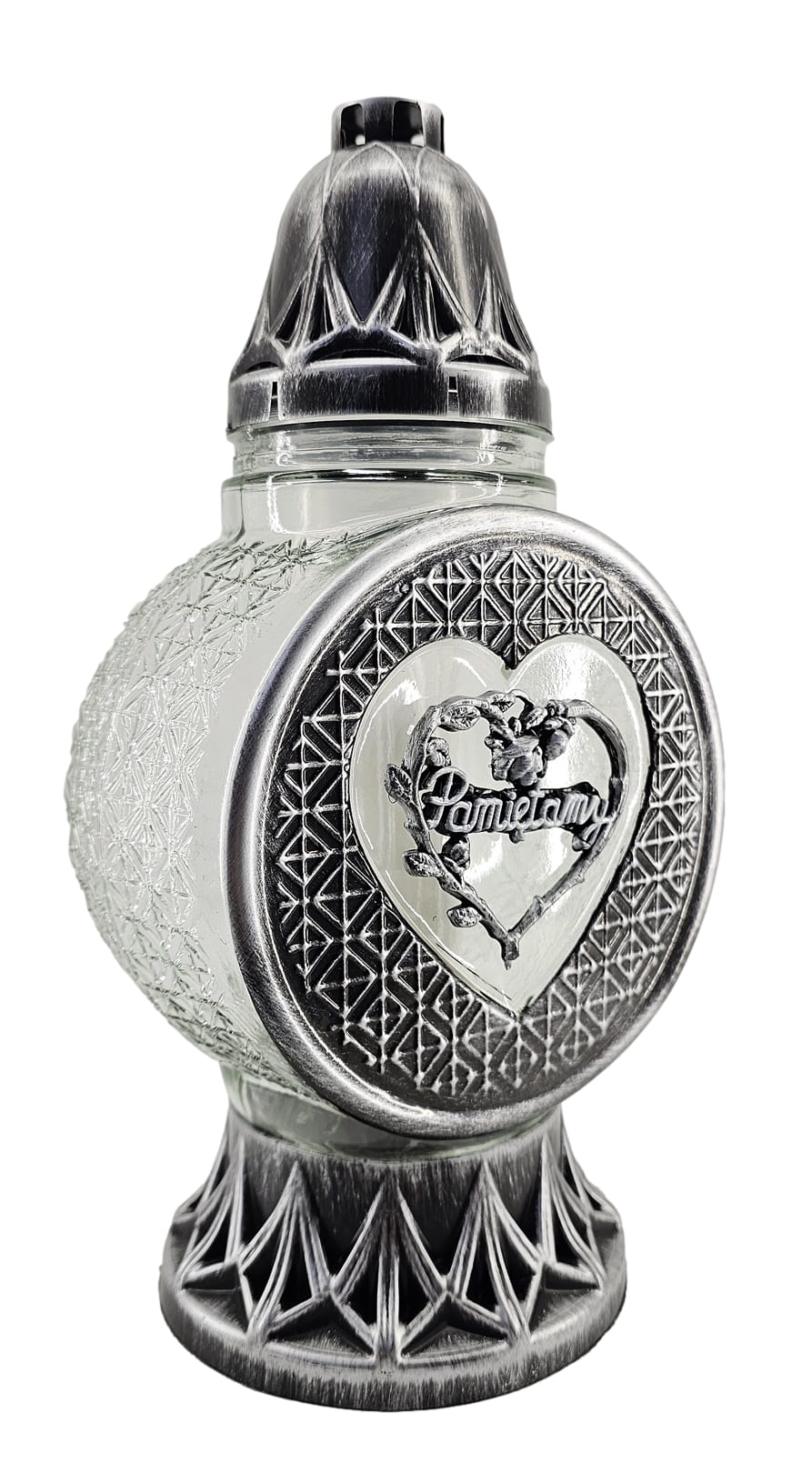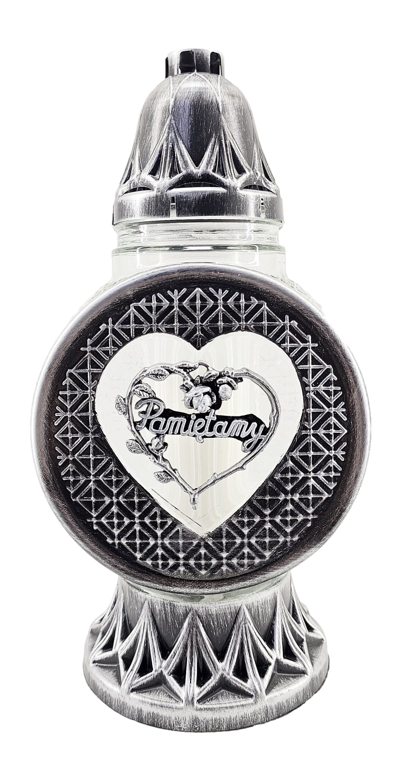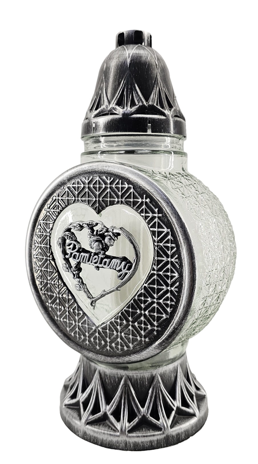 Znicz Lampion SOFIA SERCE PAMIĘTAMY czarno-srebrne