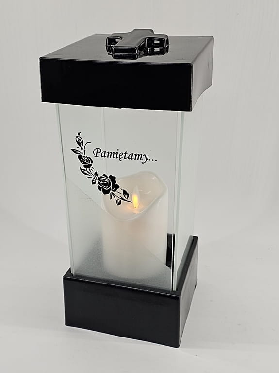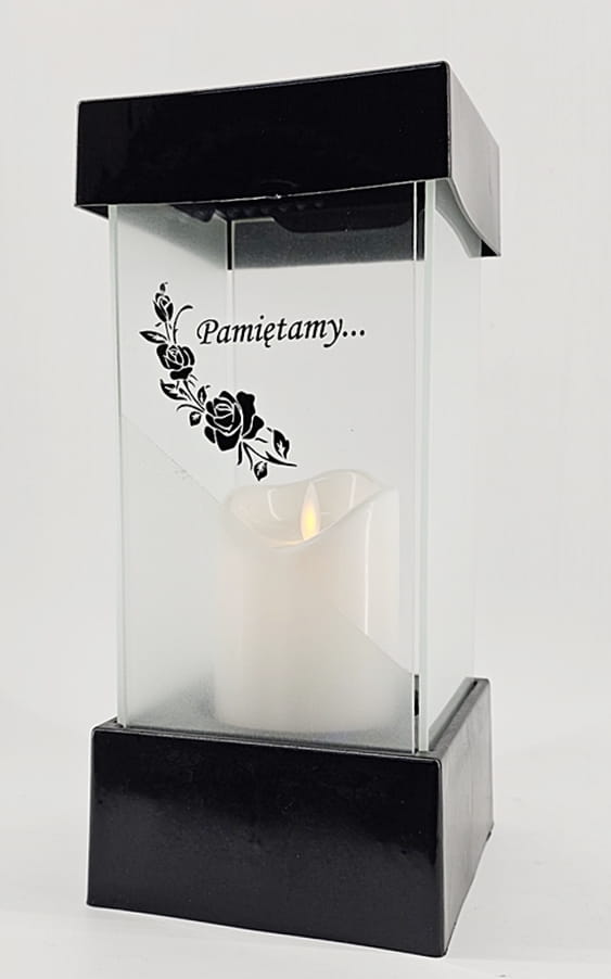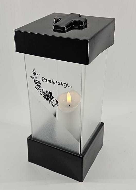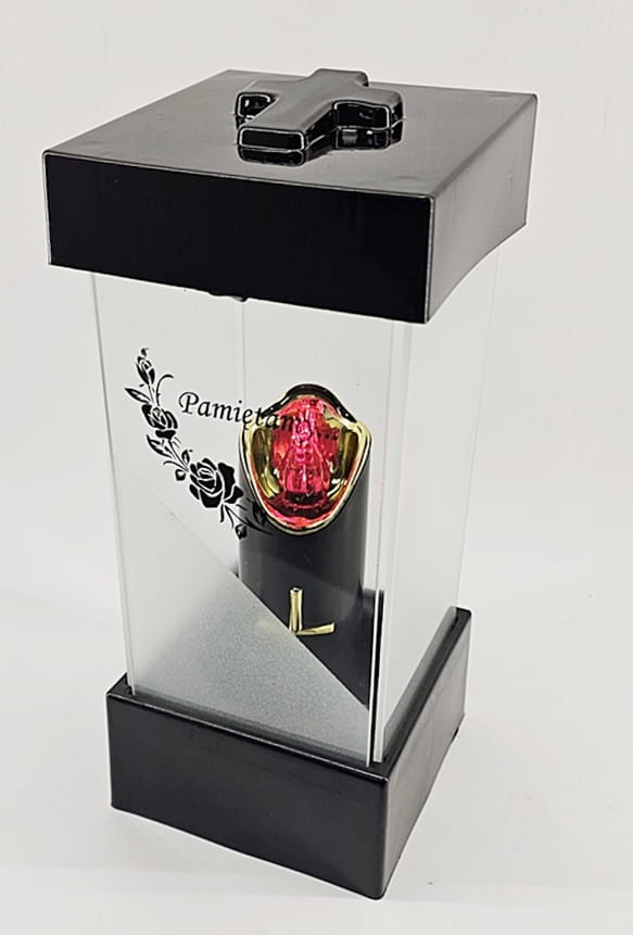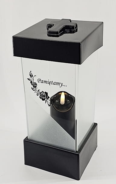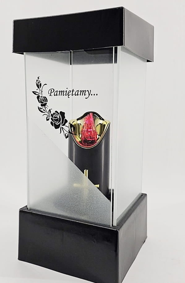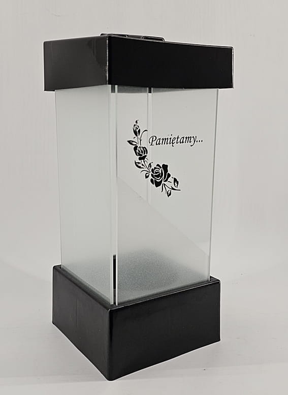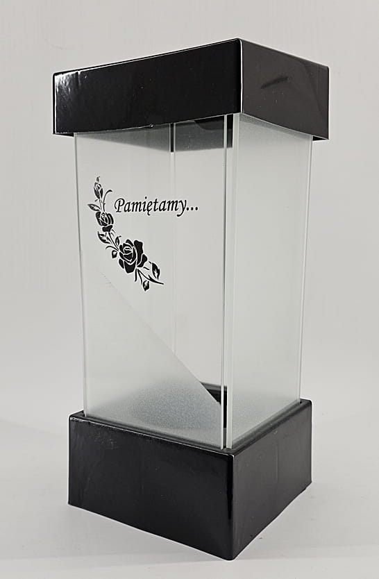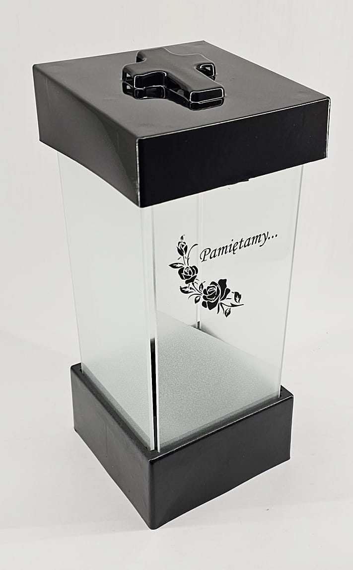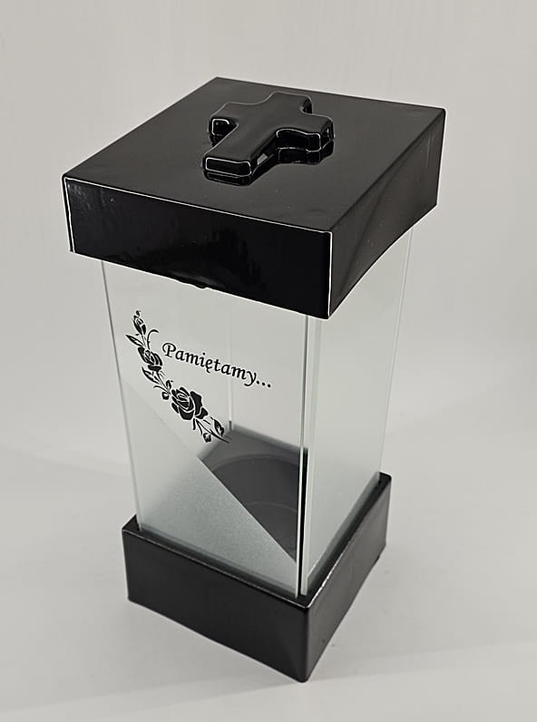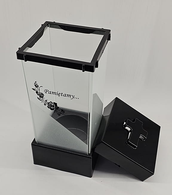 - kolor znicza: szyba satynowana. Pokrywa i podstawa z czarnego lakierowanego tworzywa