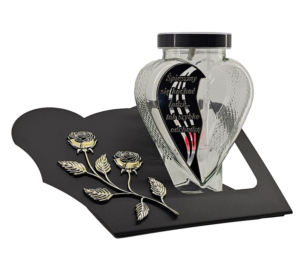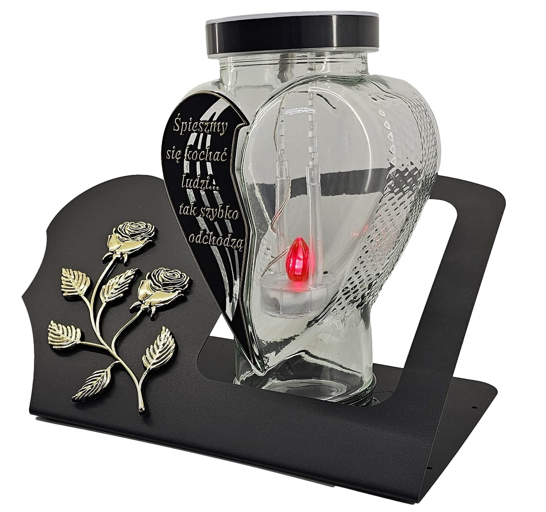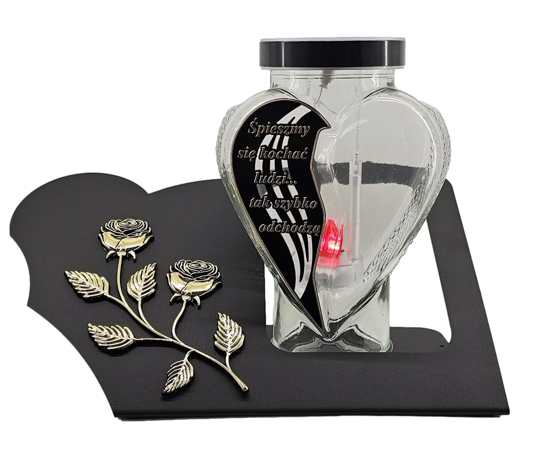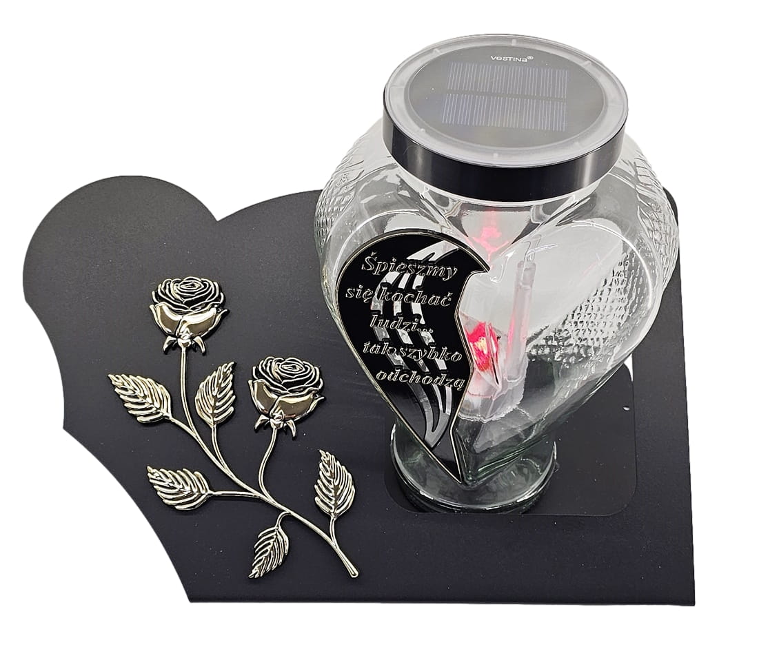 Znicz Lampion Serce FOTOWOLTAICZNY DeLux -róża