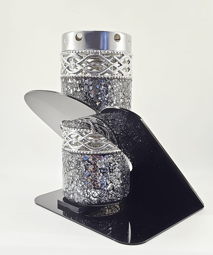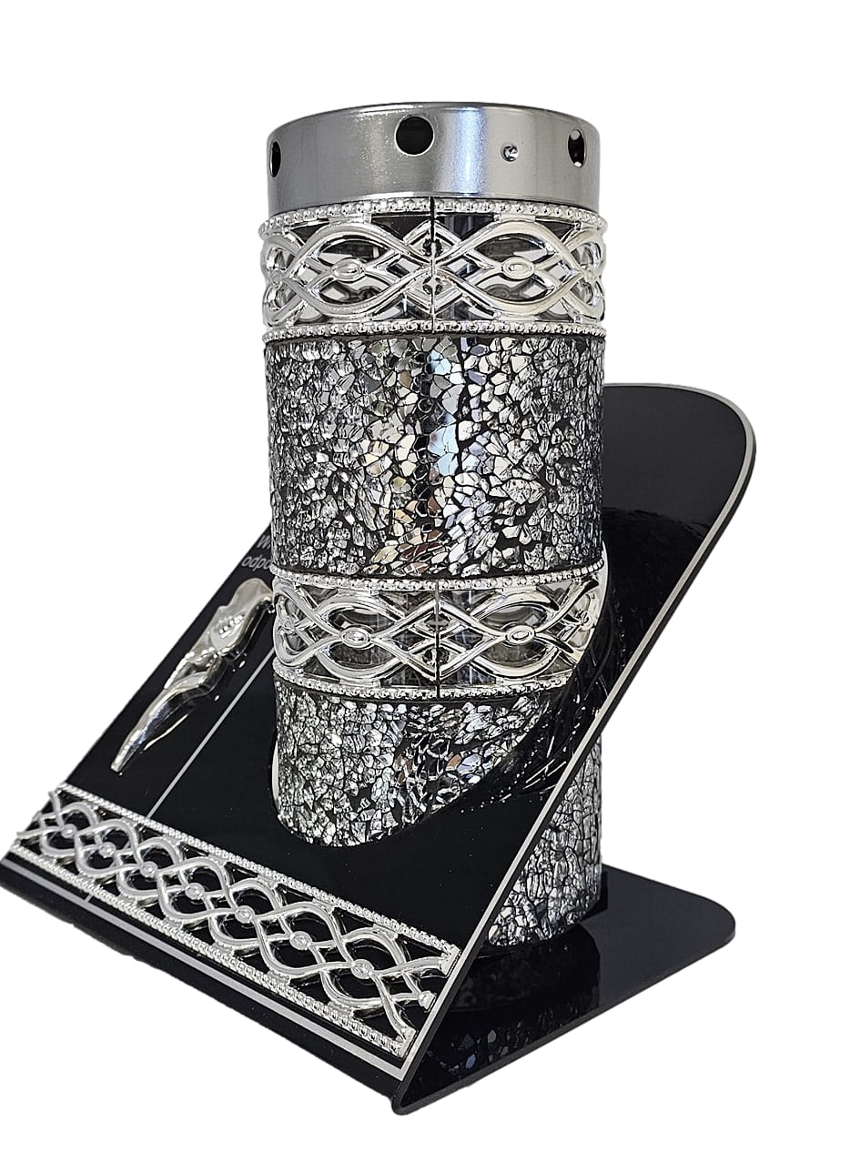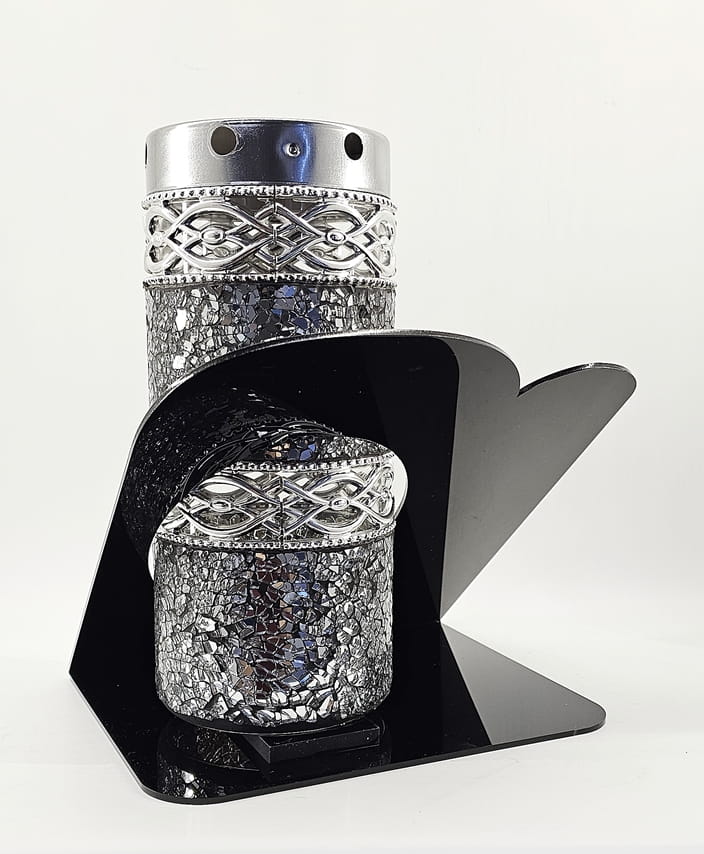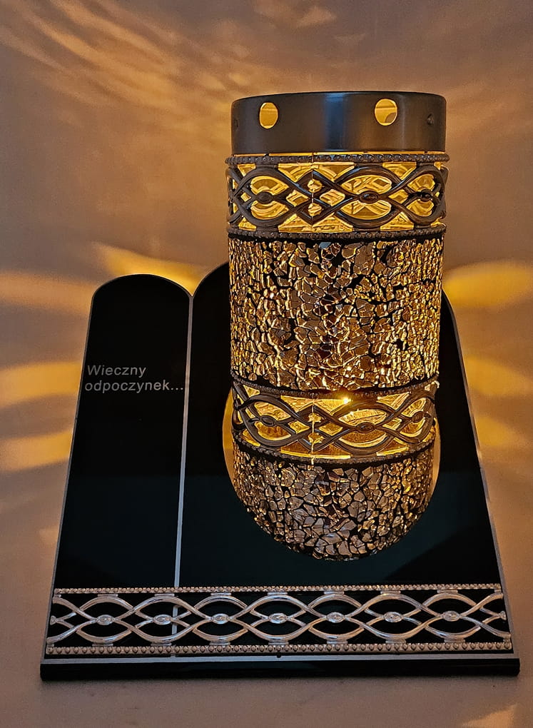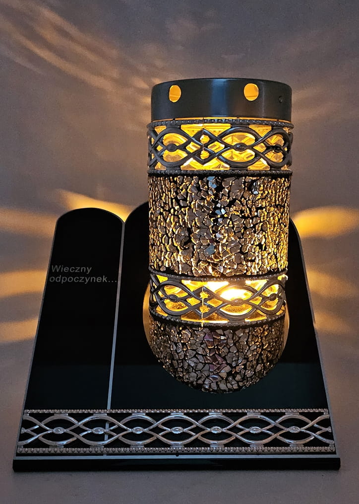 - kolor znicza: Srebrny+ srebrny dekor. Podstawa z giętego akrylu, pokrywa metalowa