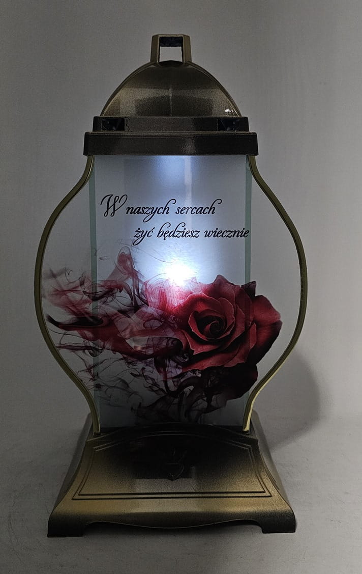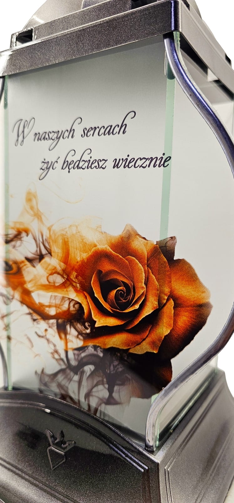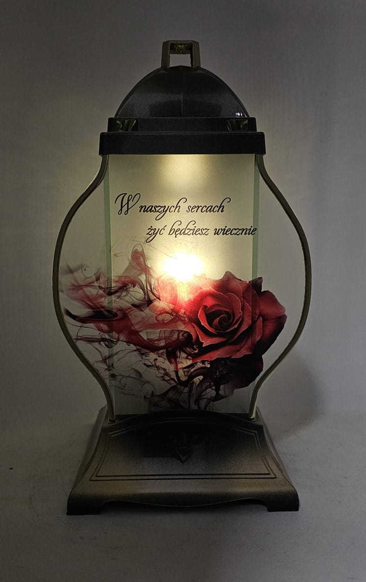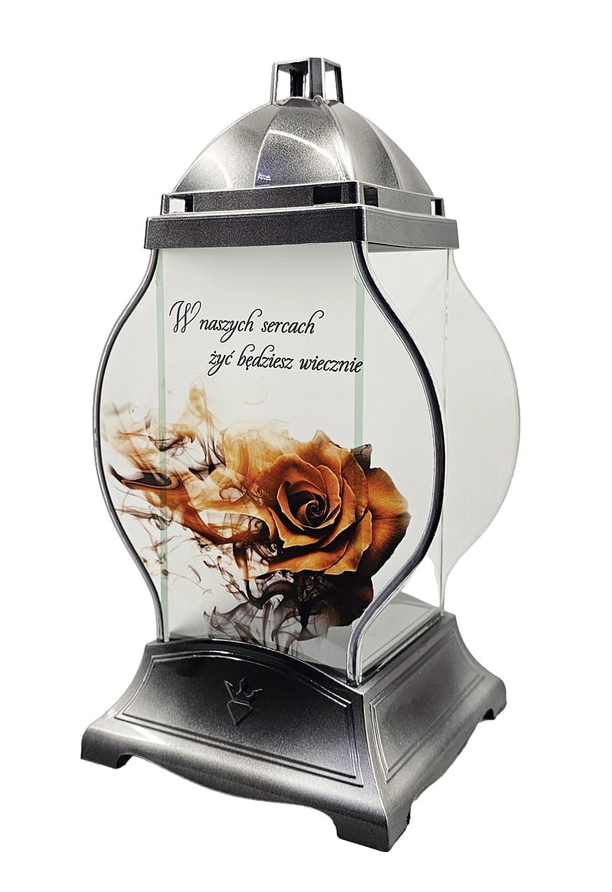 Znicz Lampion Witraż Q Herbaciana róża srebro
