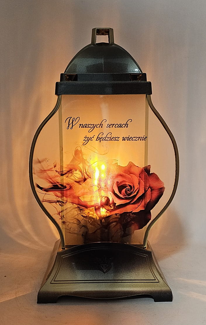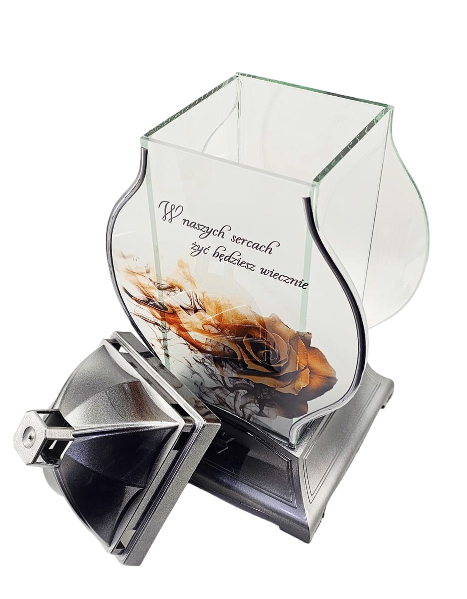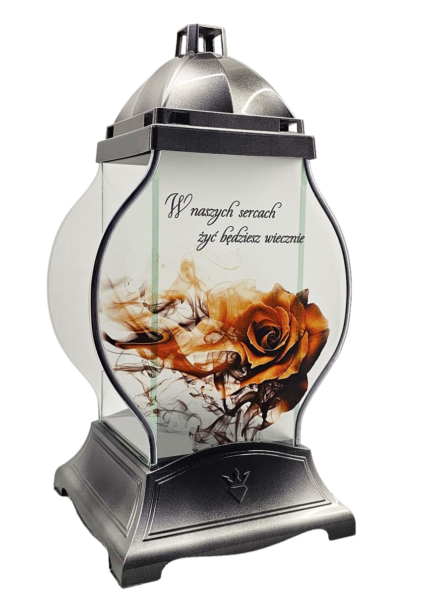 - kolor znicza: Czarny, szyba przednia mleczna z grafiką. Boki i tył ze szkła.