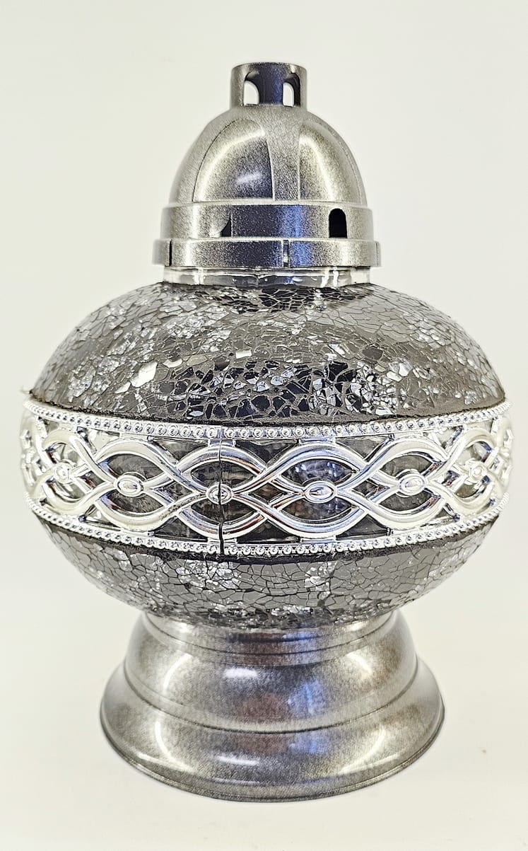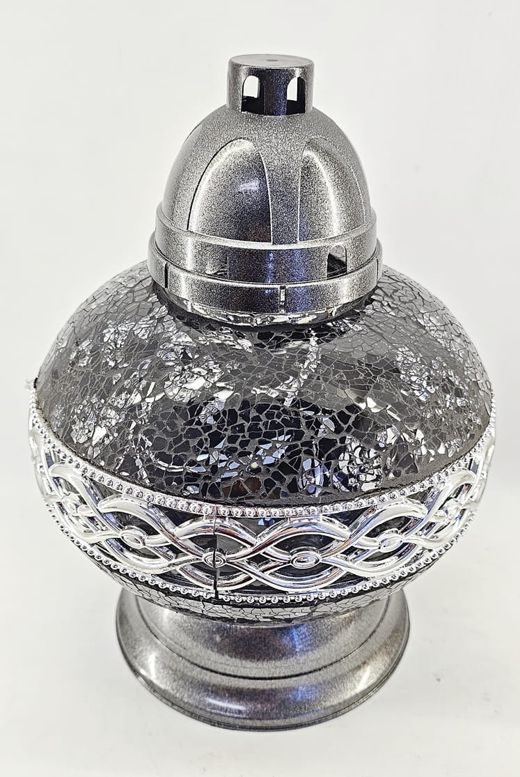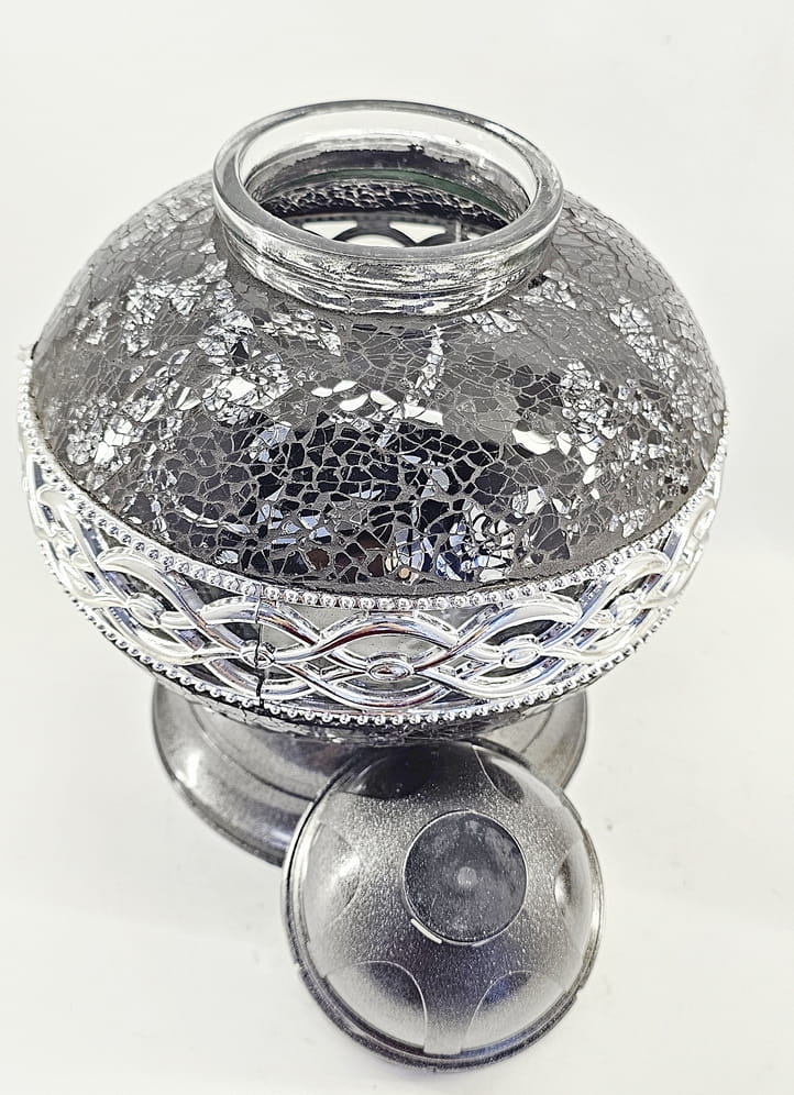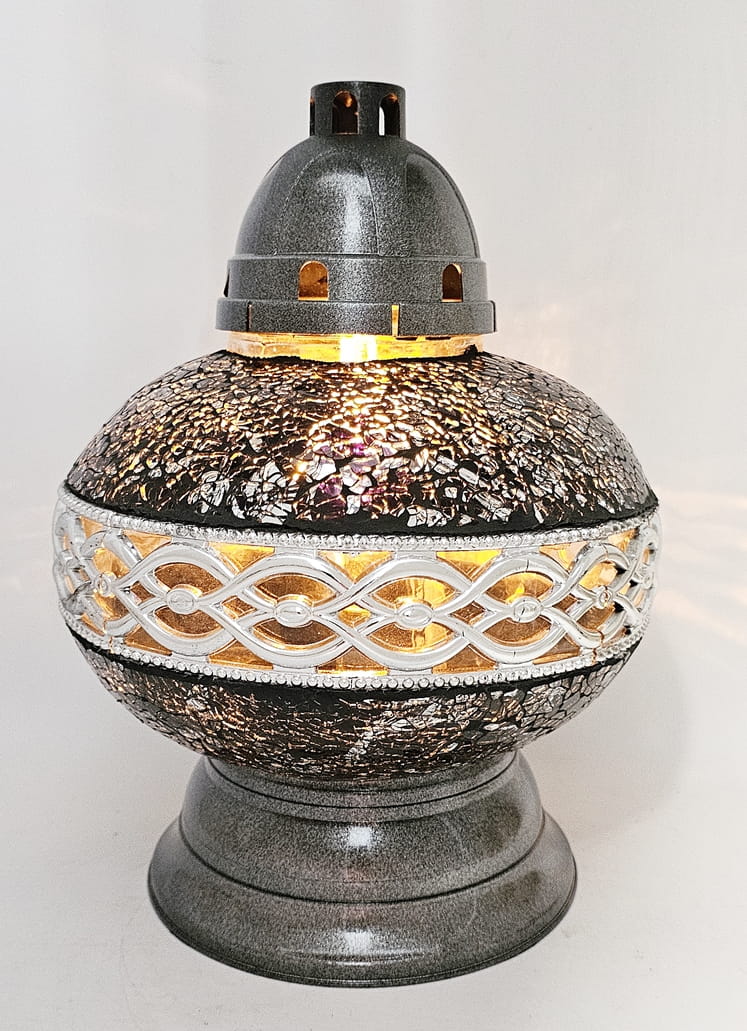 Znicz Lampion Witrażowy Kula duża decor czarno-srebrna