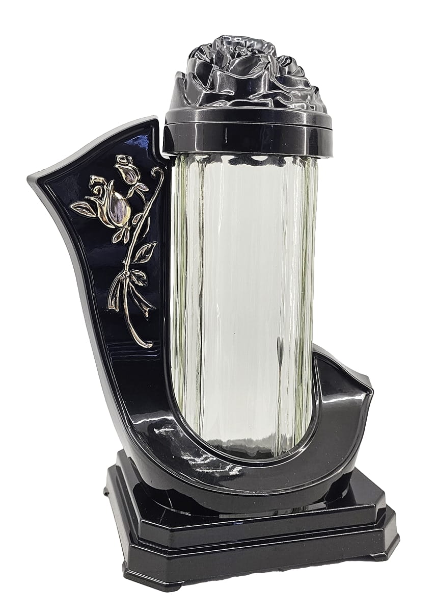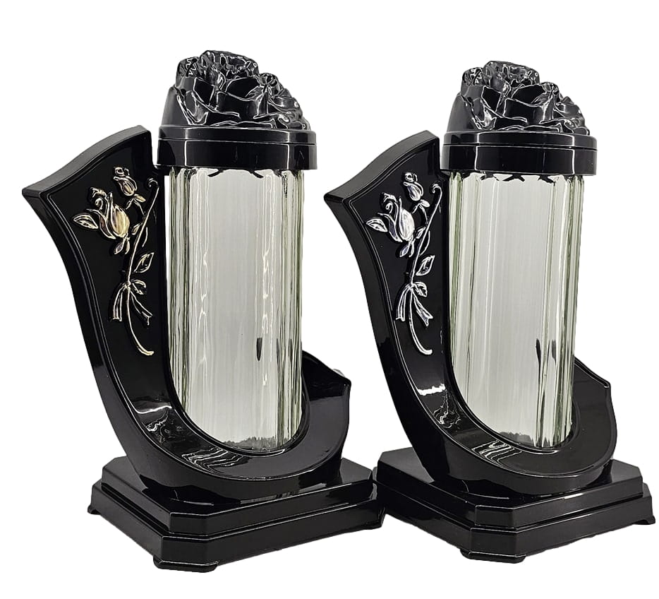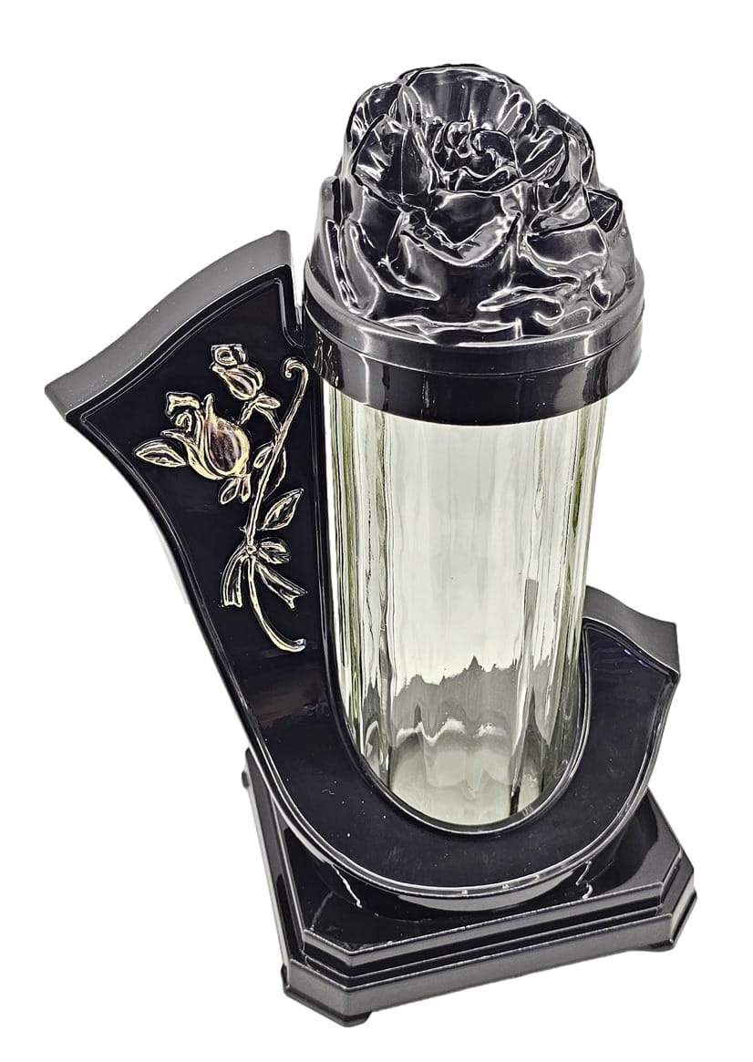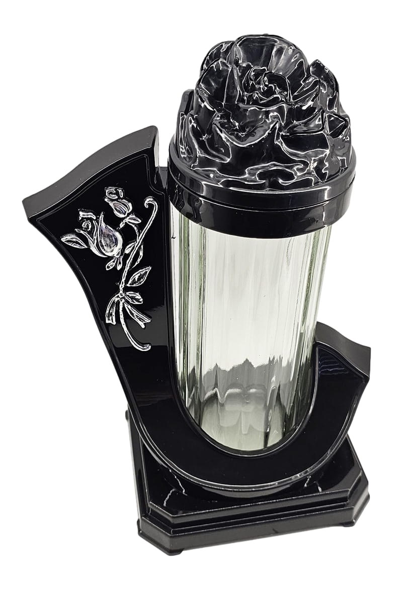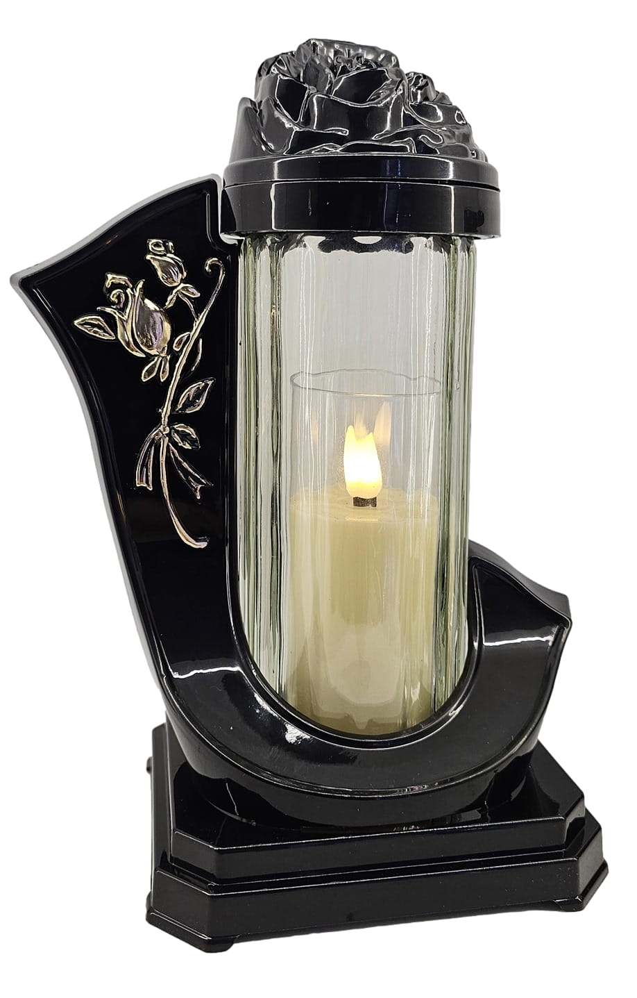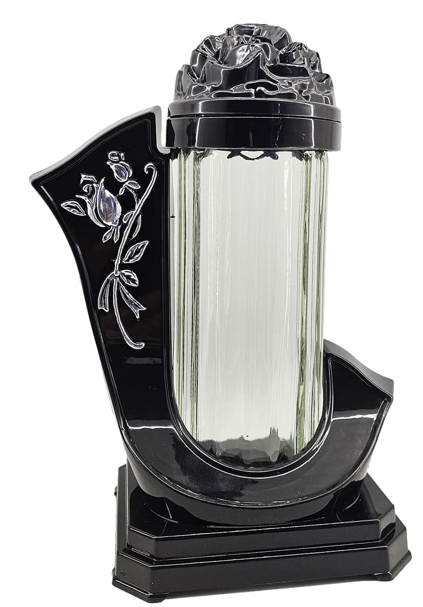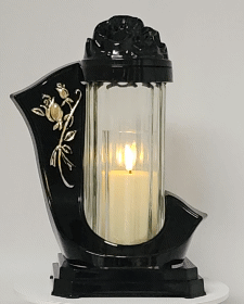 - kolor znicza: Czarny, gruba szklana tuba. Pokrywa i podstawa z czarnego lakierowanego tworzywa