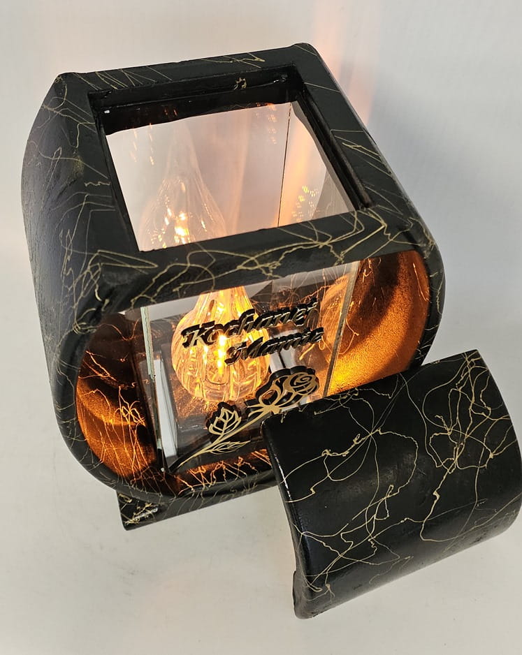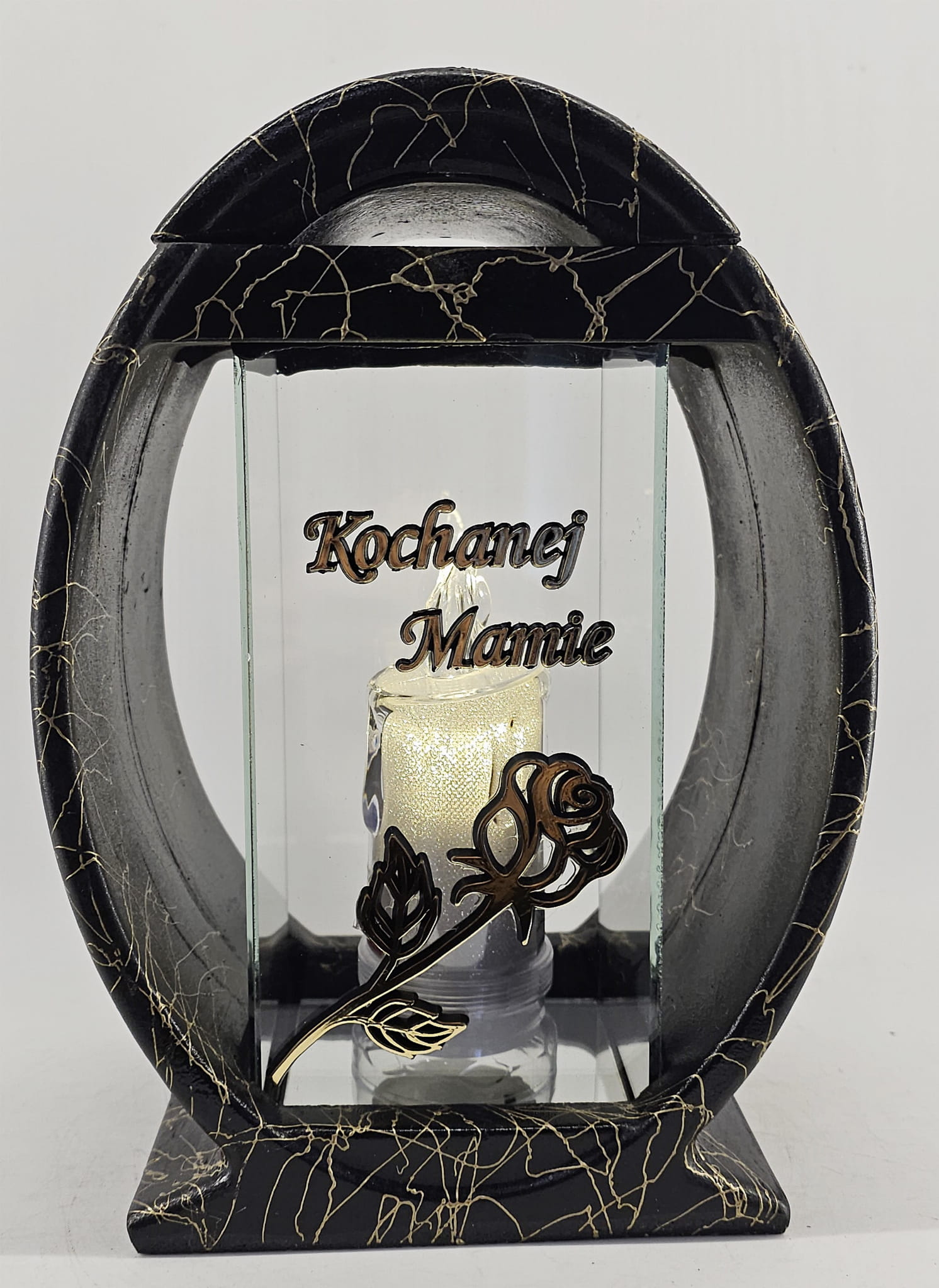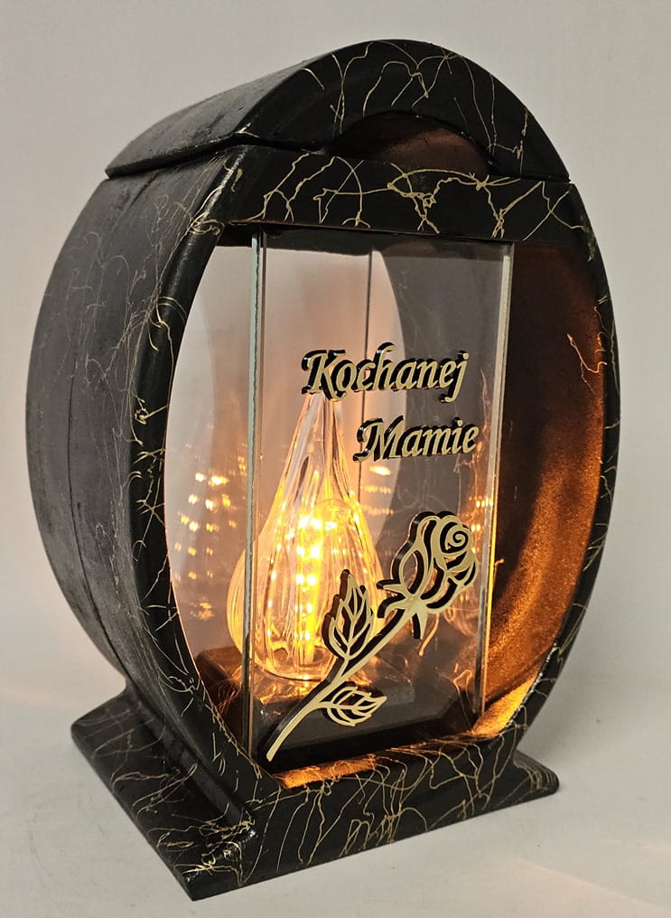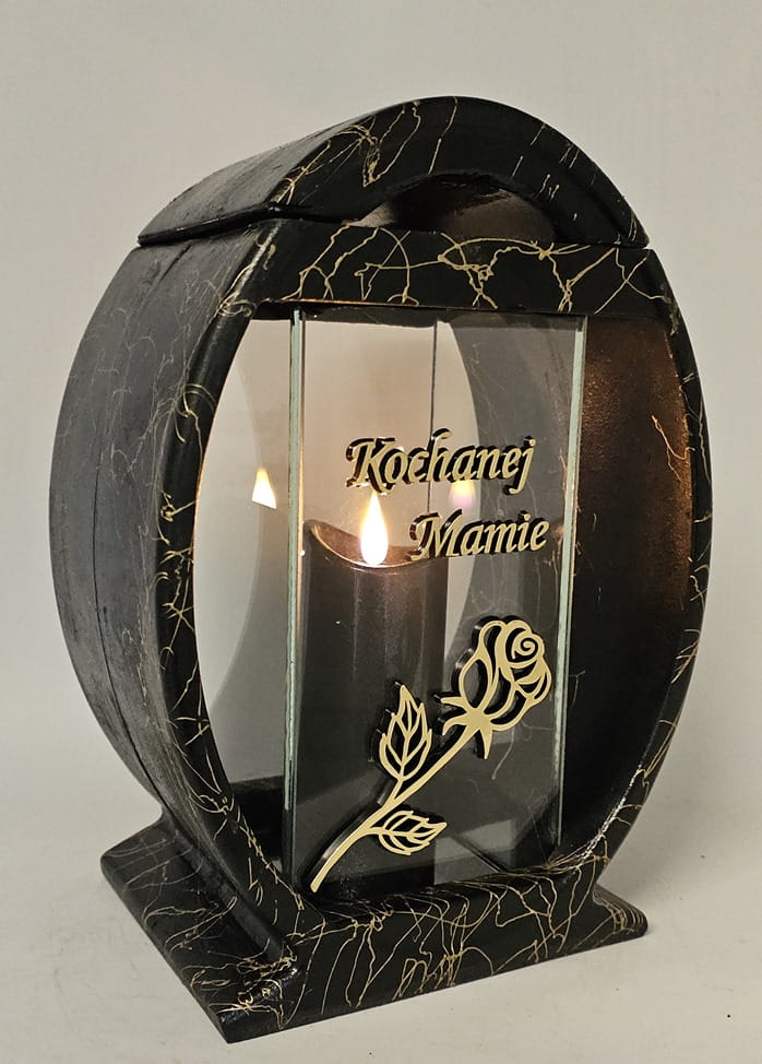 Znicz Lampion Żywica Koło Róża "Kochanej Mamie" złoto