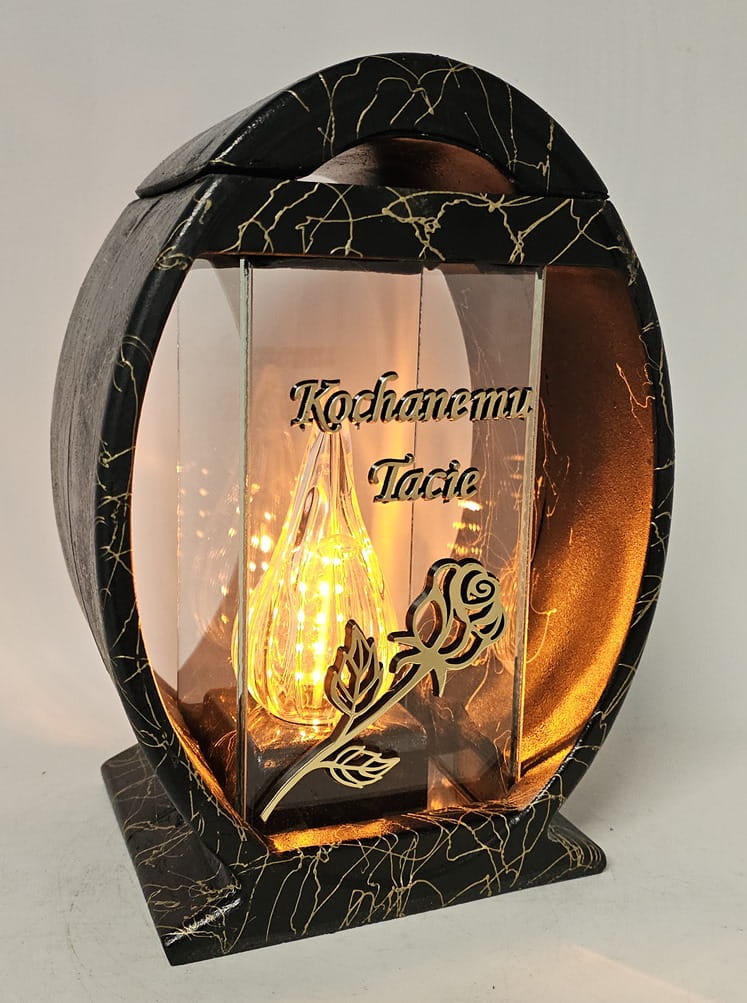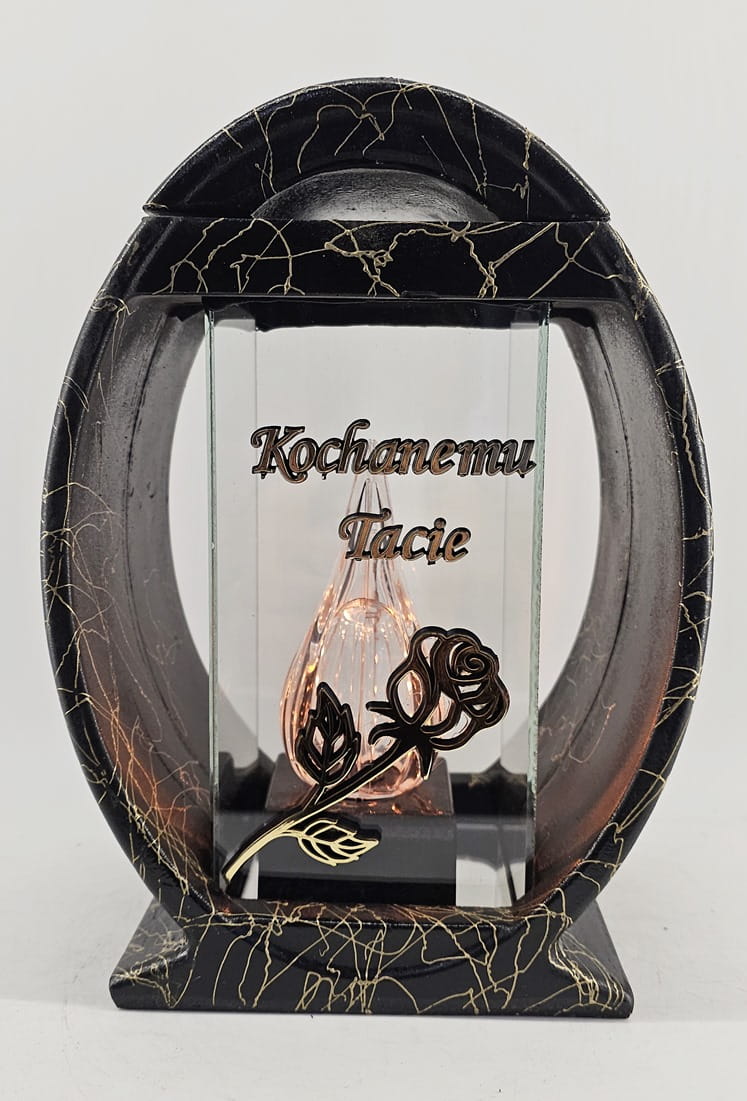Znicz Lampion Żywica Koło Róża "Kochanemu Tacie" złoto