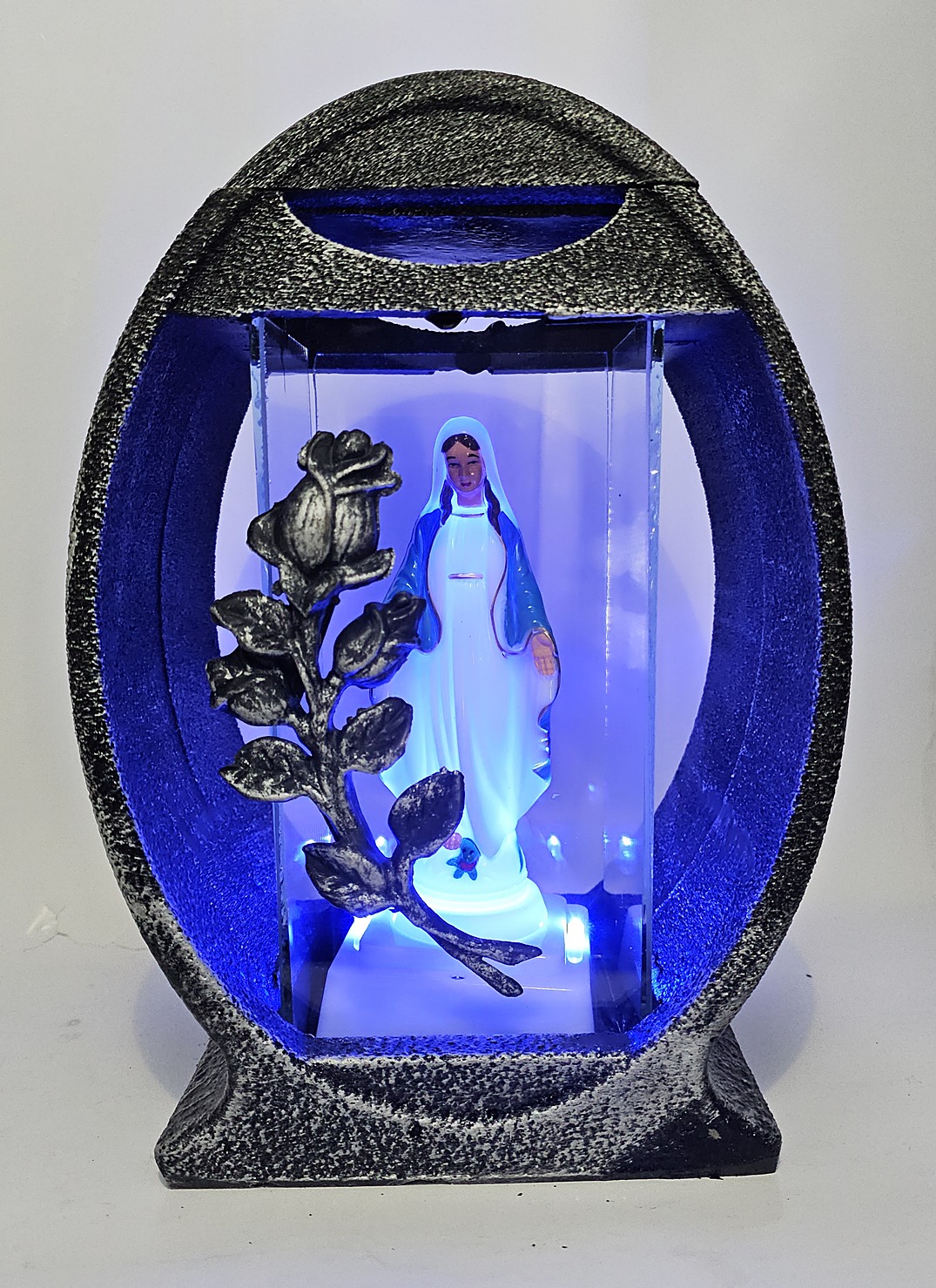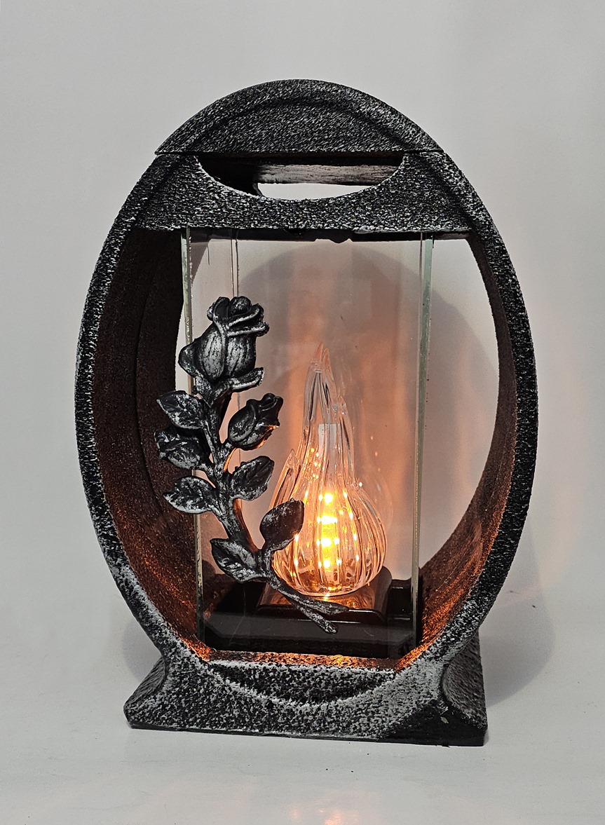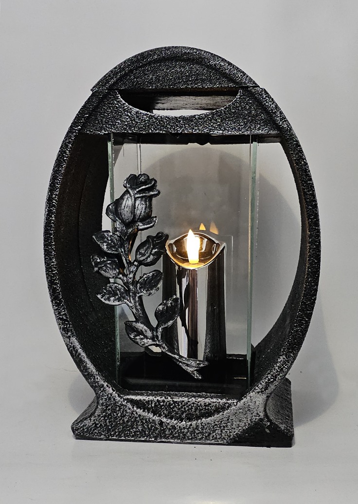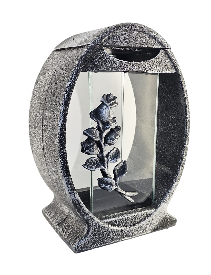 Znicz Lampion Żywica Koło Róża Srebro