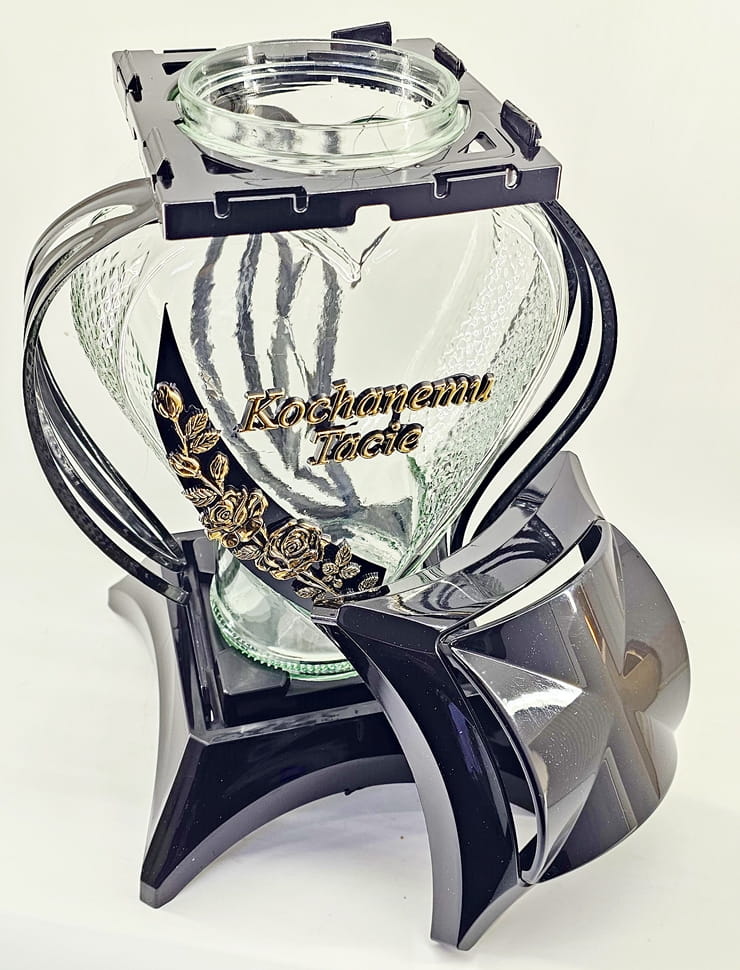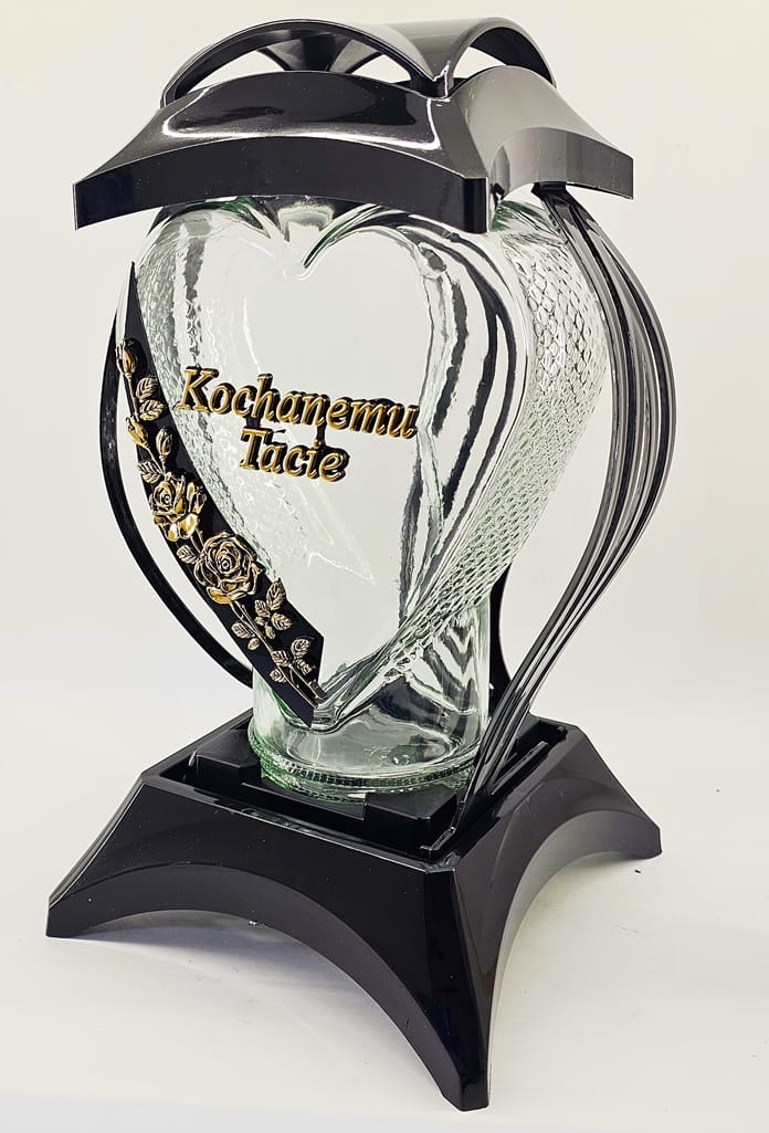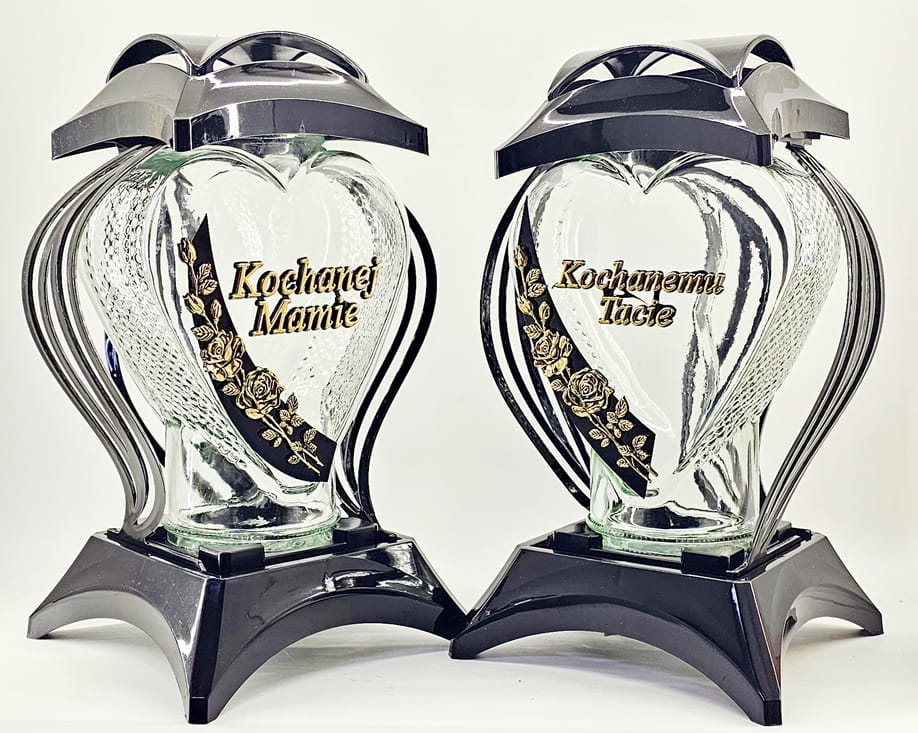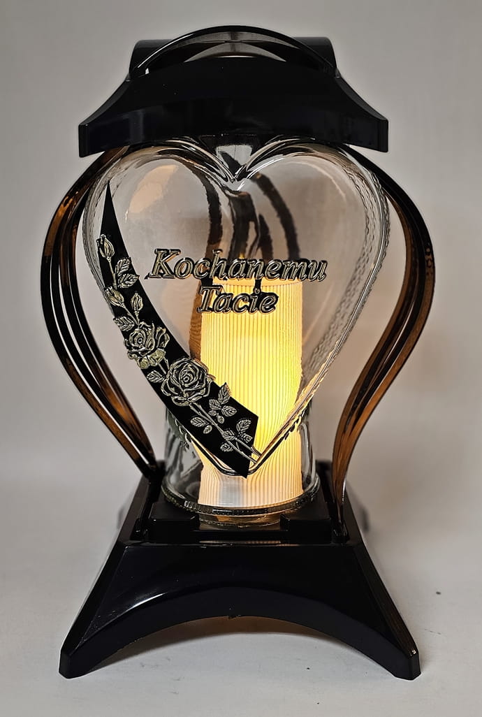 - kolor znicza: Czarny ze złotymi zdobieniami. Pokrywa i podstawa z czarnego lakierowanego tworzywa