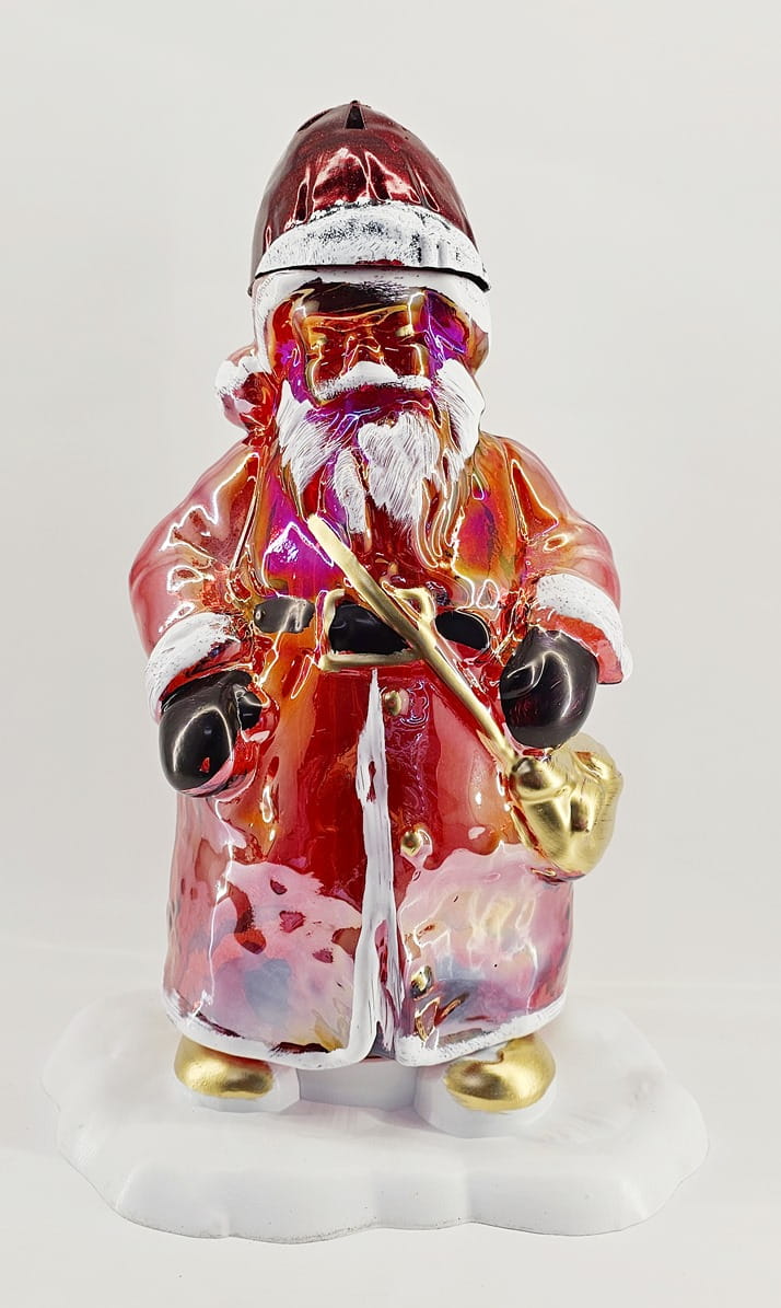 Duży Szklany Znicz w Kształcie Mikołaja 37 cm