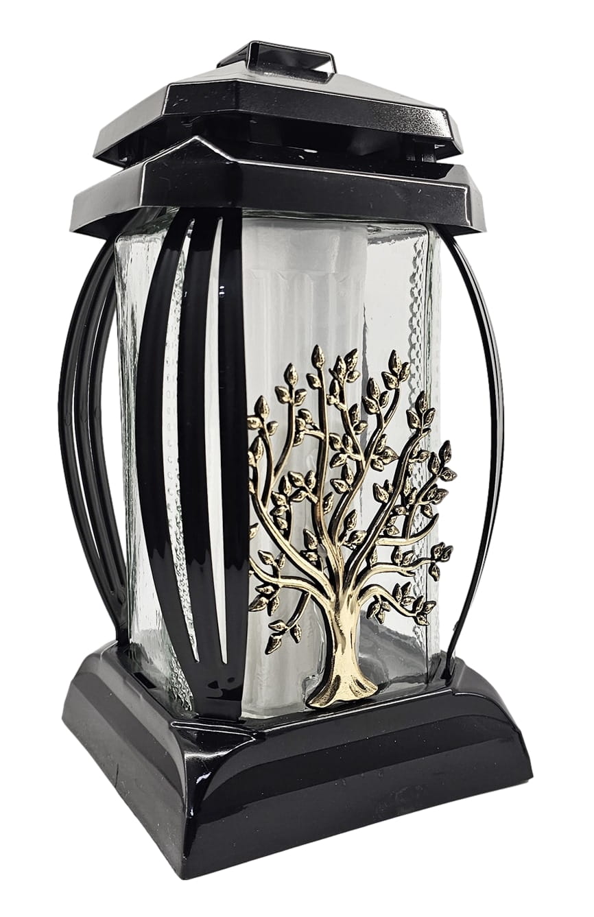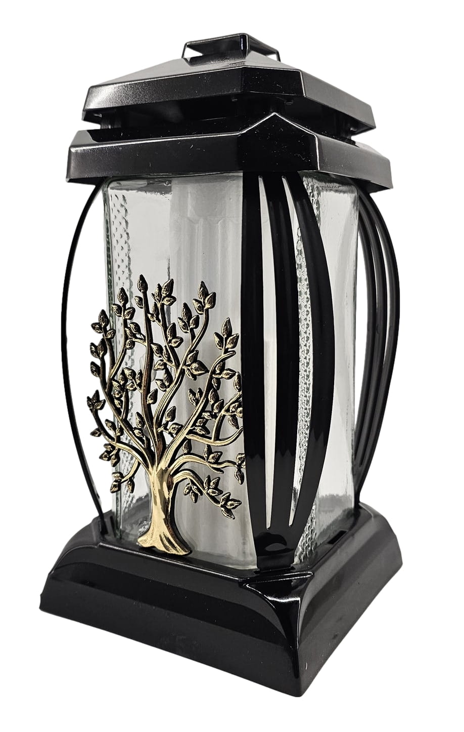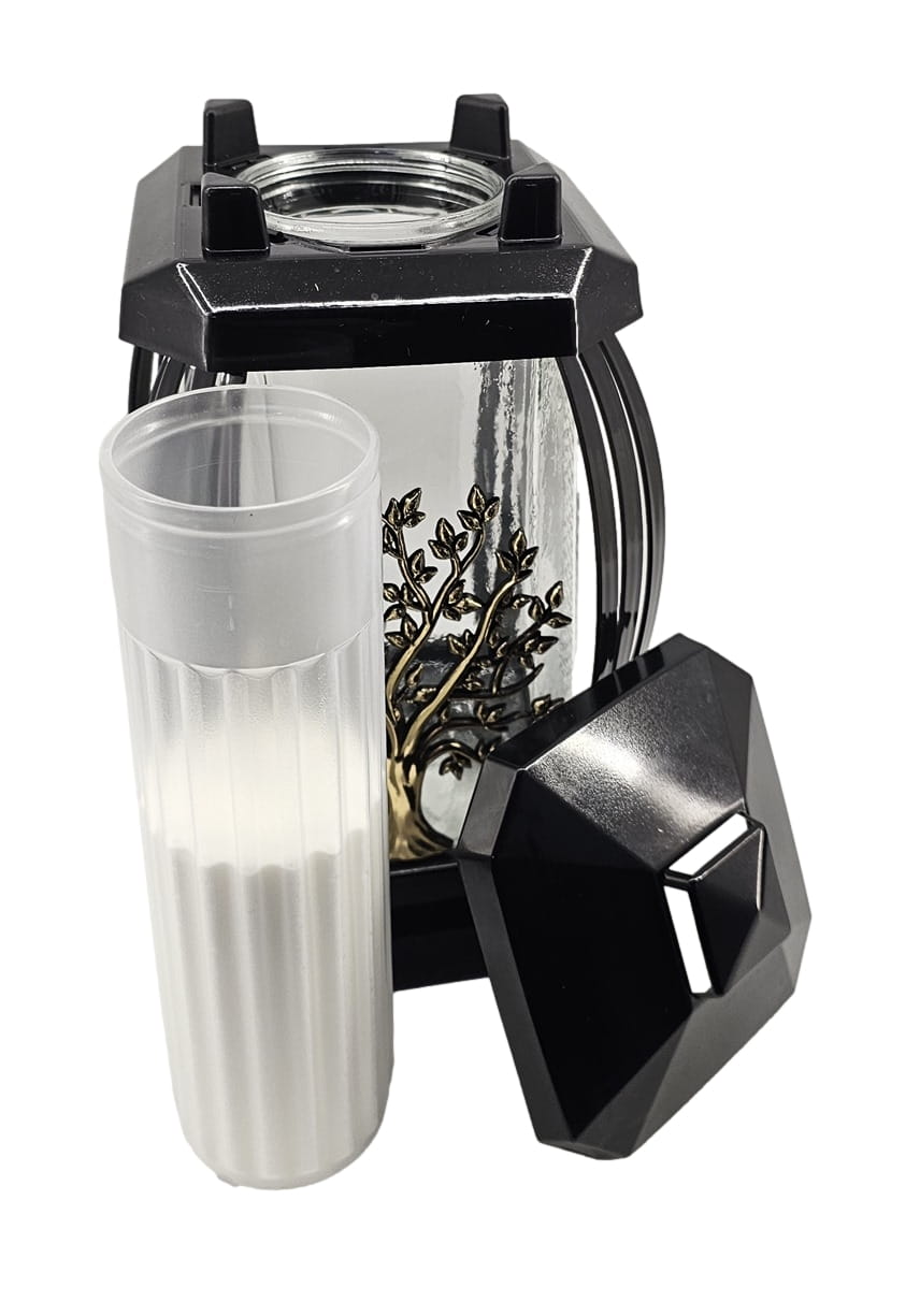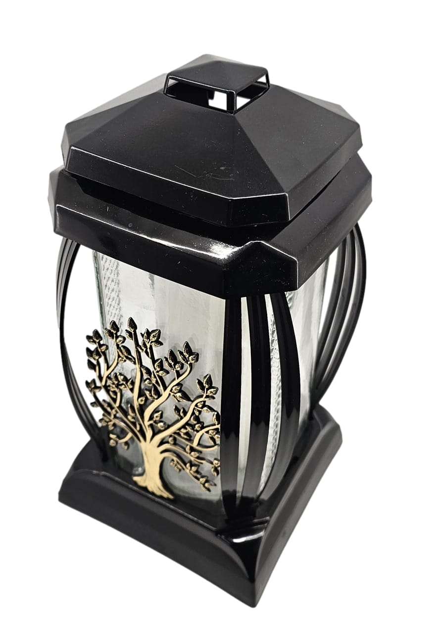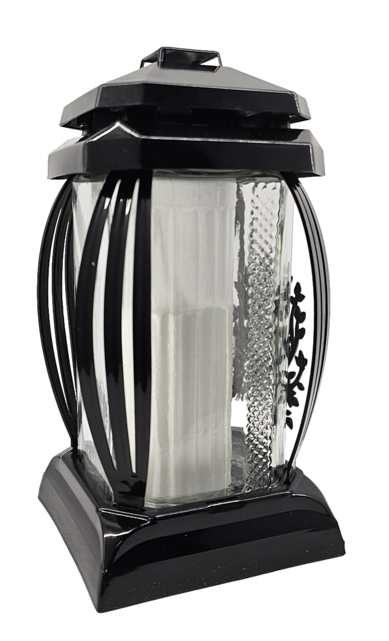 - kolor znicza: czarny, szkło przezroczyste + tworzywo czarne. Boki z ażurowego tworzywa. Pokrywa i podstawa z czarnego tworzywa