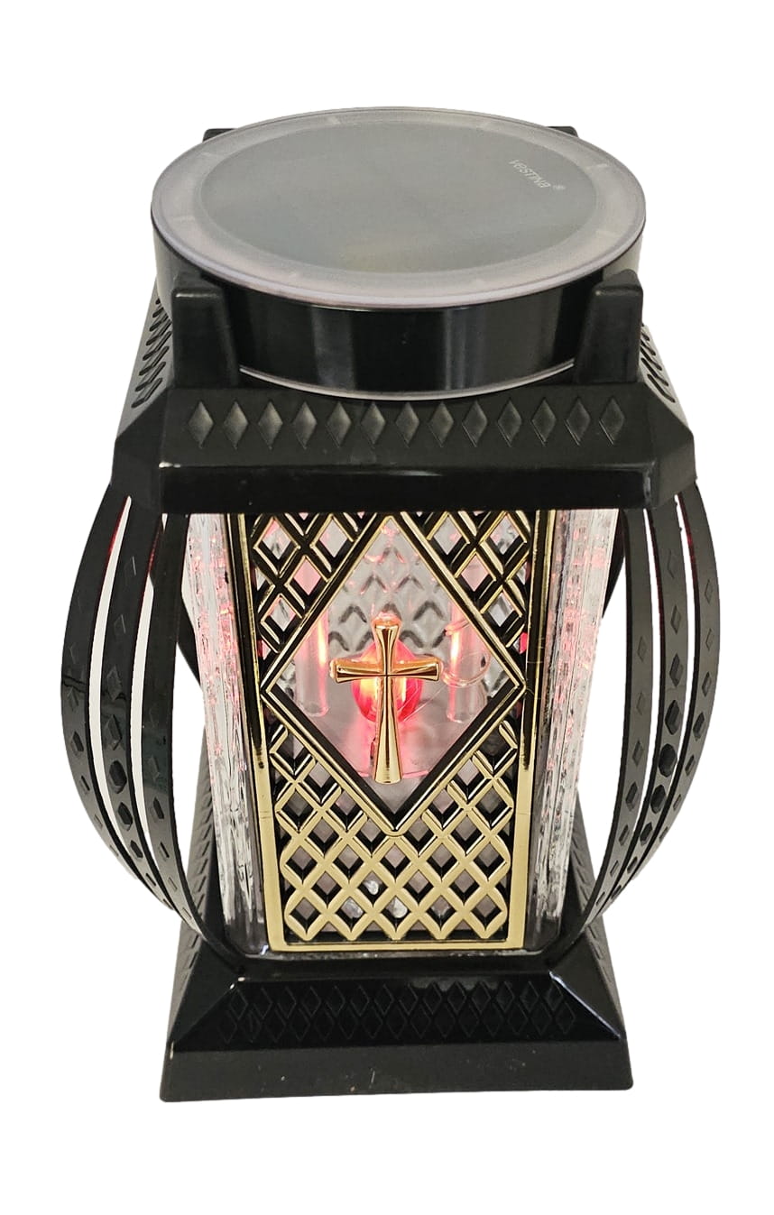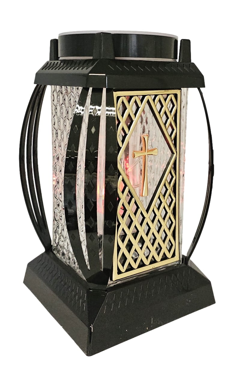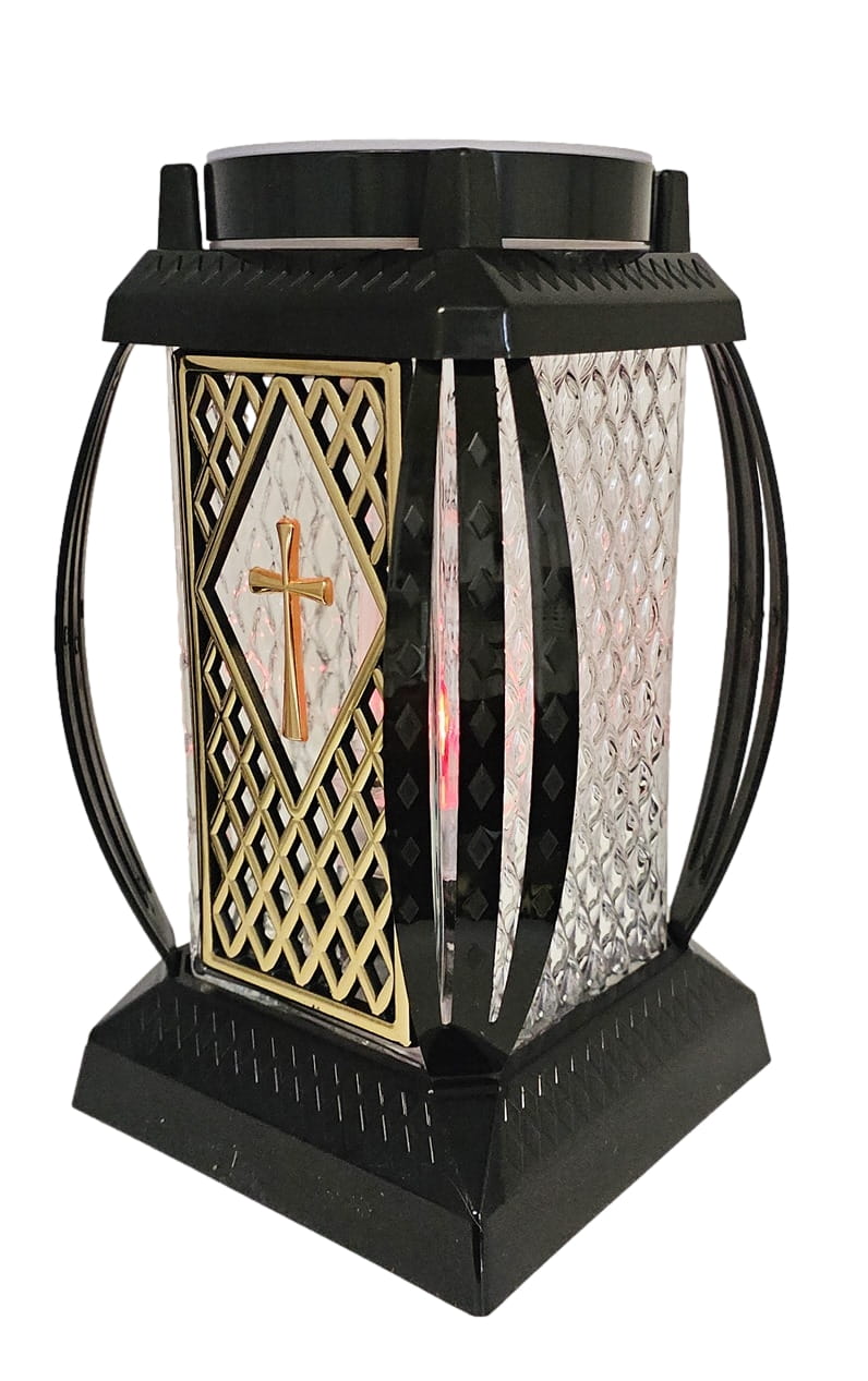 - W przykrywce znicza znajduje się panel fotowoltaiczny, który zasila czerwoną migającą diodę LED wkładu znajdującego się wewnątrz.