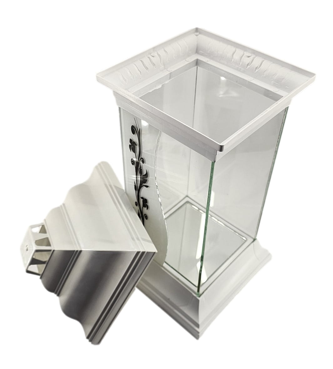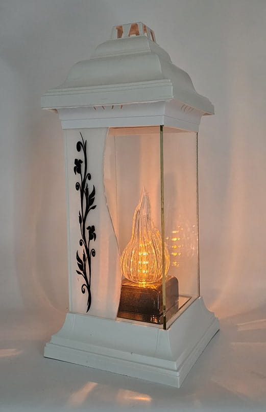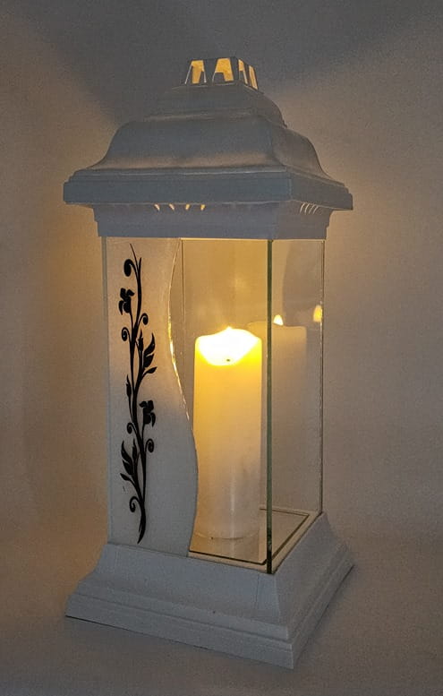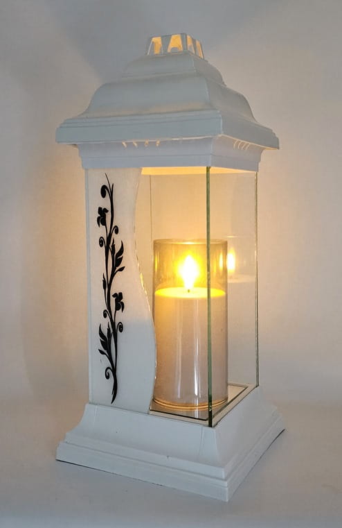 - kolor znicza: szyba przednia bezbarwna+mleczna z dekorem. Tylna szyba bezbarwna, boczki bezbarwne ze szkła , pokrywa i podstawa z tworzywa