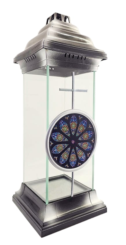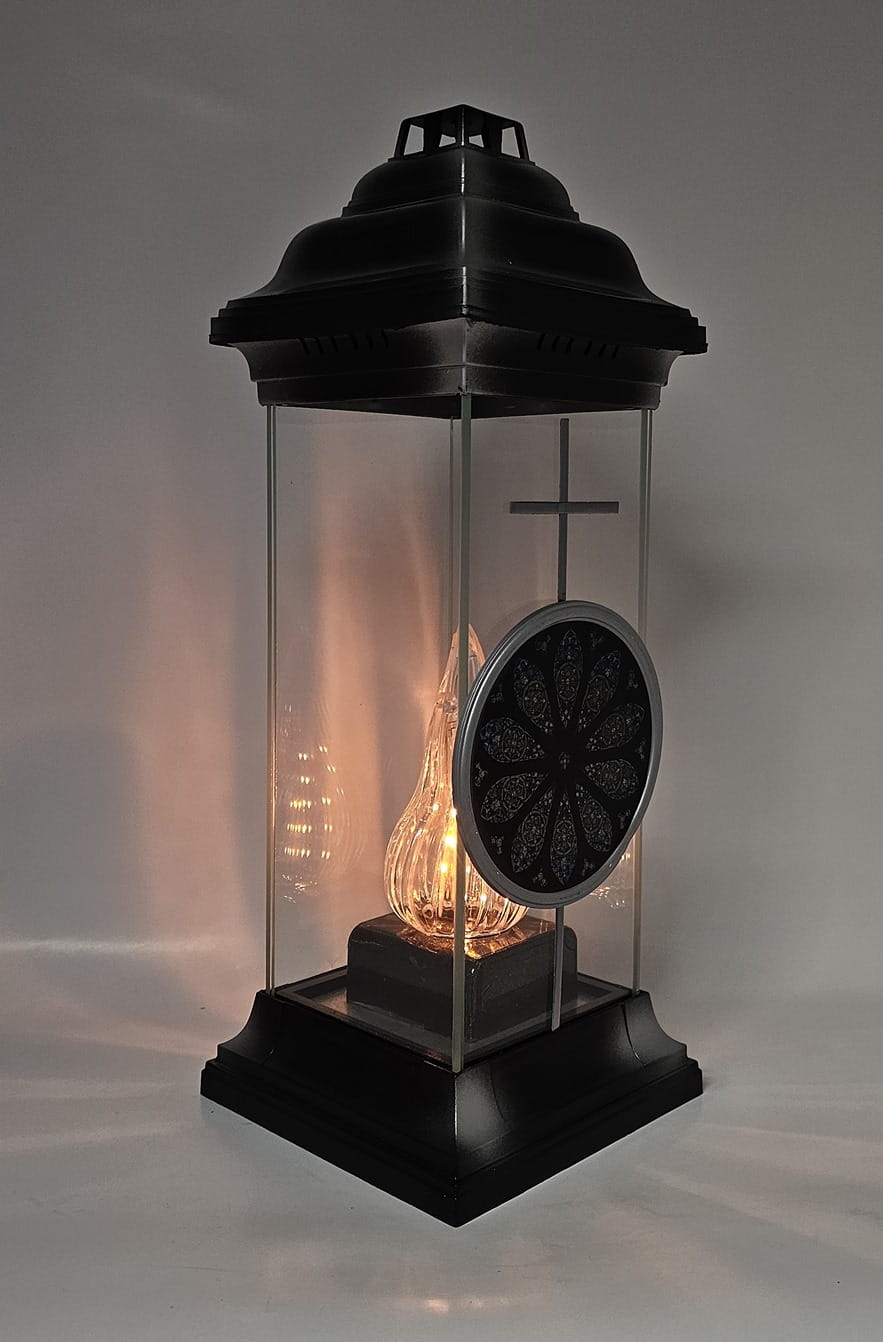 - kolor znicza: szyba przednia bezbarwna z dekorem. Tylna szyba , boczki bezbarwne ze szkła , pokrywa i podstawa z tworzywa