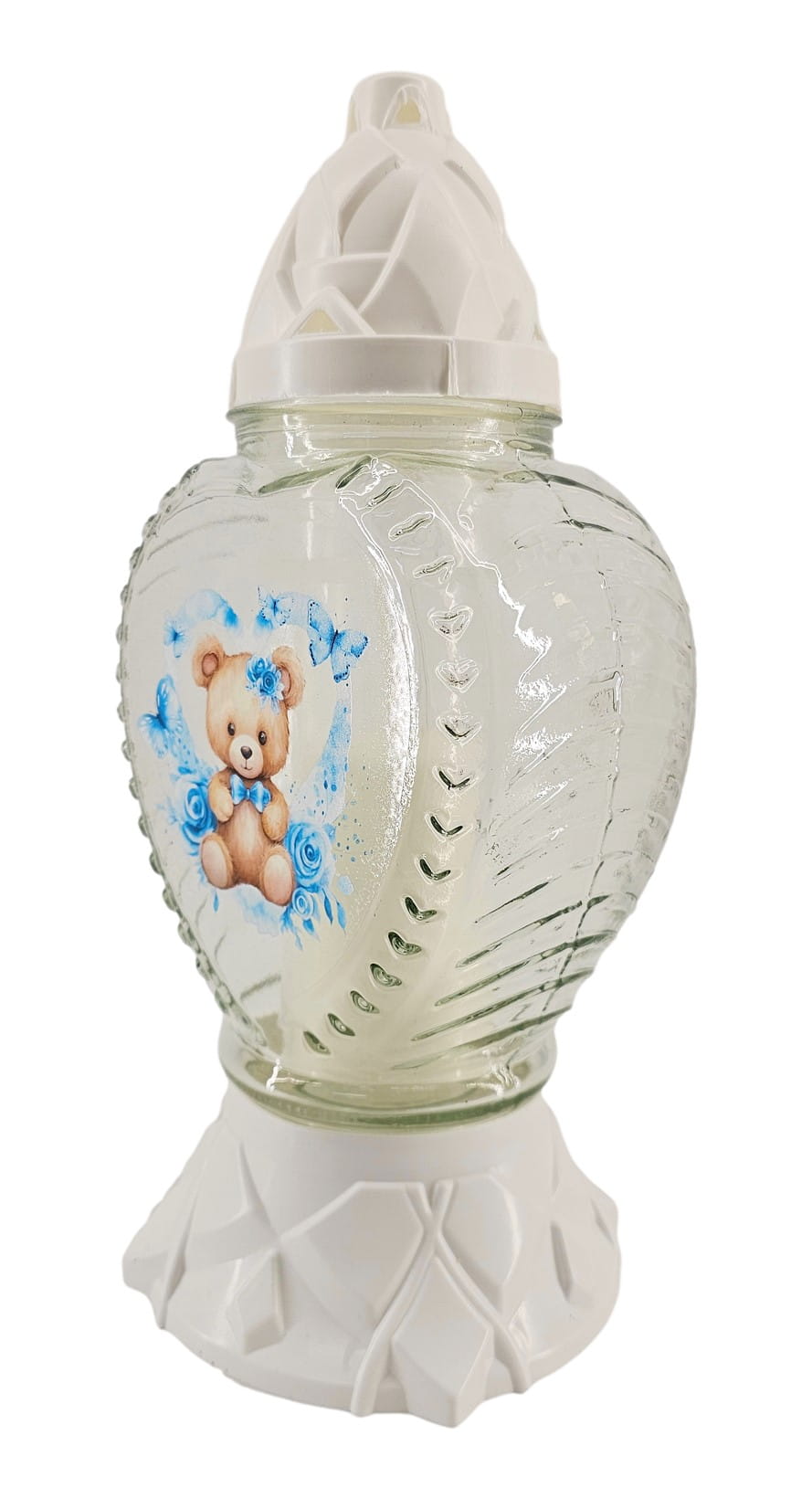 - kolor znicza: Biały, przezroczysty + tworzywo białe . Pokrywa i podstawa z białego tworzywa