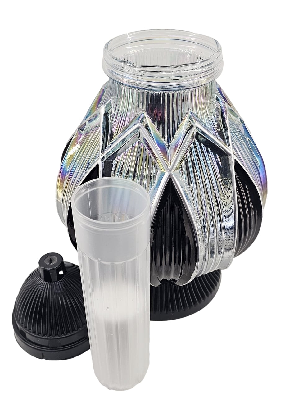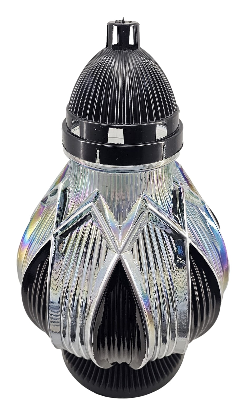 - Materiał: Szkło tęczowe, malowane, plastikowe elementy w kolorze czarno czarnym