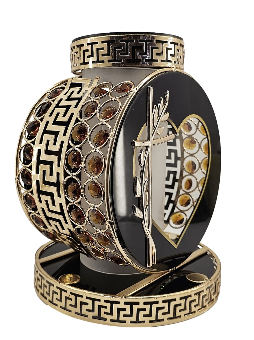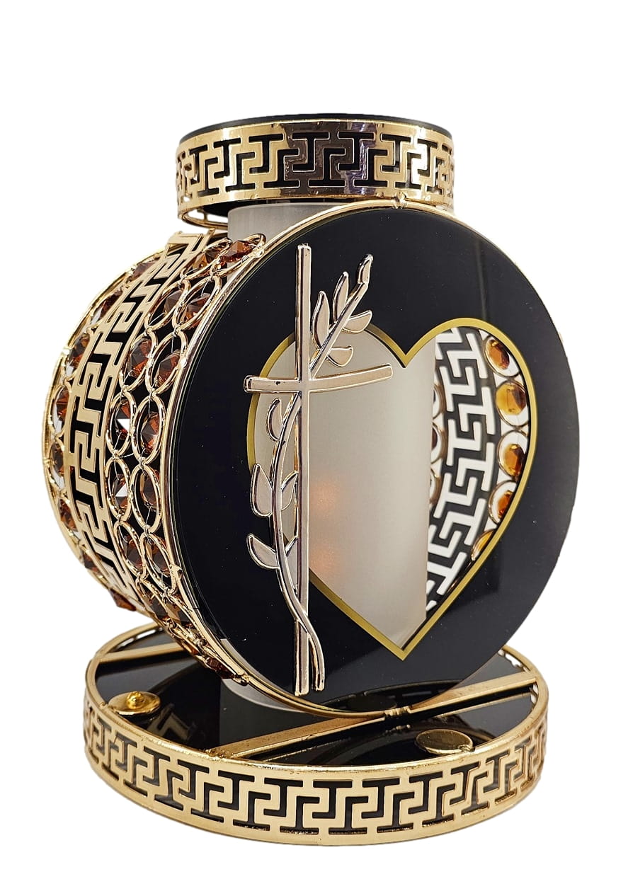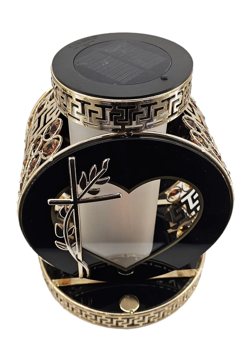 - kolor znicza: Złoto czarny. Podstawa z metalu+ akryl, pokrywa z panelem solarnym