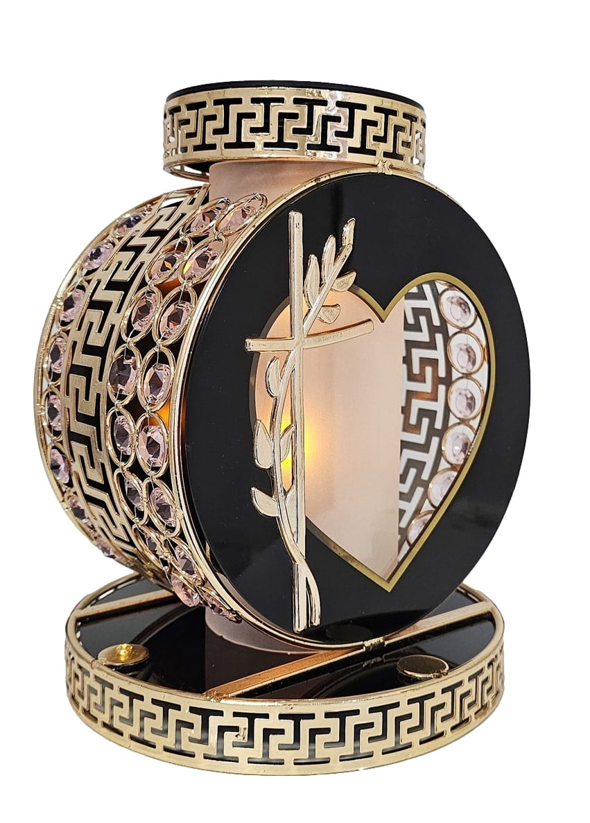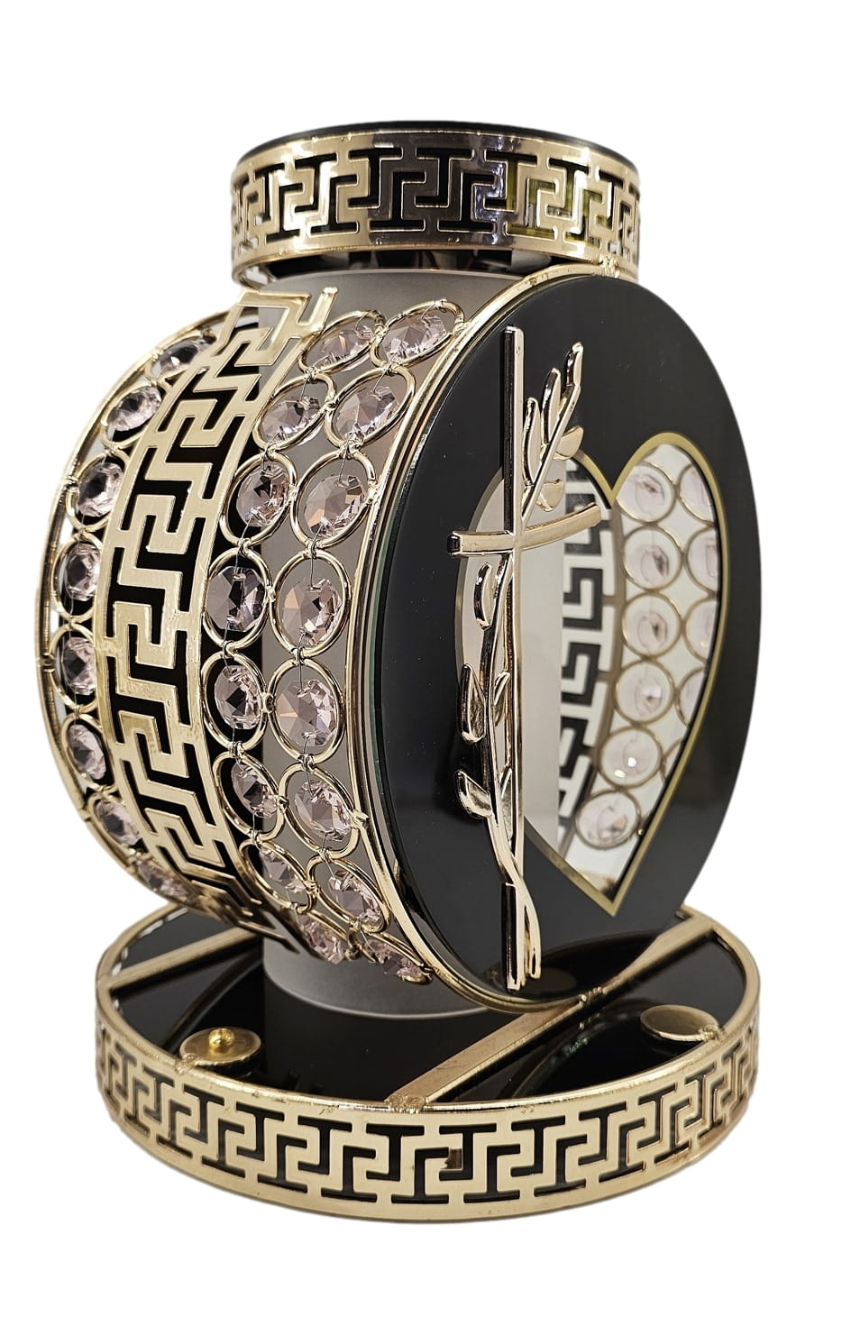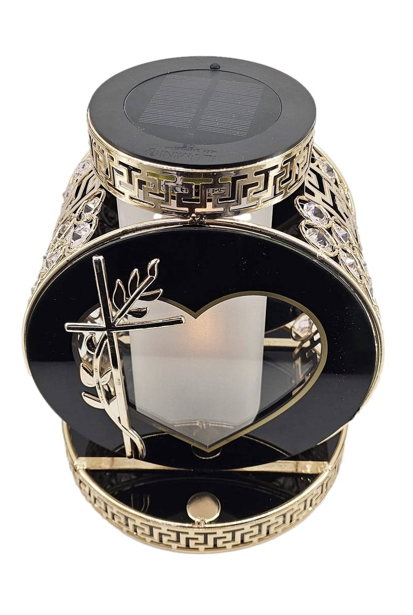 - kolor znicza: Złoto czarny. Podstawa z metalu+ akryl, pokrywa z panelem solarnym