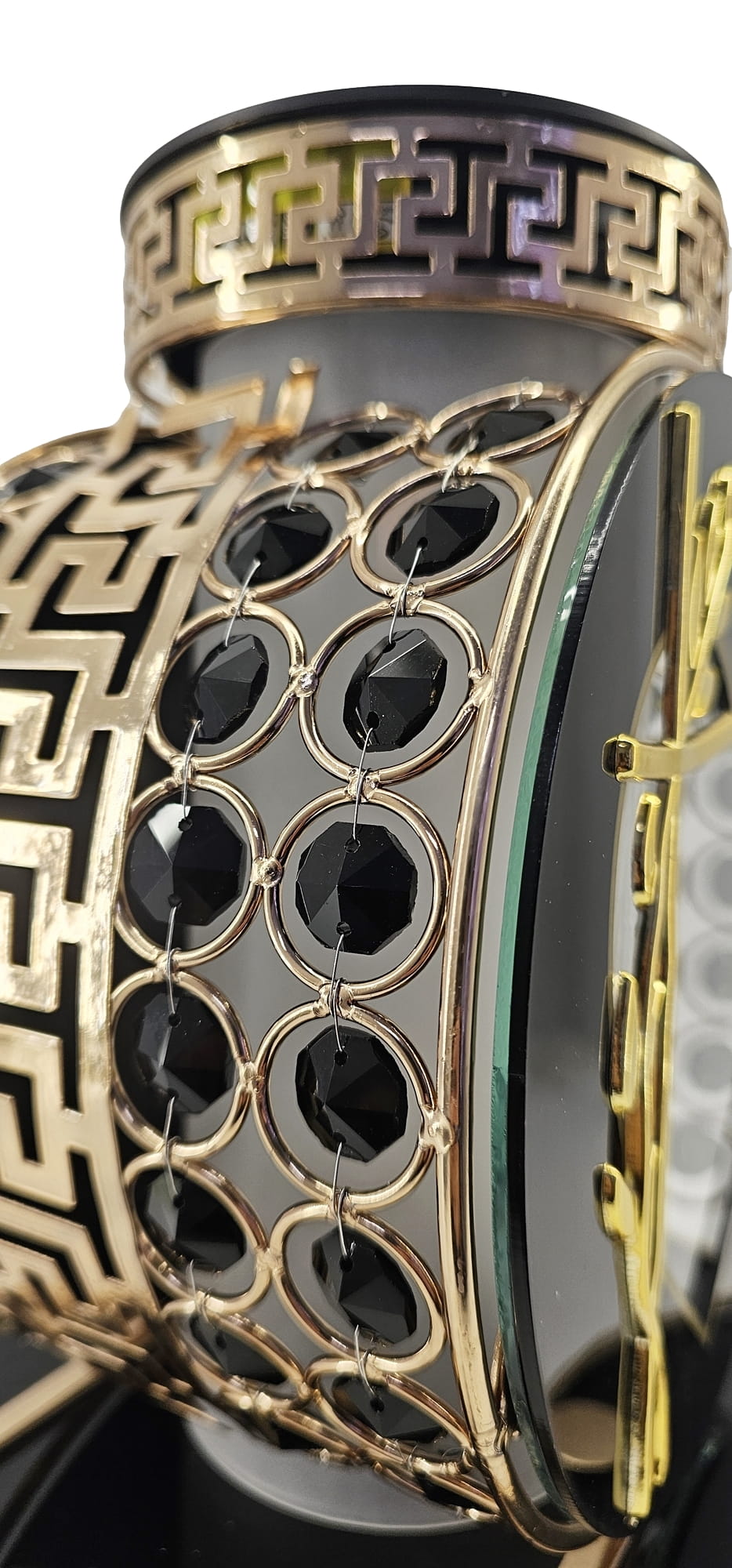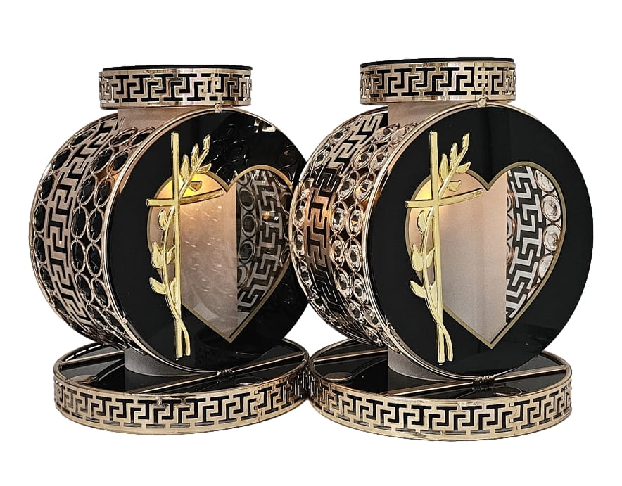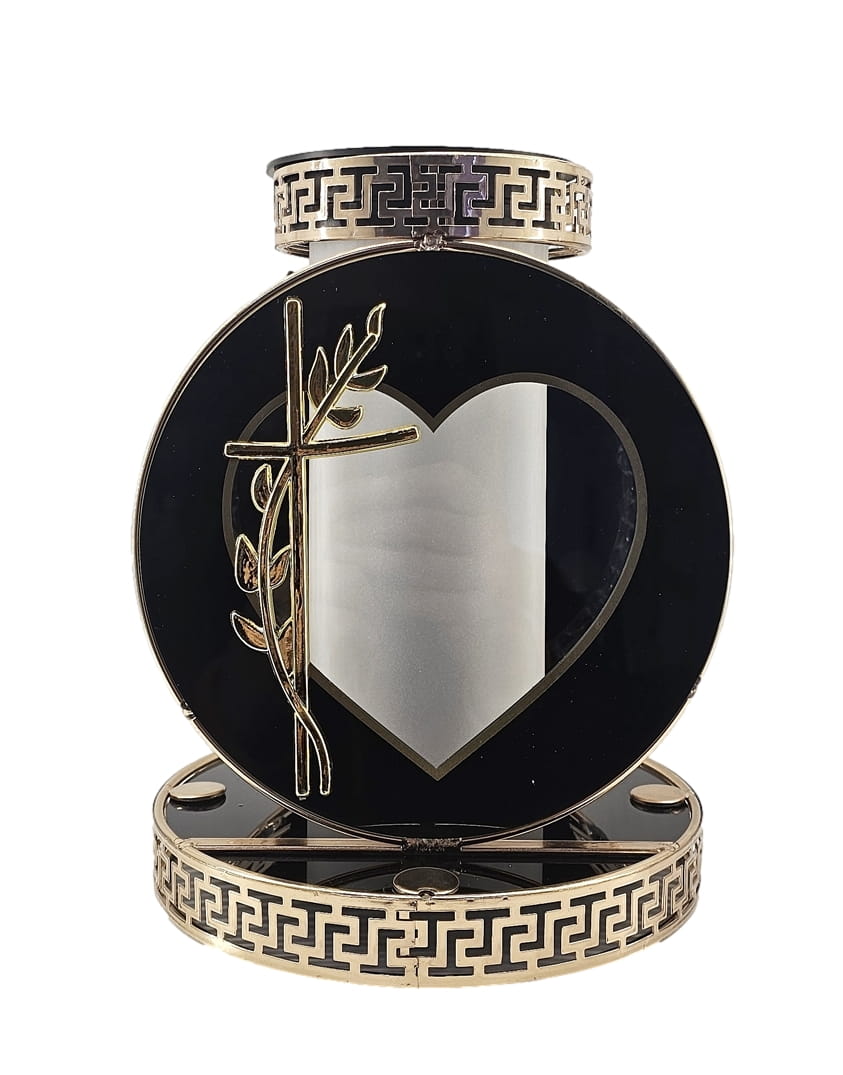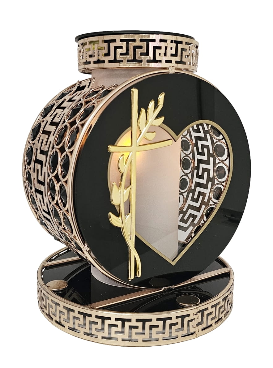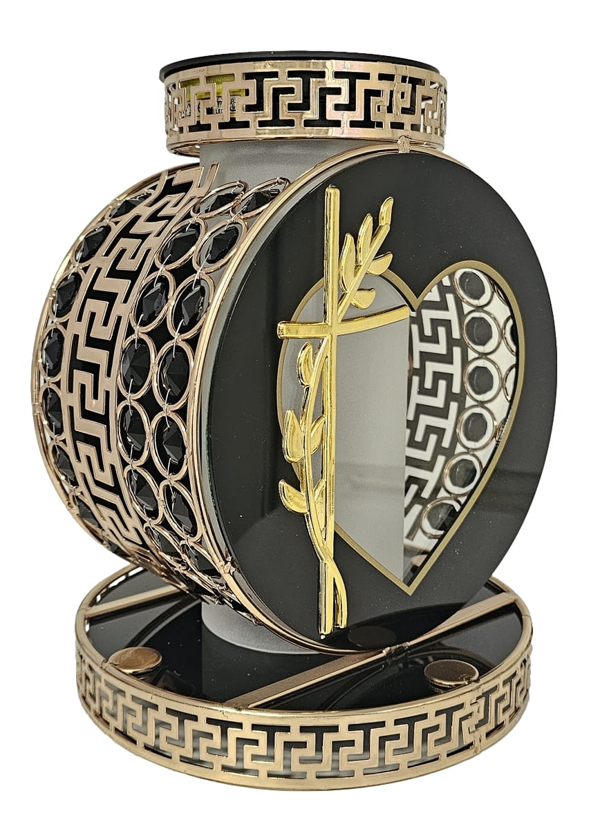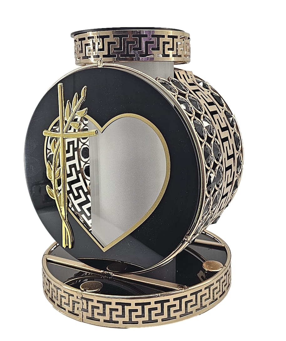 - kolor znicza: Złoto czarny+ czarny dekor. Podstawa z metalu+ akryl, pokrywa z panelem solarnym