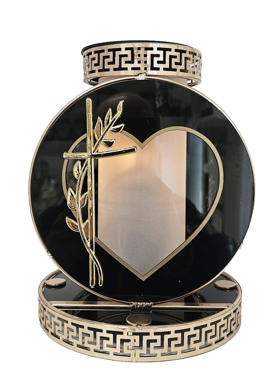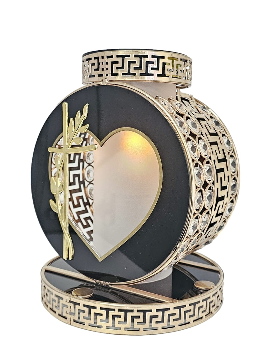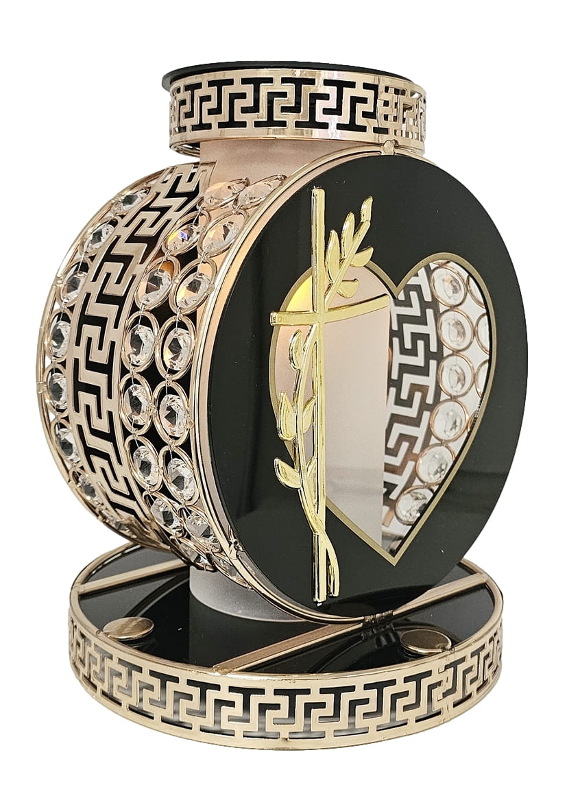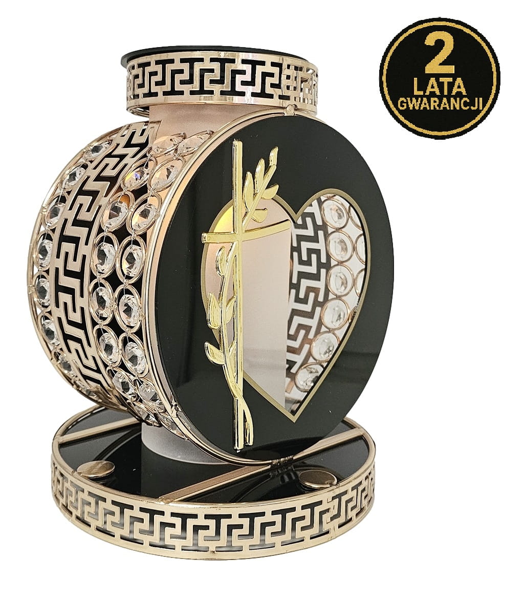 - kolor znicza: Złoto czarny+ czarny dekor. Podstawa z metalu+ akryl, pokrywa z panelem solarnym