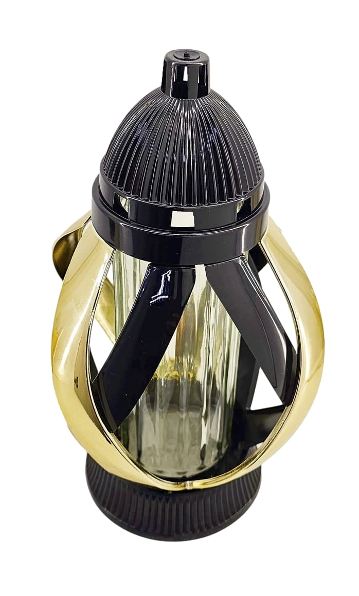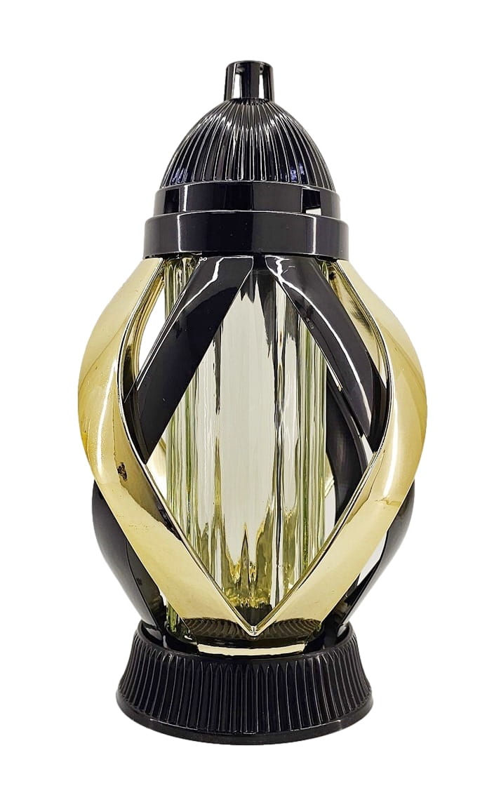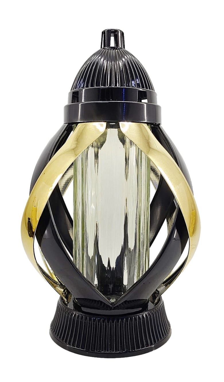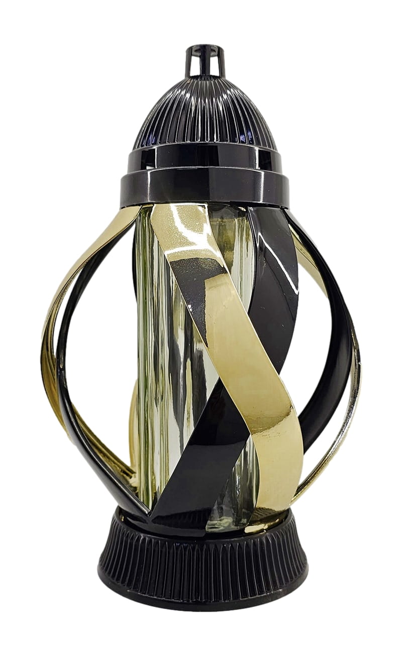 - kolor znicza: Czarno-złoty, szklana tuba. Pokrywa i podstawa z czarnego lakierowanego tworzywa
