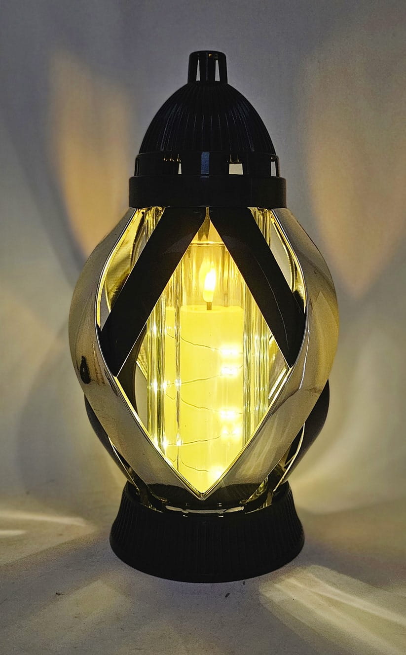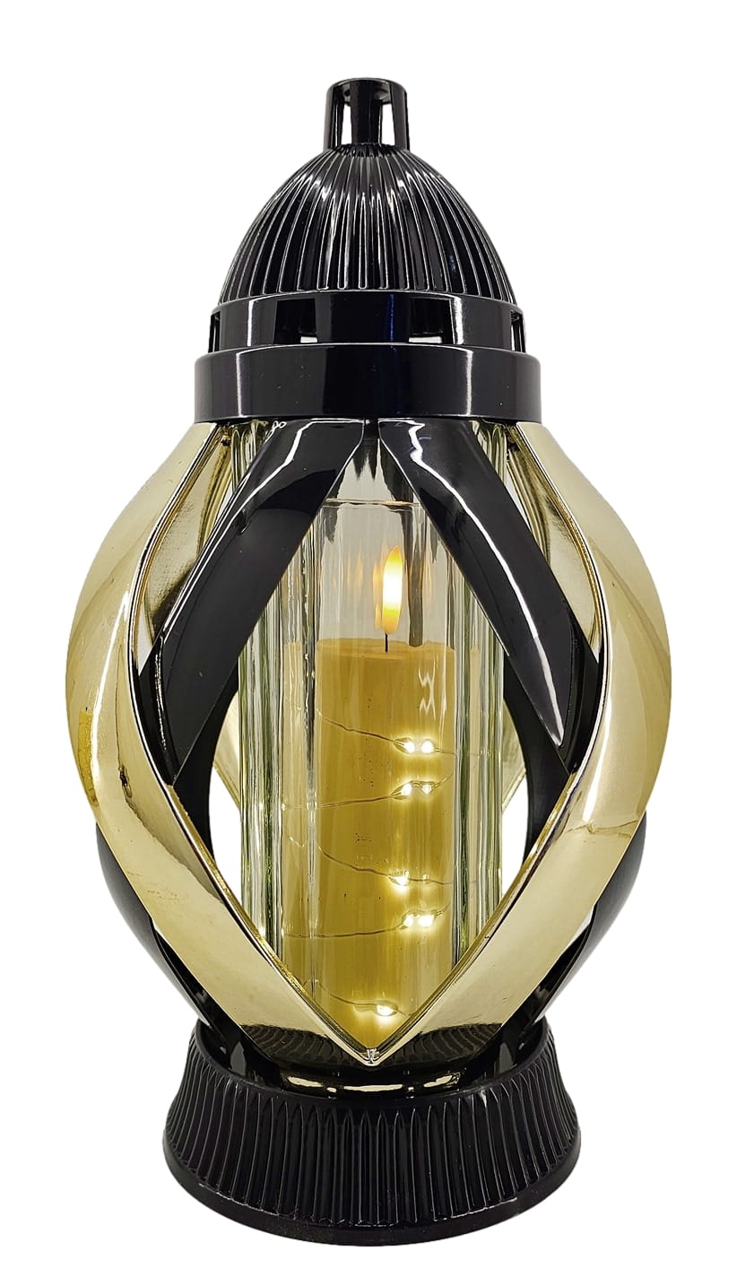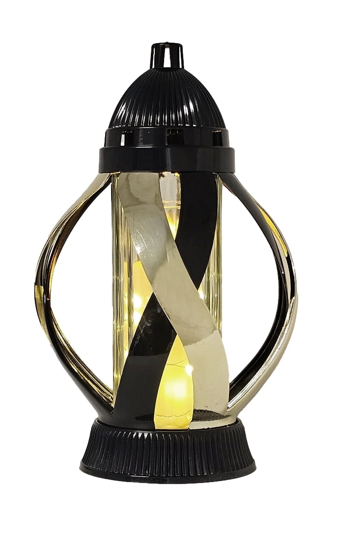 - kolor znicza: Czarno-złoty, szklana tuba. Pokrywa i podstawa z czarnego lakierowanego tworzywa
