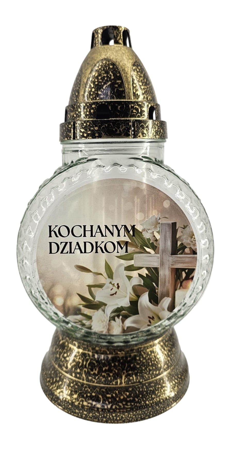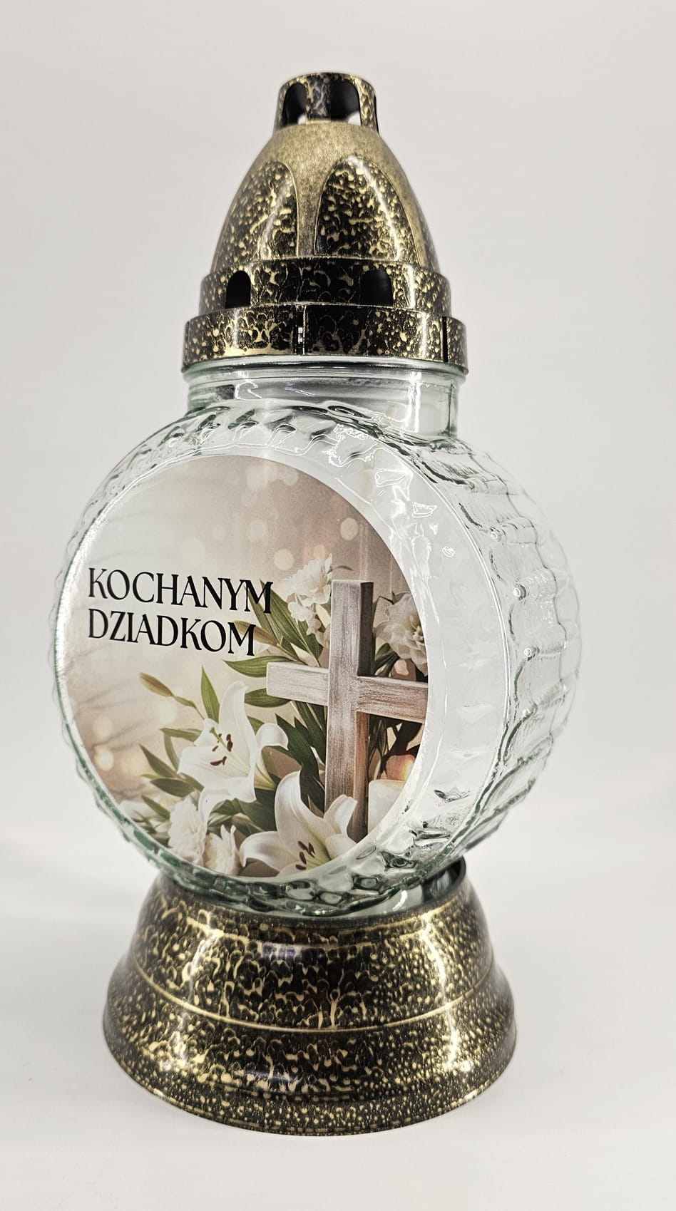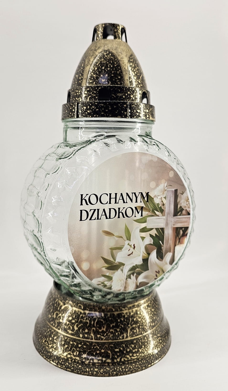 Znicz wykonany z mocnego szkła, ręcznie zdobiony. Znicz odznacza się nowoczesnym kształtem oraz bardzo wysoką starannością wykonania - jest to produkt ręcznie zdobiony, wykonany w Polsce.