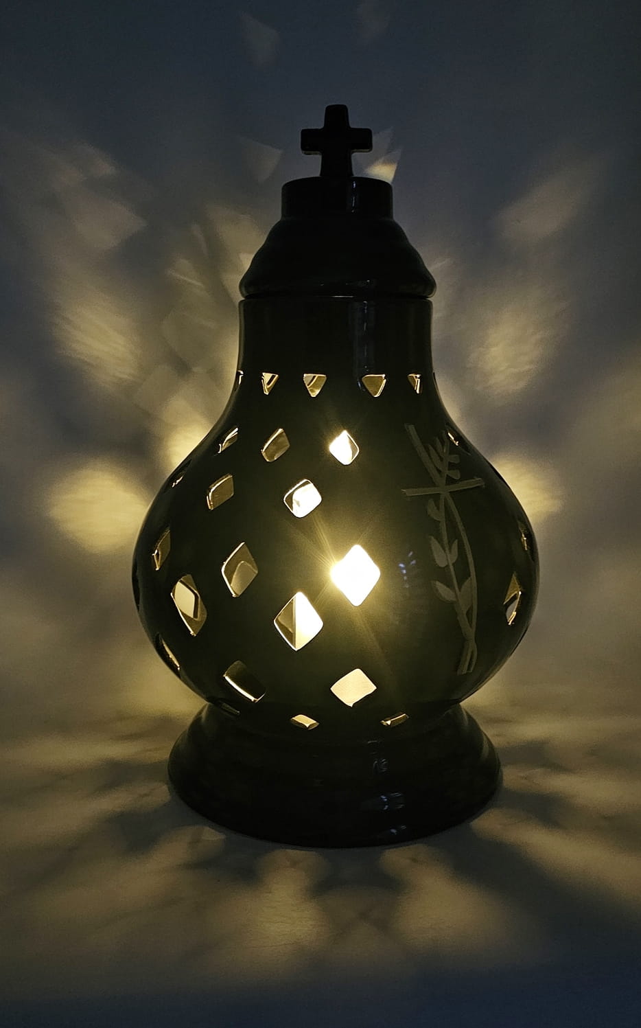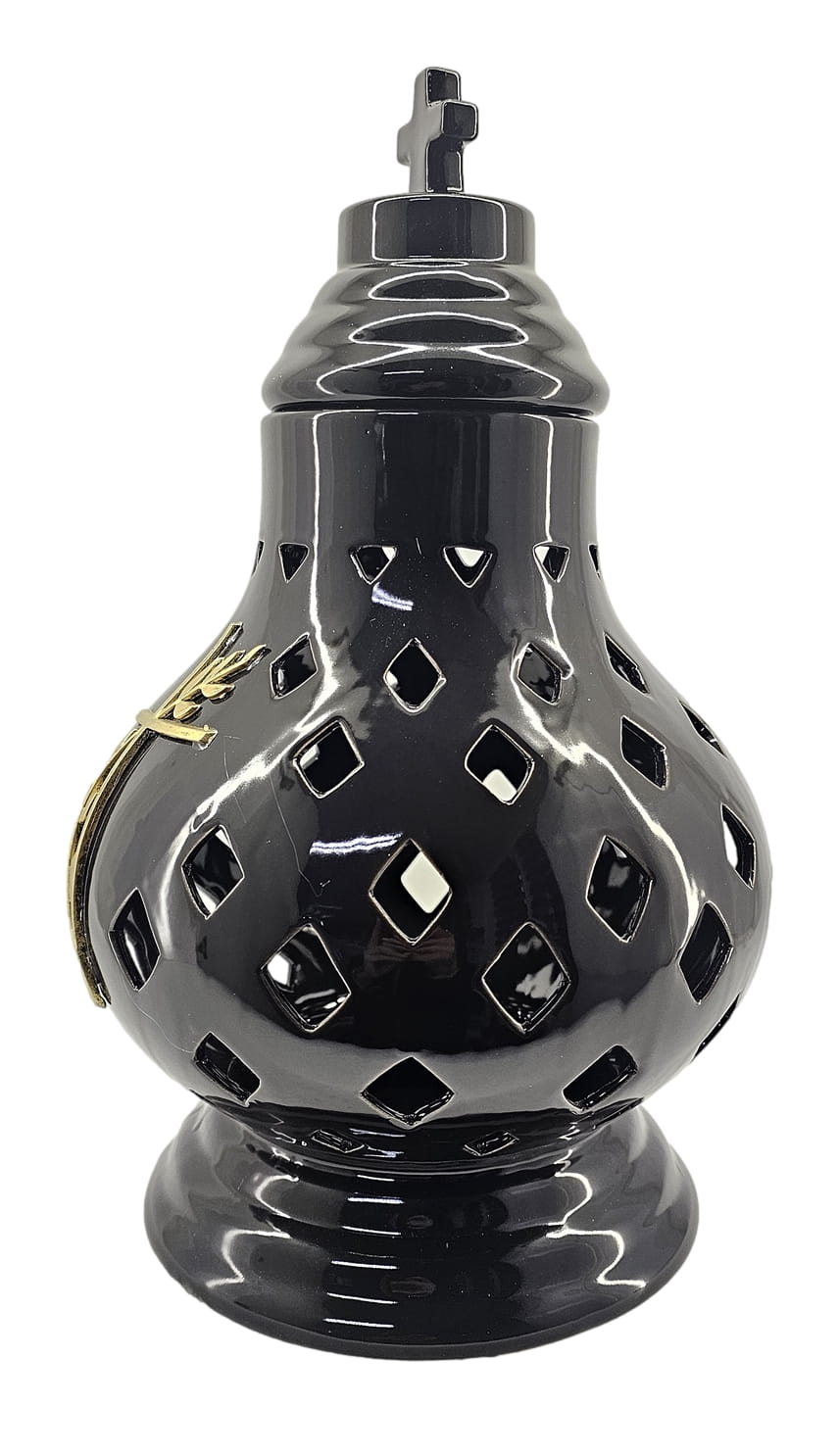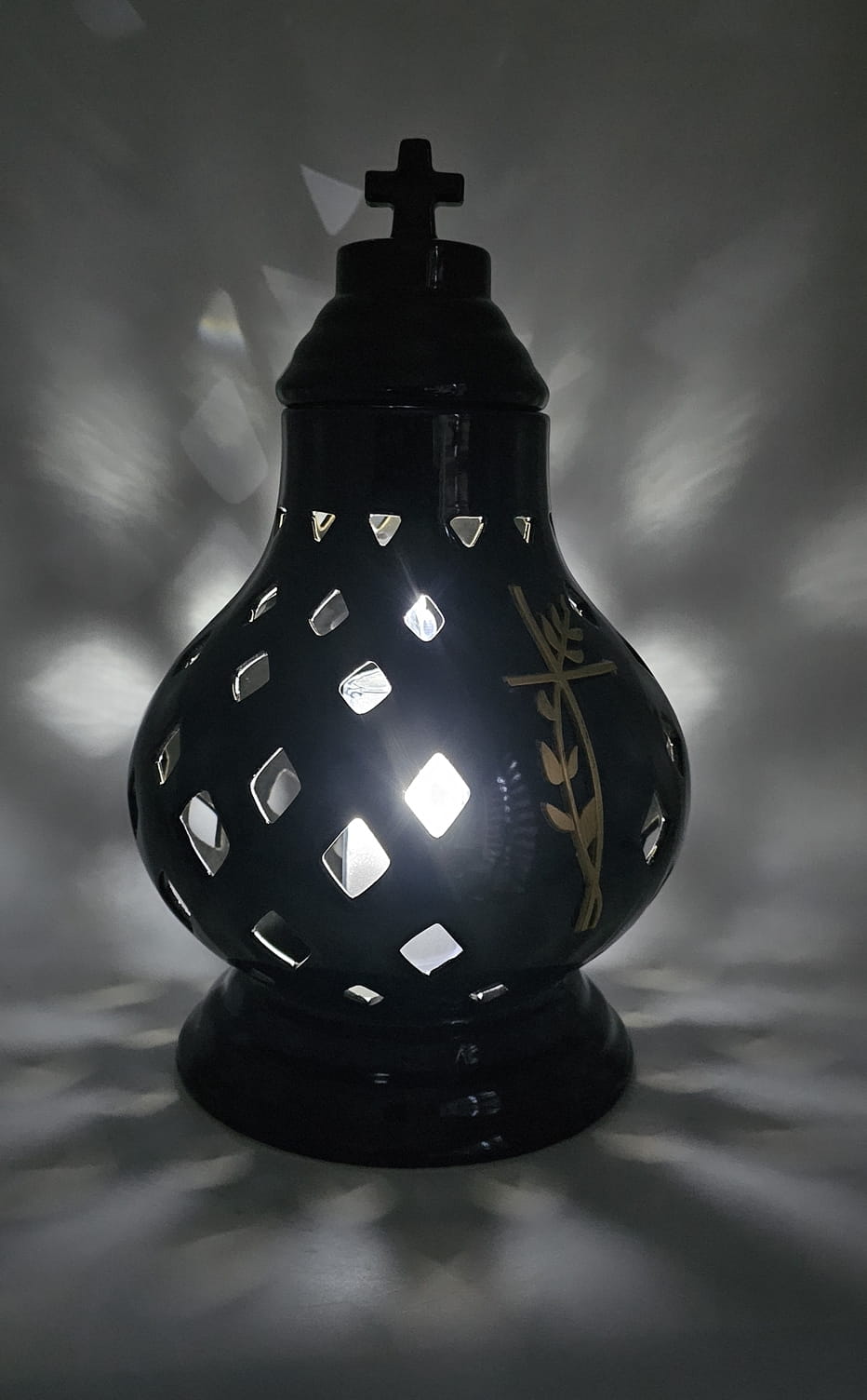 - kolor znicza: Czarny. Pokrywa i podstawa z czarnej lakierowanej ceramiki .